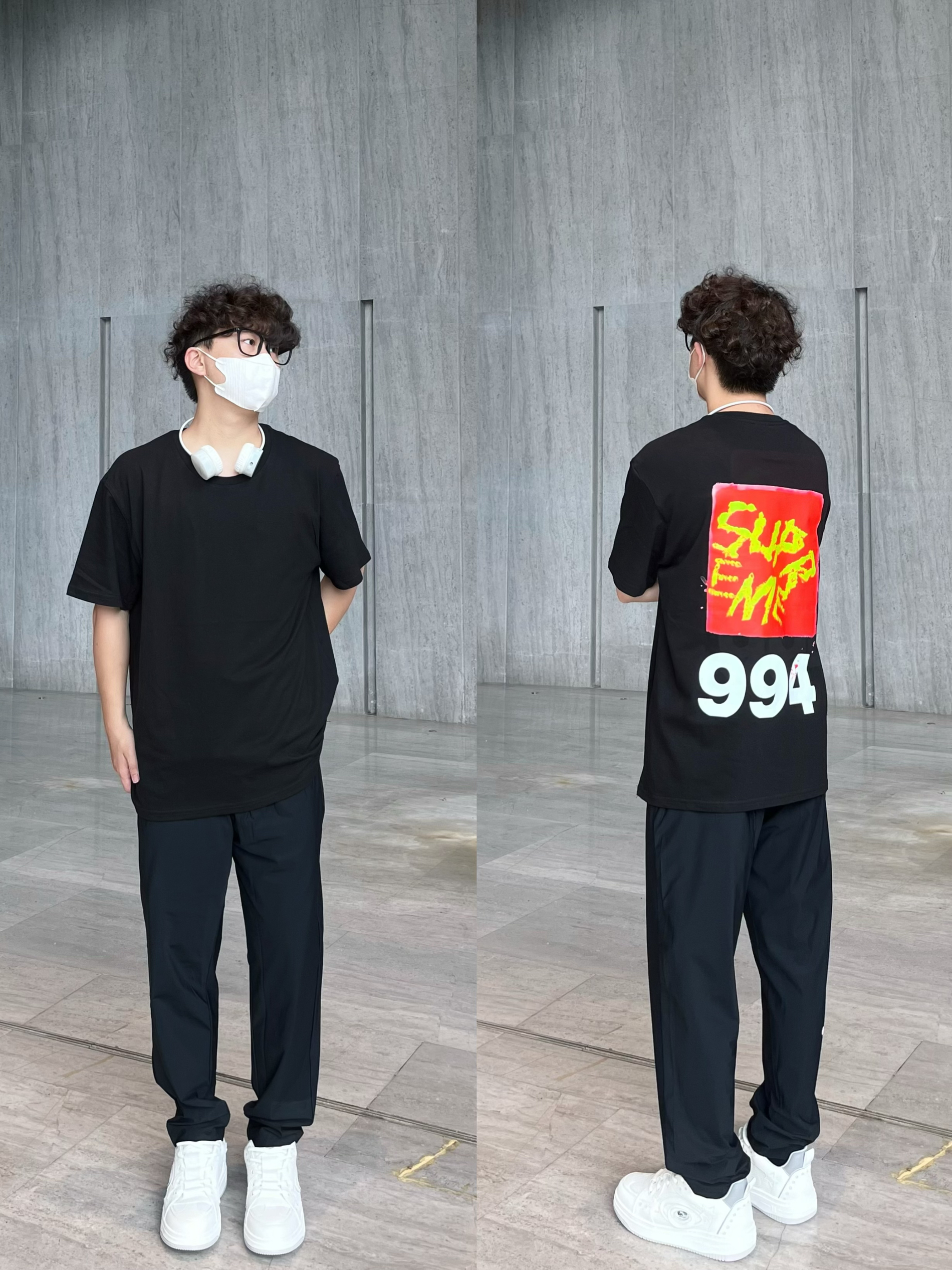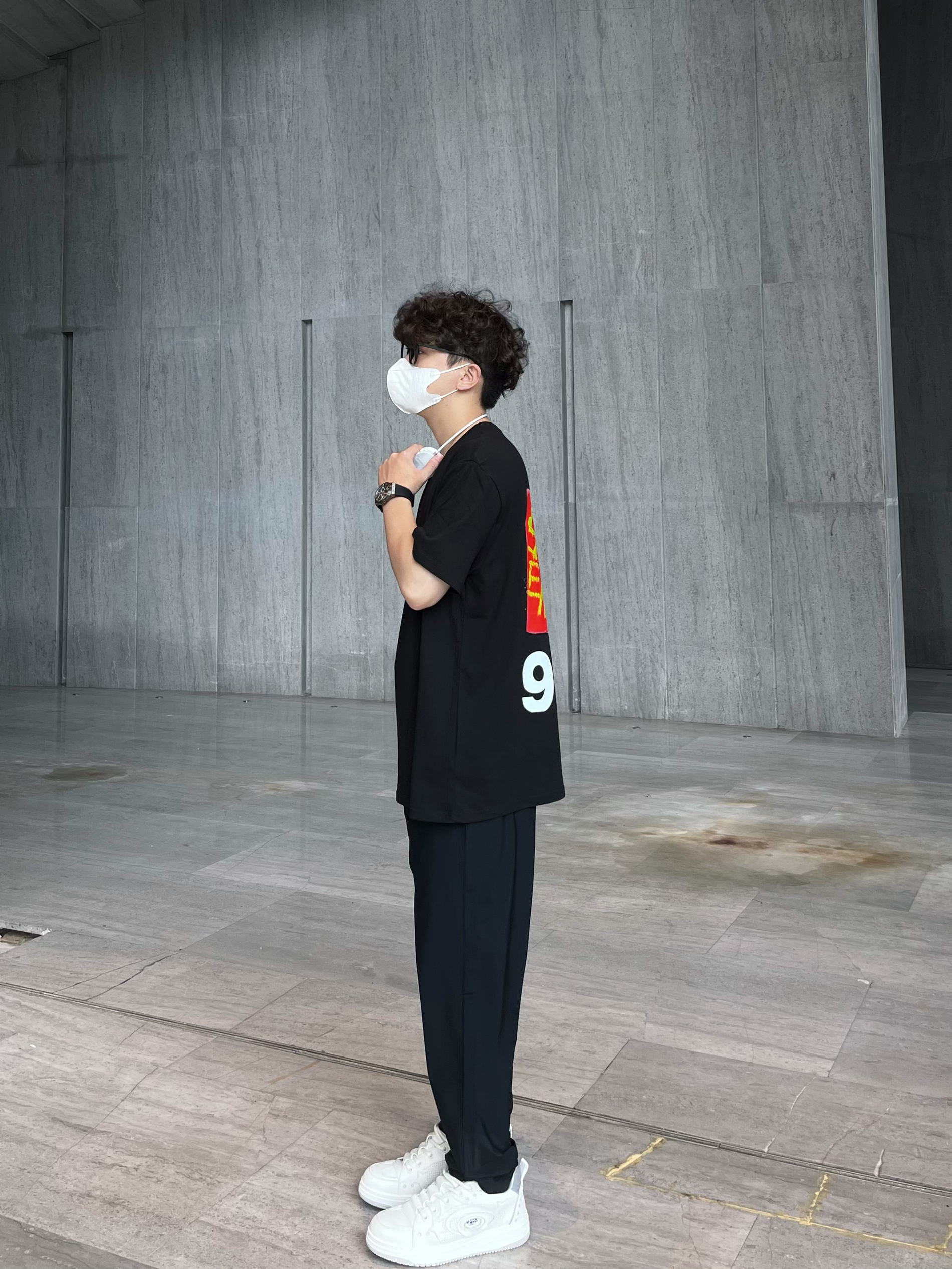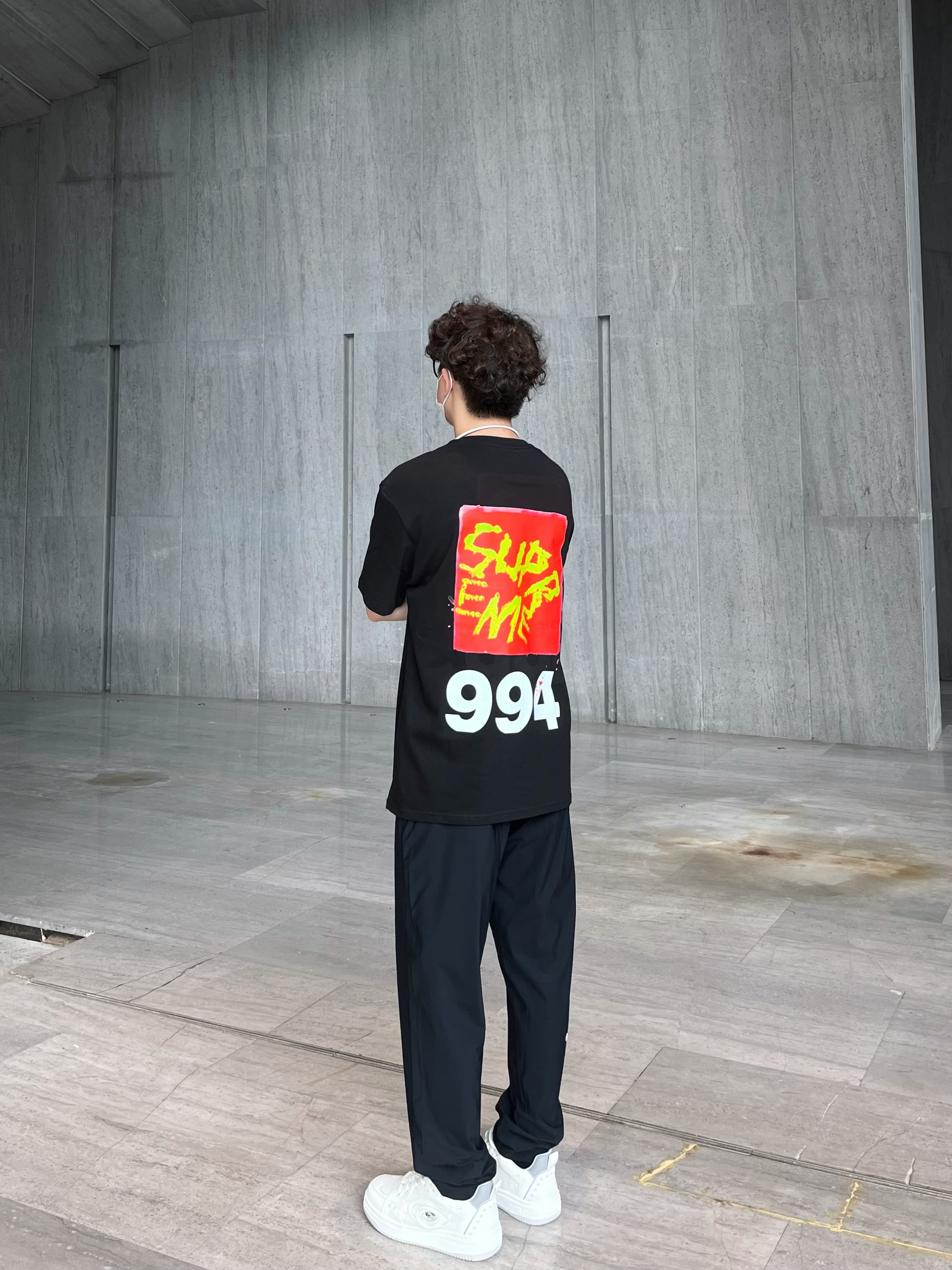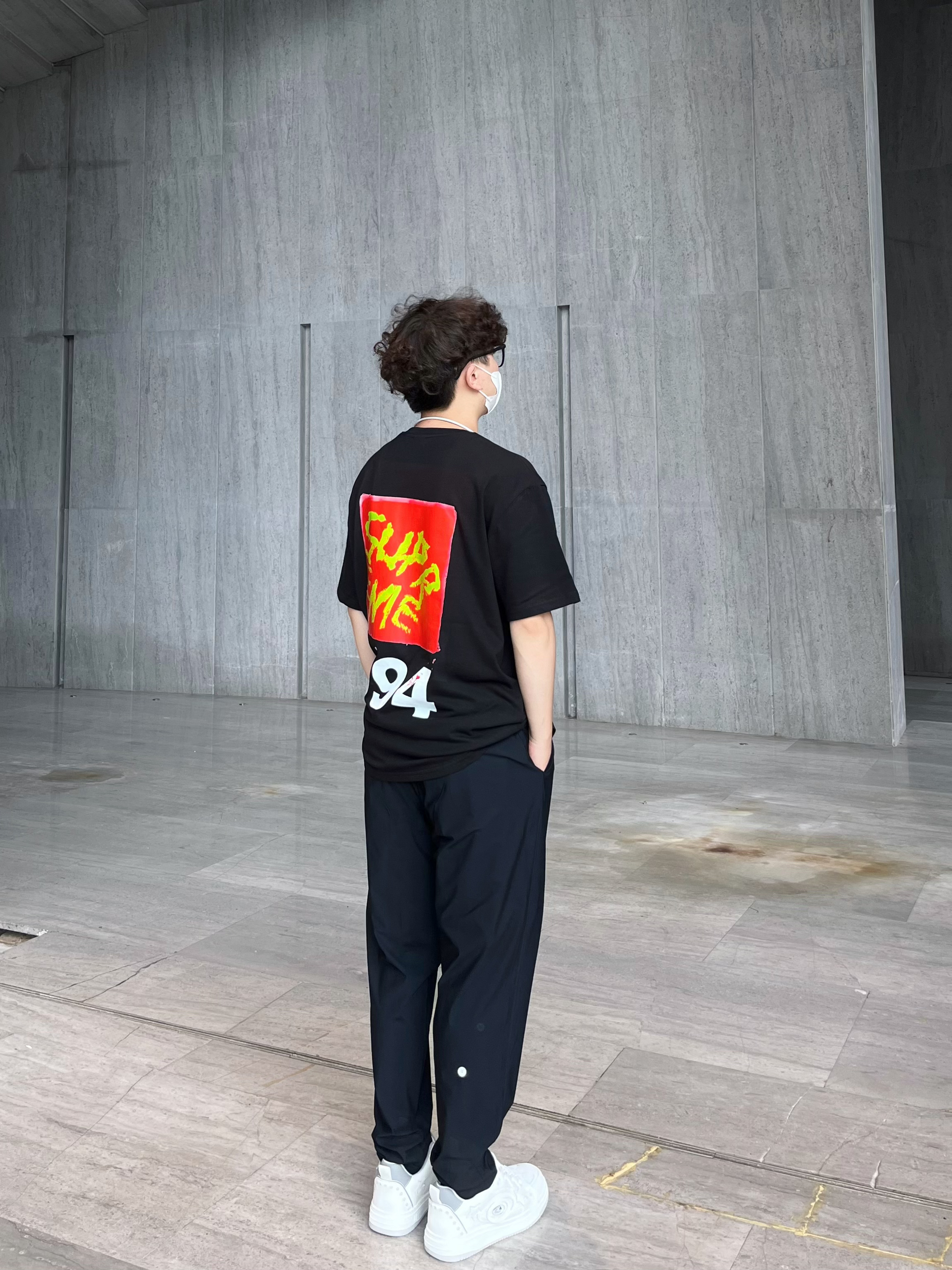 美式穿搭真的是百搭好看😼 上身一件supreme的印花T恤🎒 大印花上身自带美式街头的氛围 宽宽松松的版型很适合夏天😀 裤子搭配一条束脚裤 自然的垂感非常顺滑 显高显瘦🏄🏻♂️ 冰丝的材质自带凉感好适合夏季穿
