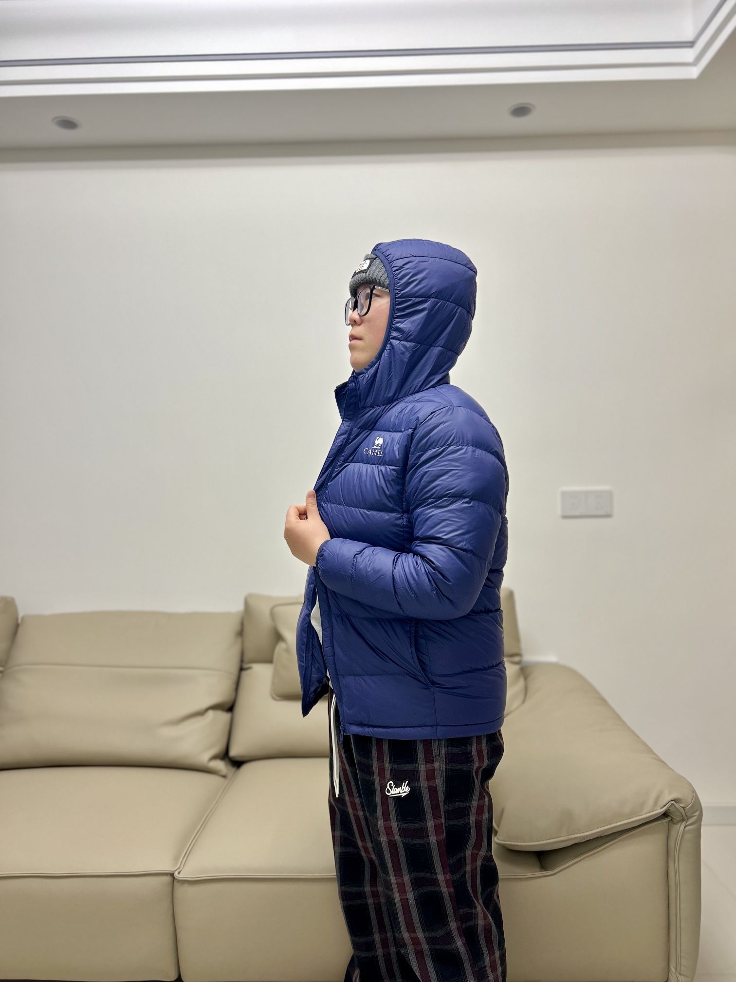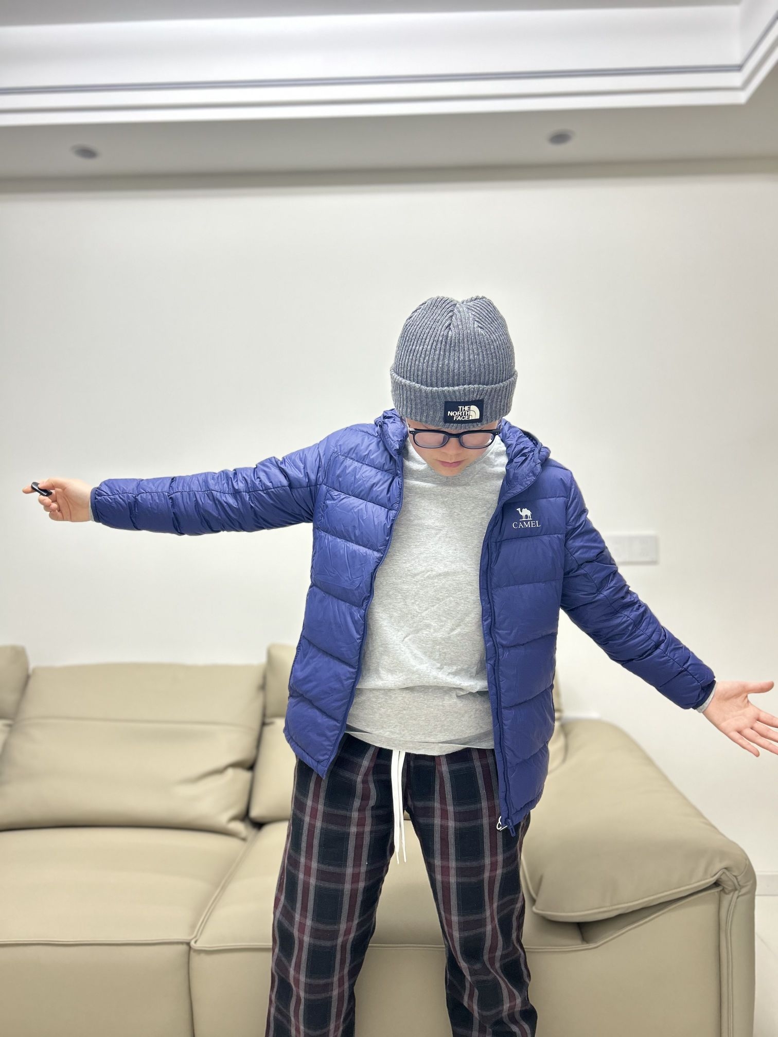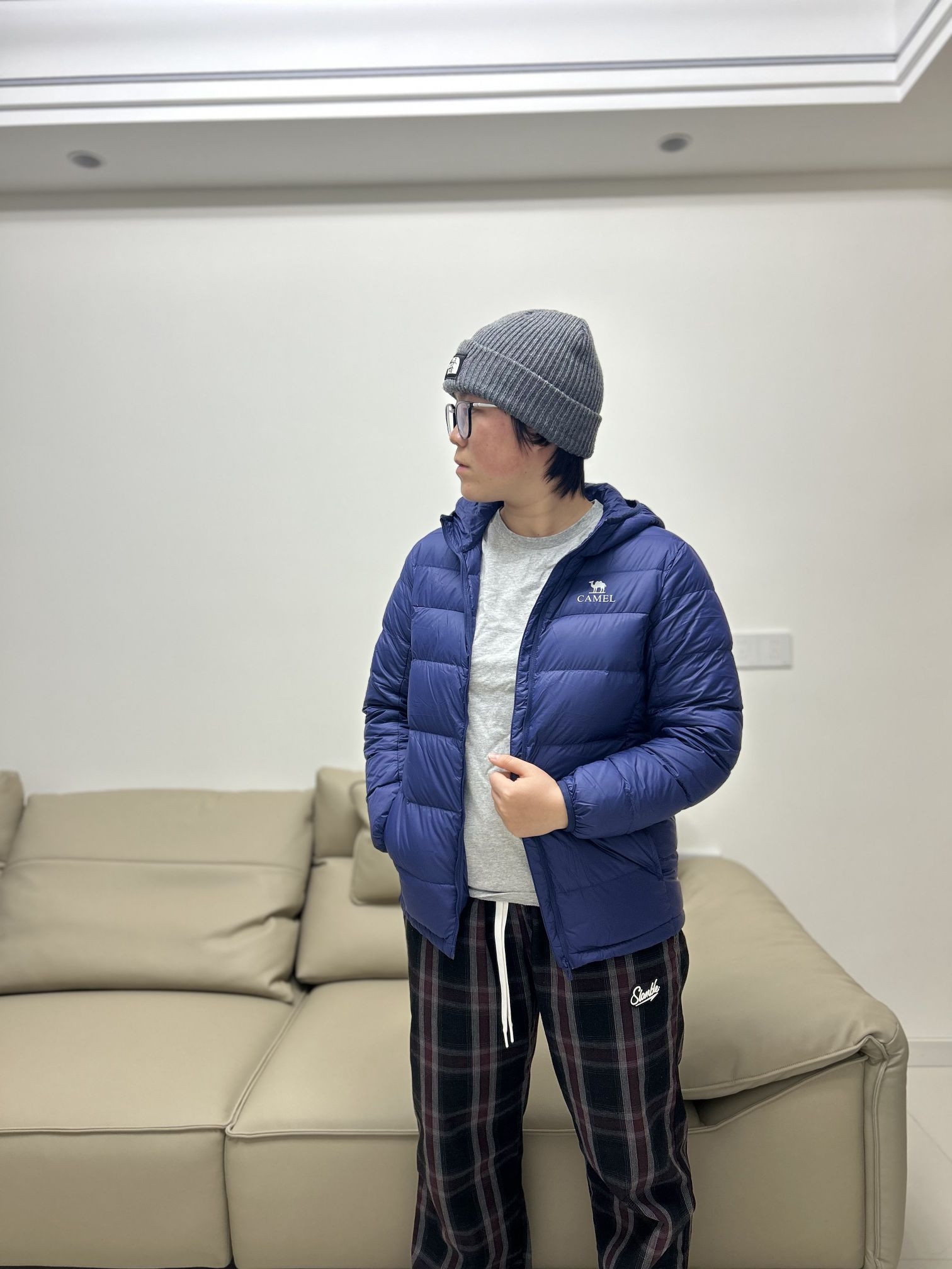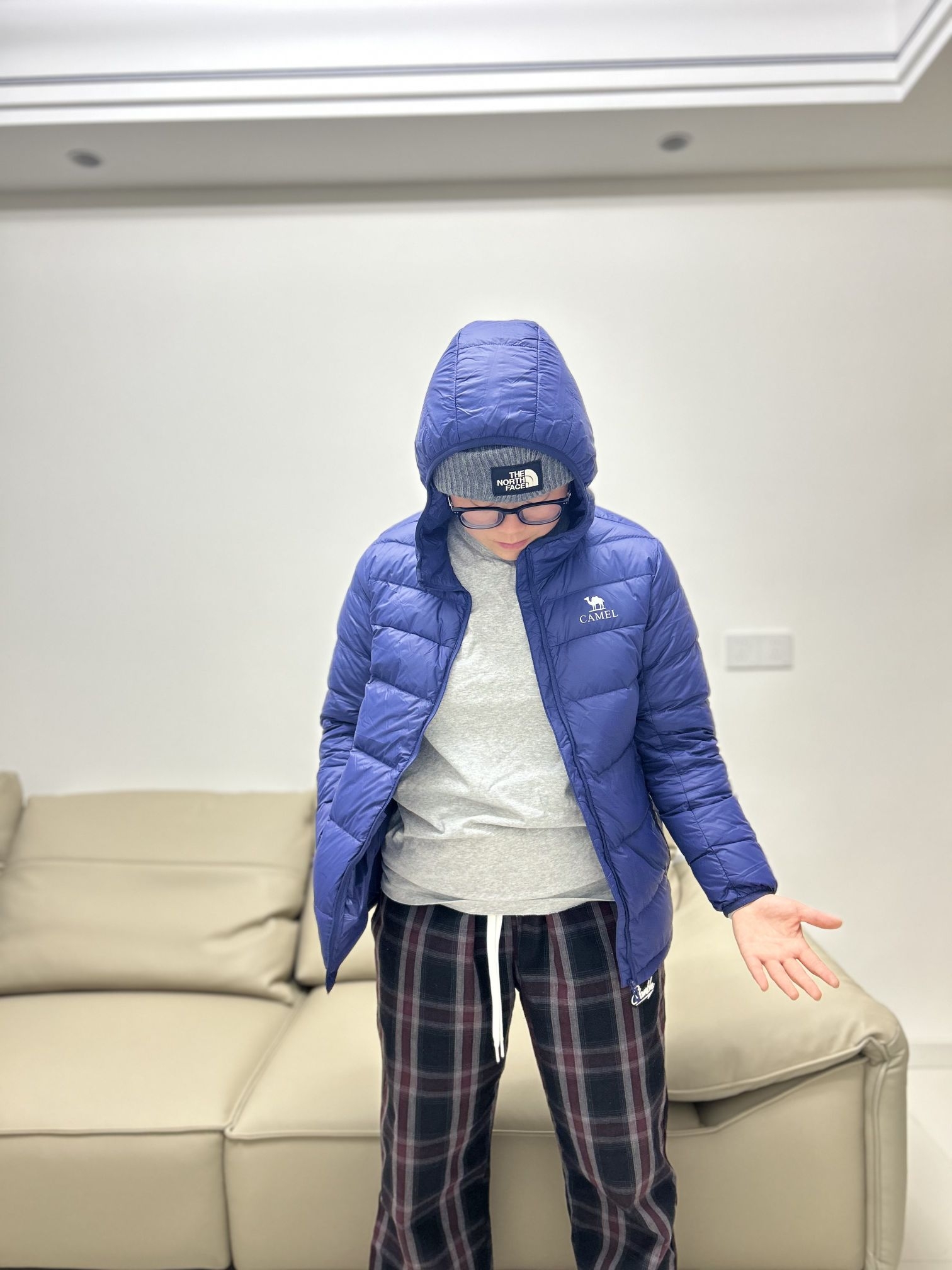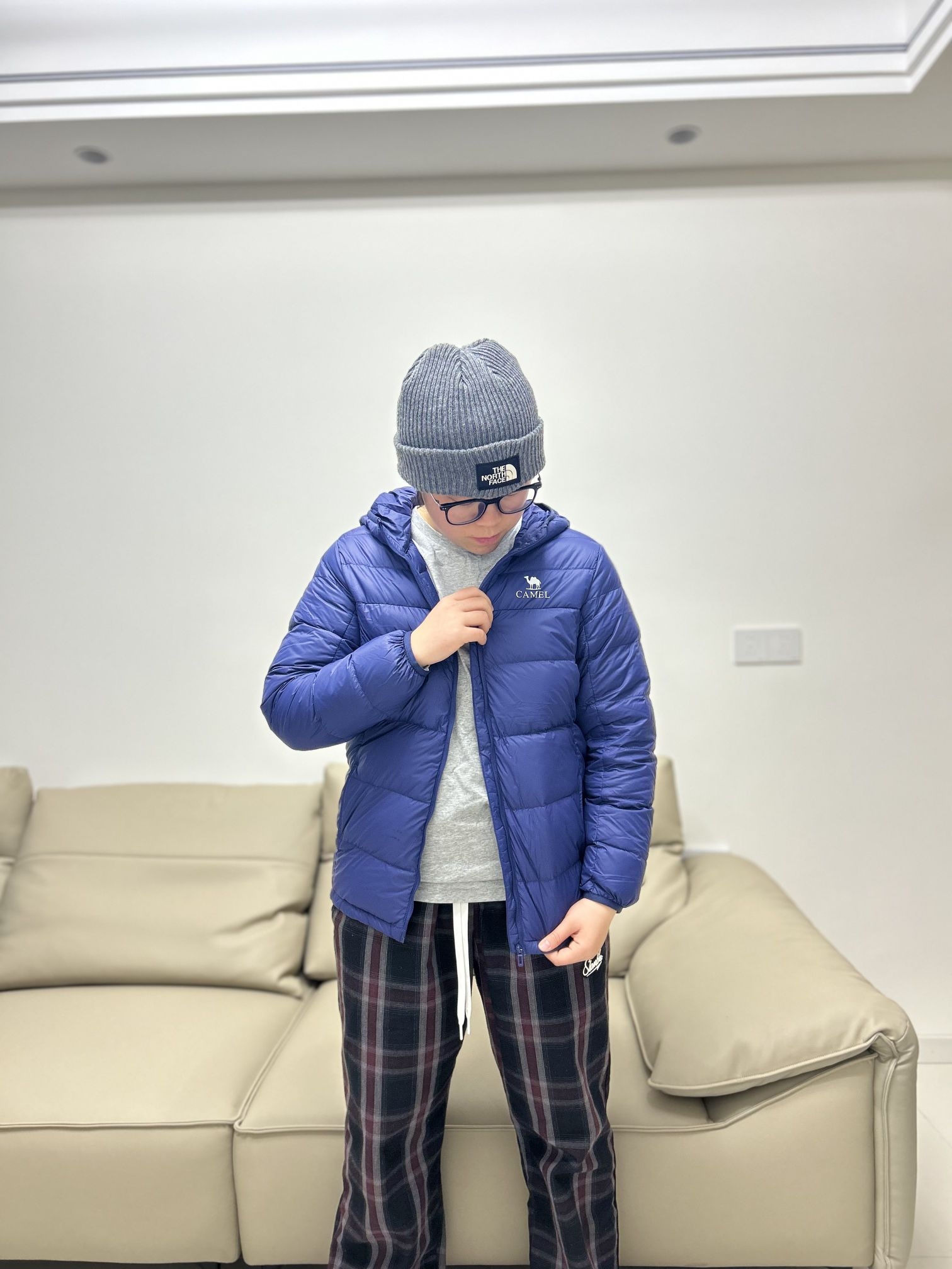 哈喽!兄弟们! 这里在刘根不会穿搭的频道! 分享一下今天的ootd 👔衣服:灰色长袖内衬➕骆驼排骨羽绒服,保暖效果杠杠的!又轻巧又好看[强_blue] 👖裤子:slamble家的格子长裤,宽松的版型很遮肉。 本人身高160 体重125 衣服是160码 裤子是s码