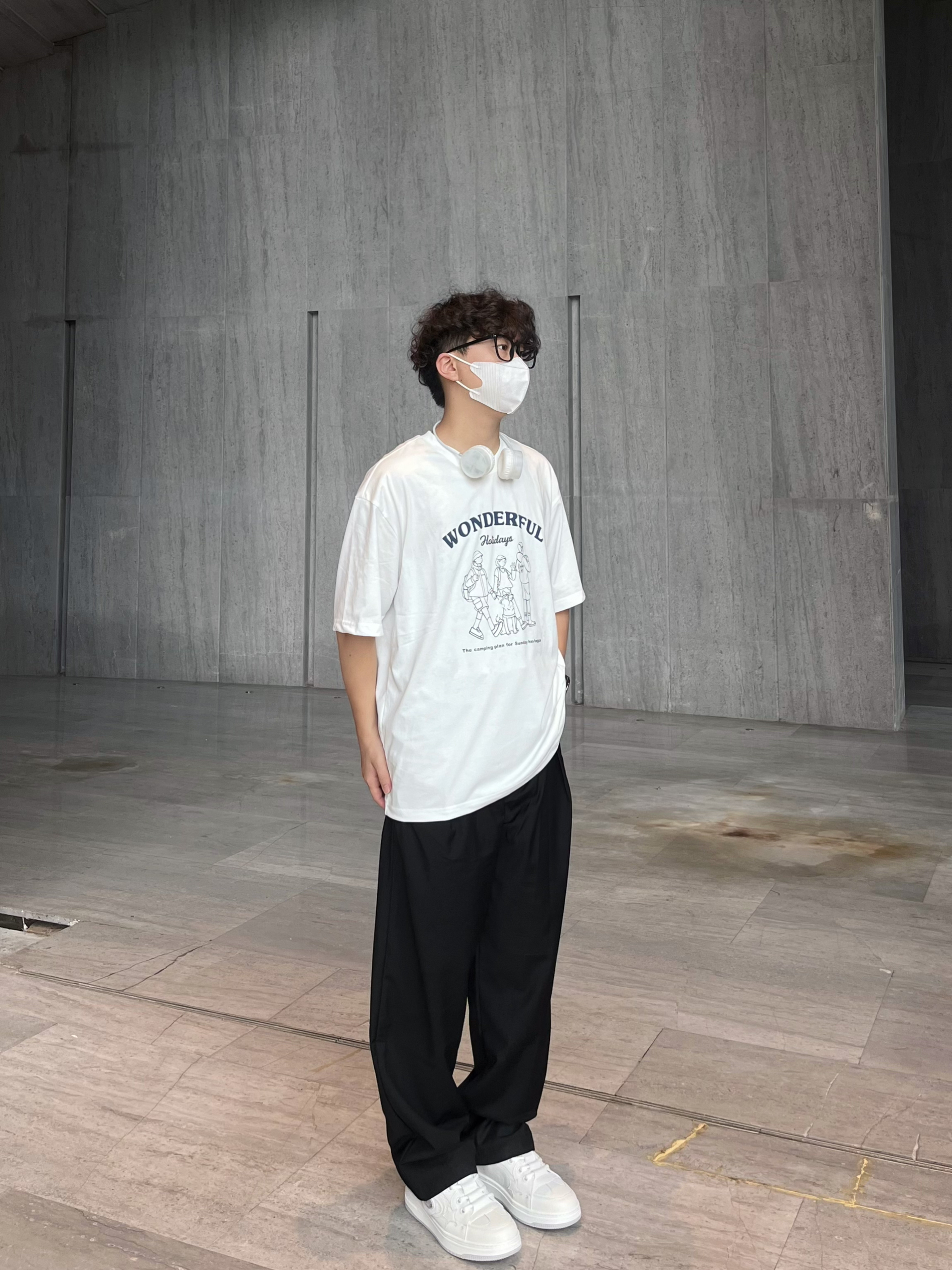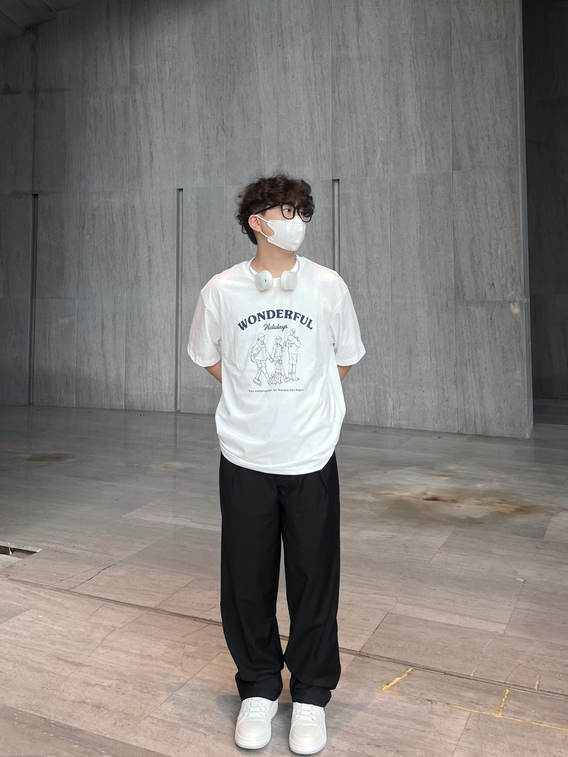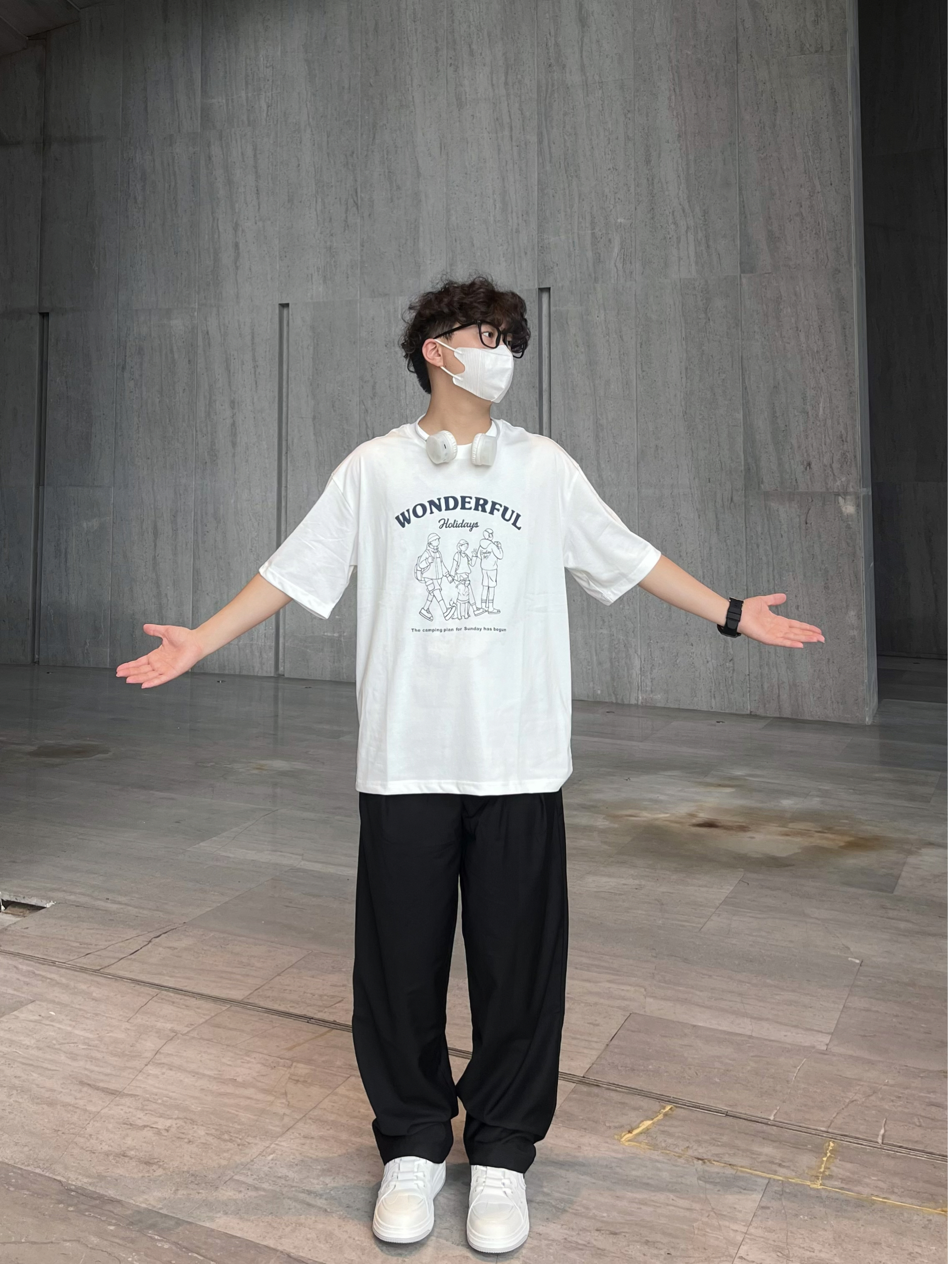 干干净净的少年感在夏天真的很加分👏🏻 一件简约的本白色T恤轻松穿出学院风 宽宽松松的版型真的好舒服好适合夏天 小人印花真的很有少年气息 好干净🧊 搭配一条黑色的休闲西裤面料透气舒服 自带垂感版型好看修饰腿型不挑人 穿的简单干净才是夏天的有效穿搭✔️