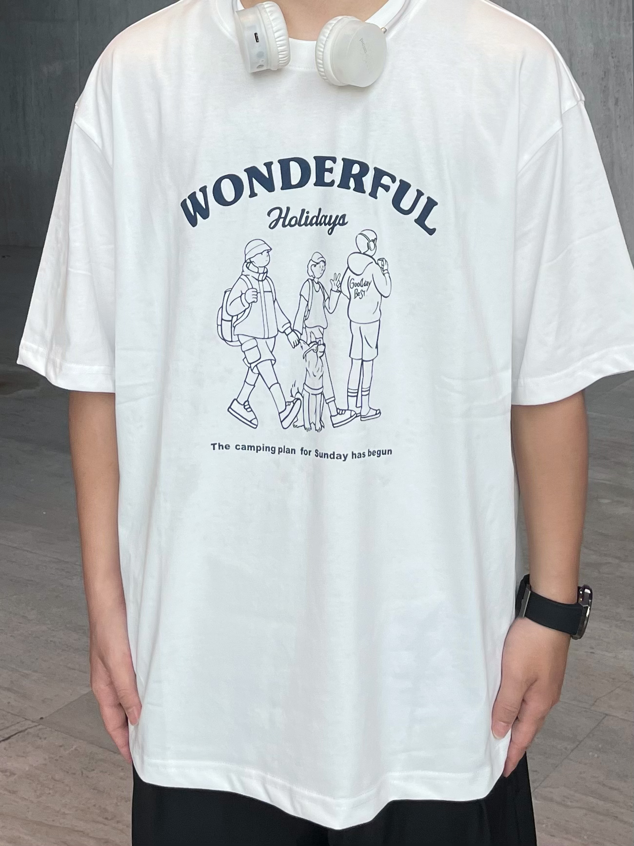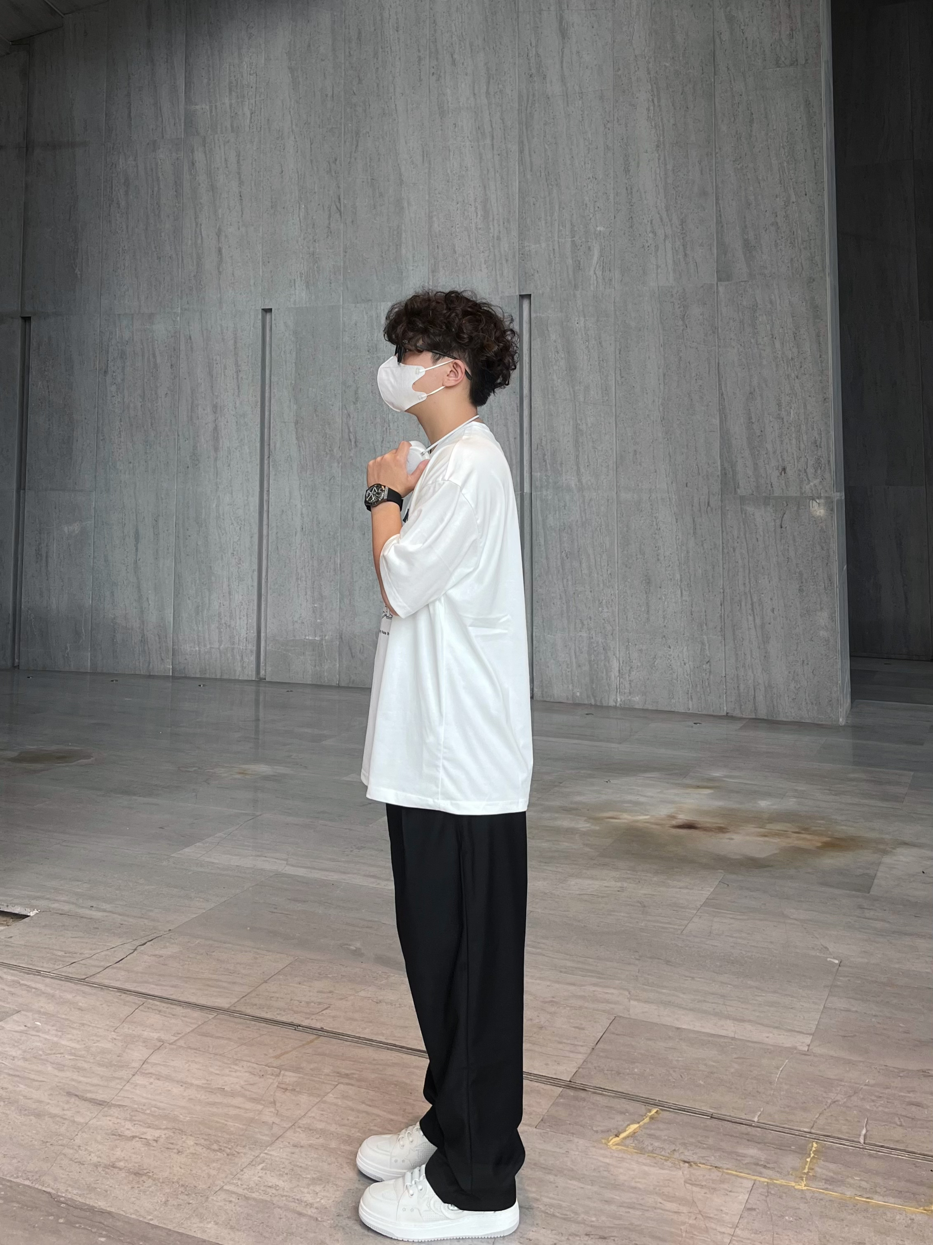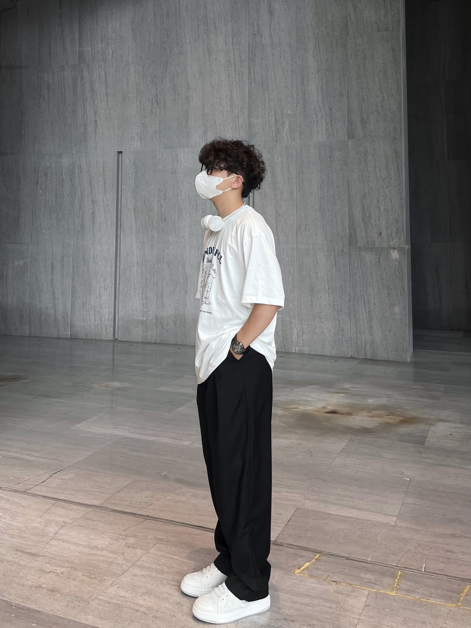 干干净净的少年感在夏天真的很加分👏🏻 一件简约的本白色T恤轻松穿出学院风 宽宽松松的版型真的好舒服好适合夏天 小人印花真的很有少年气息 好干净🧊 搭配一条黑色的休闲西裤面料透气舒服 自带垂感版型好看修饰腿型不挑人 穿的简单干净才是夏天的有效穿搭✔️
