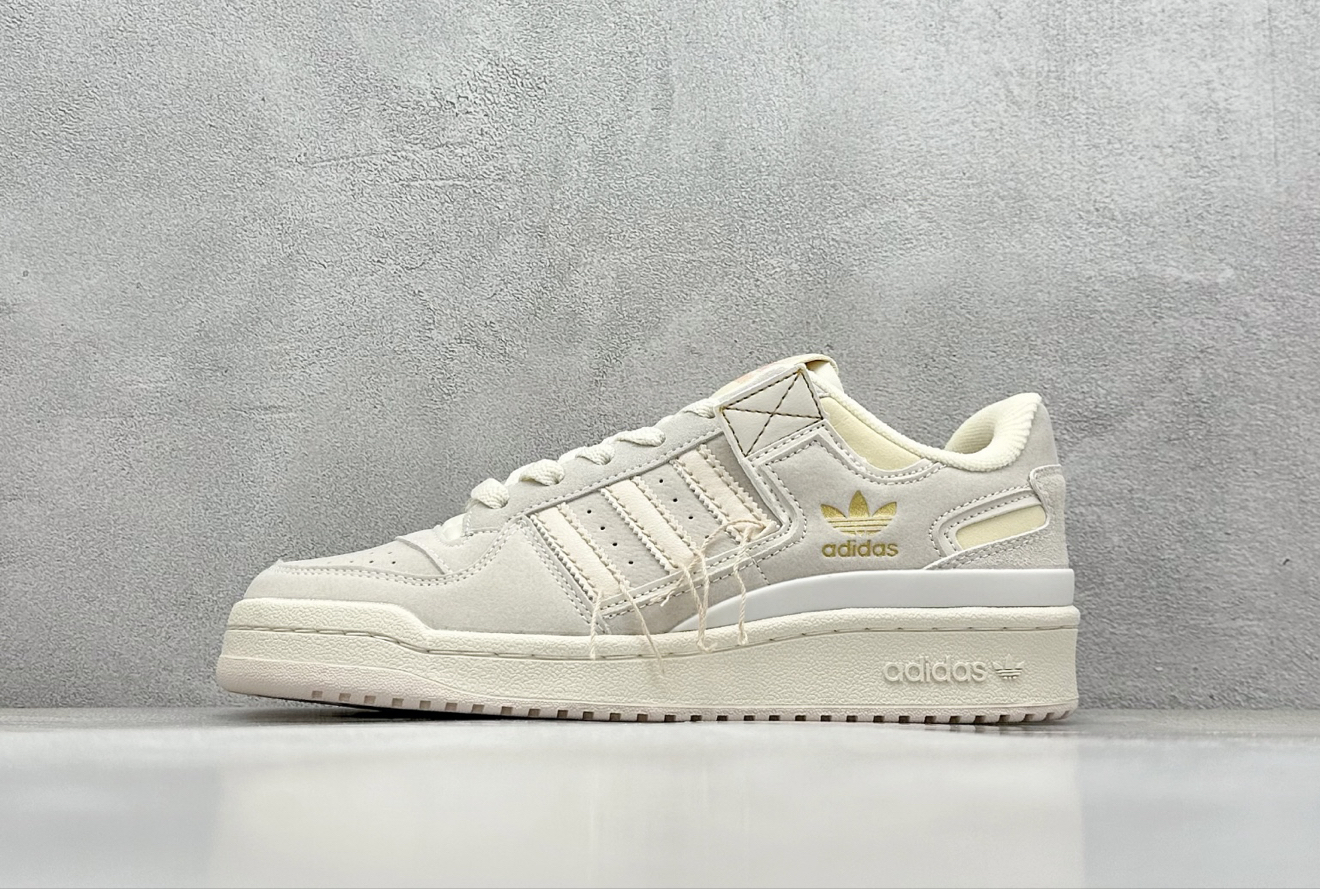 这双Adidas Forum 84 Low米白款,把“不费力的好看”焊在鞋型里—— 翻毛皮+头层牛皮的温柔质感,像把秋冬的软雾裹在脚上;做旧米黄中底自带复古滤镜,踩上去连步伐都慢了半拍。 不用费心搭配,牛仔裤/卫衣/小裙子往身上一扔,它就能接住所有风格: 上班是“低调精致”的通勤感,周末是“慵懒松弛”的街头调,连约会都能靠那抹金标悄悄提气质。 软乎乎的鞋垫裹着脚,踩一天也不会累;防滑橡胶底碾过落叶...