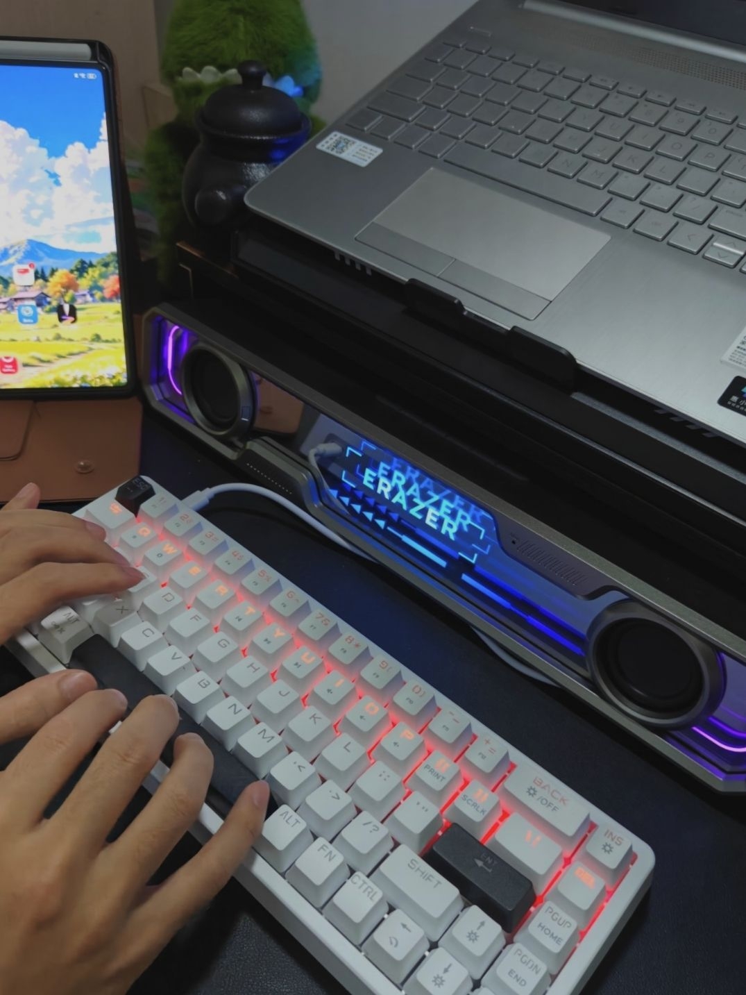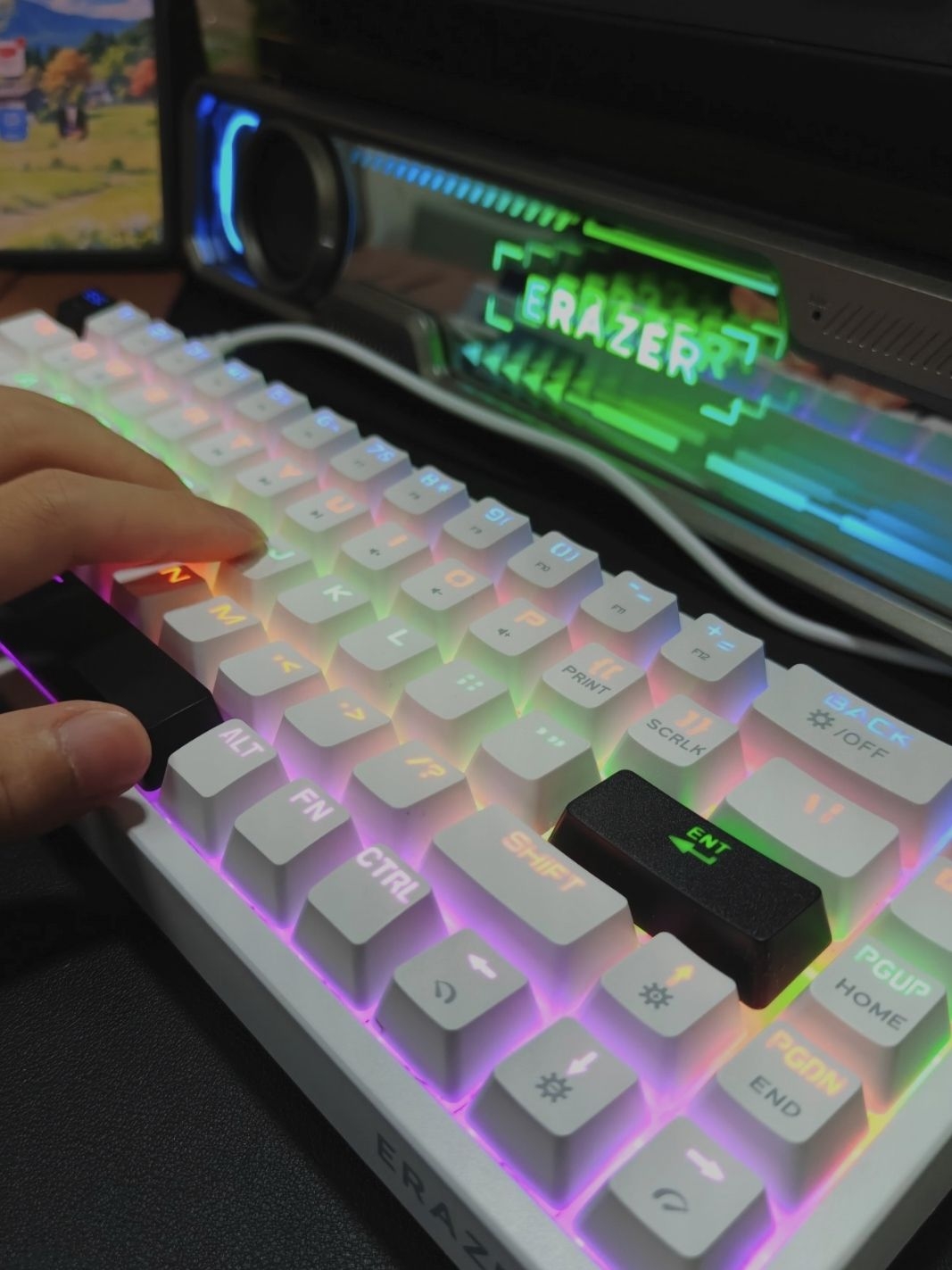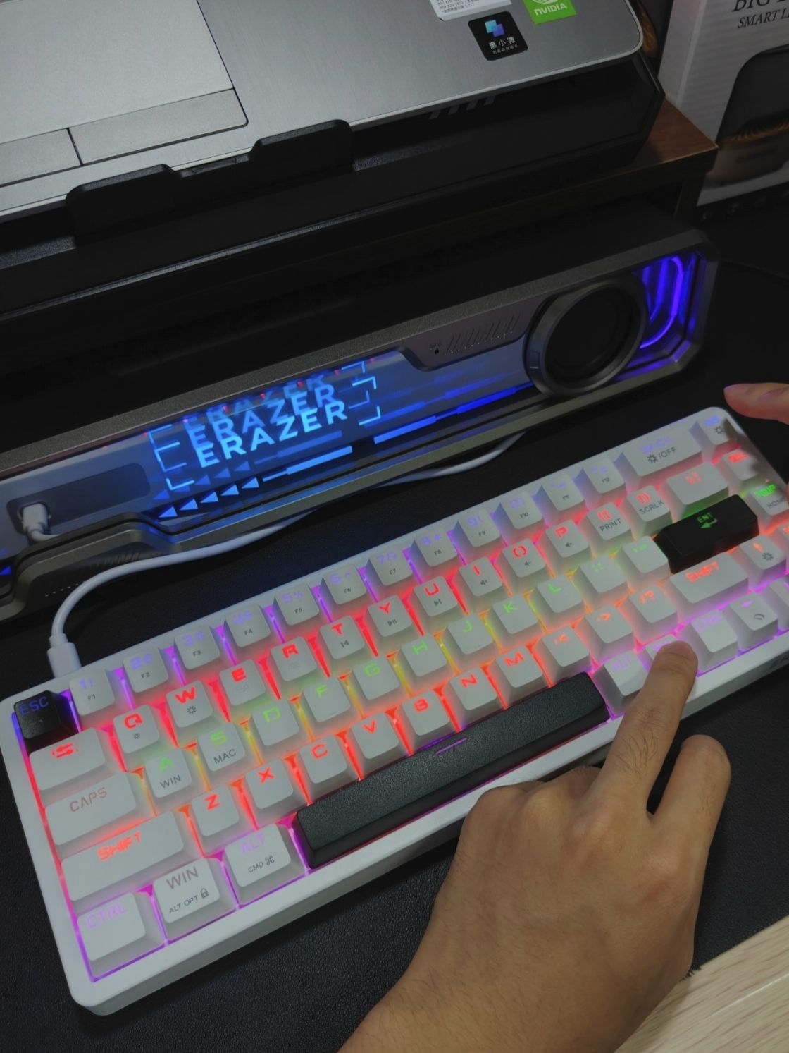 ⭐家人们,给自己男朋友挑键盘⌨️,我建议送帅的炫酷的,这款联想异能者的MK68键盘就是比较挺合适爱打游戏的兄弟 ✅首先,他的灯效很炫酷,而且有17种不同的灯效💡,总能挑到自己喜欢的,我就比较喜欢不停闪烁的那种😁😁😁 ✅他的设计也很简约,白色+黑色的配色💐,使用起来不会显得花枝招展的⌨️⌨️ ✅整体质感也挺舒服的,敲击感很强烈📱,像在敲冰块一样,图片2里有敲击声🧊,打游戏比较舒服,但这也导致他会比商...