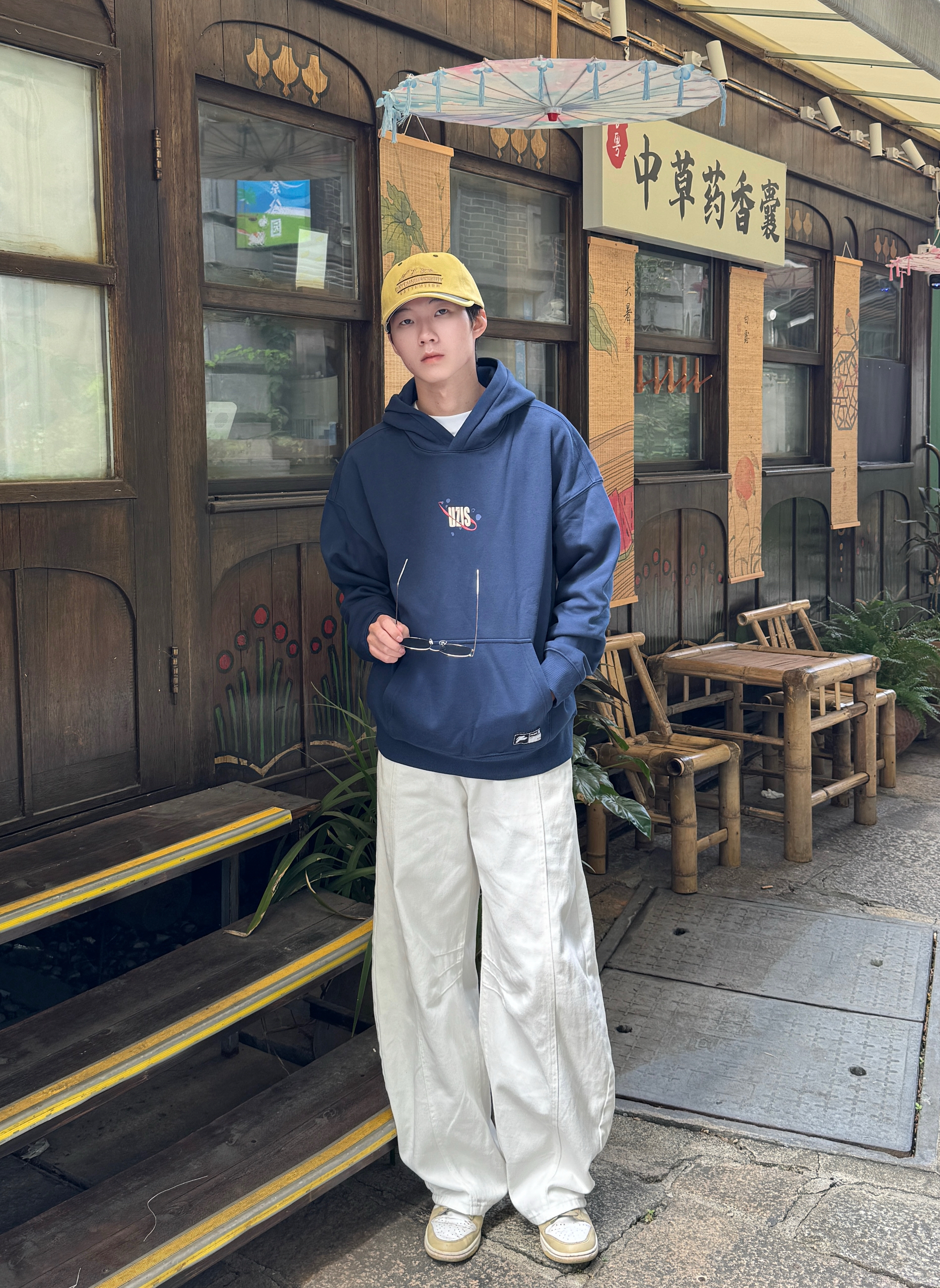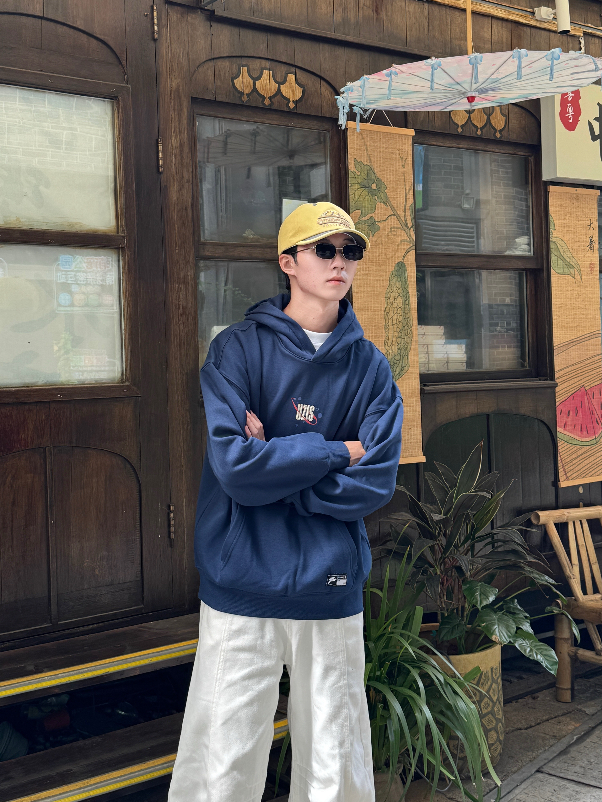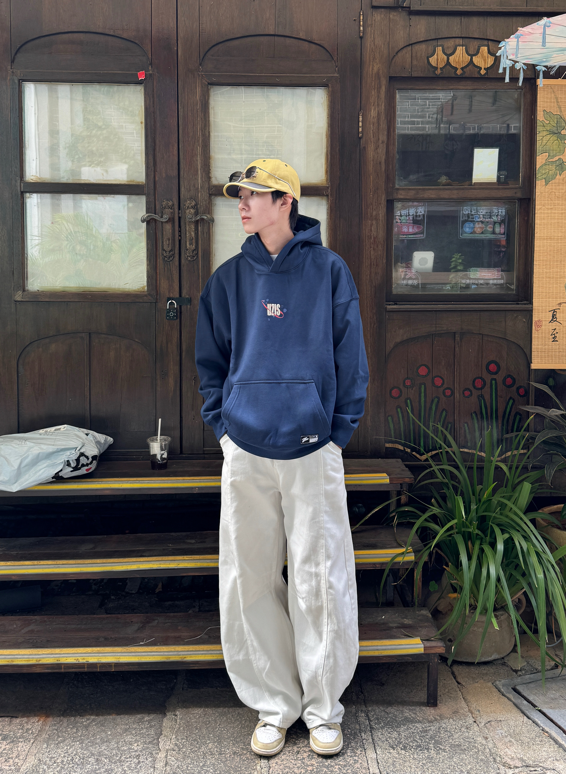 今天这身清爽又复古 藏青色运动卫衣版型宽松 经典螺纹领口和袖口 自带90年代校园感📺 下身搭配白色弯刀牛仔裤 独特剪裁完美修饰腿型~ 蓝白配色干净耐看 轻松穿出复古运动范儿✨