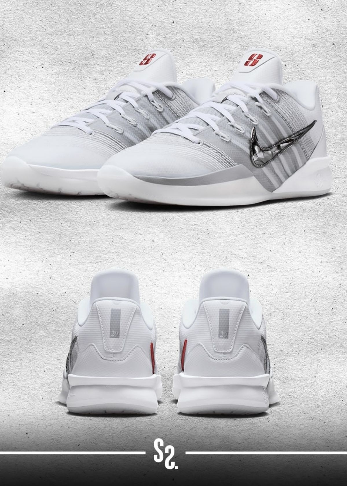 1. 极简竞技风拉满 白灰渐变织面裹出利落线条,金属Swoosh像折光的锋芒,鞋舌那抹红是“自我较劲”的标识——Sabrina 3 “Me vs. Me”把赛场张力穿成了日常高级感,男女上脚都是视觉暴击💥 2. 细节控直接沦陷 织面纹理藏着支撑力,半透明外底露着实战基因,连鞋舌的“5”标都在讲竞技故事。这双鞋是“能打”的证明,也是“好看”的底气,谁能拒绝把“单挑自己”穿在脚上? 3. 实战...