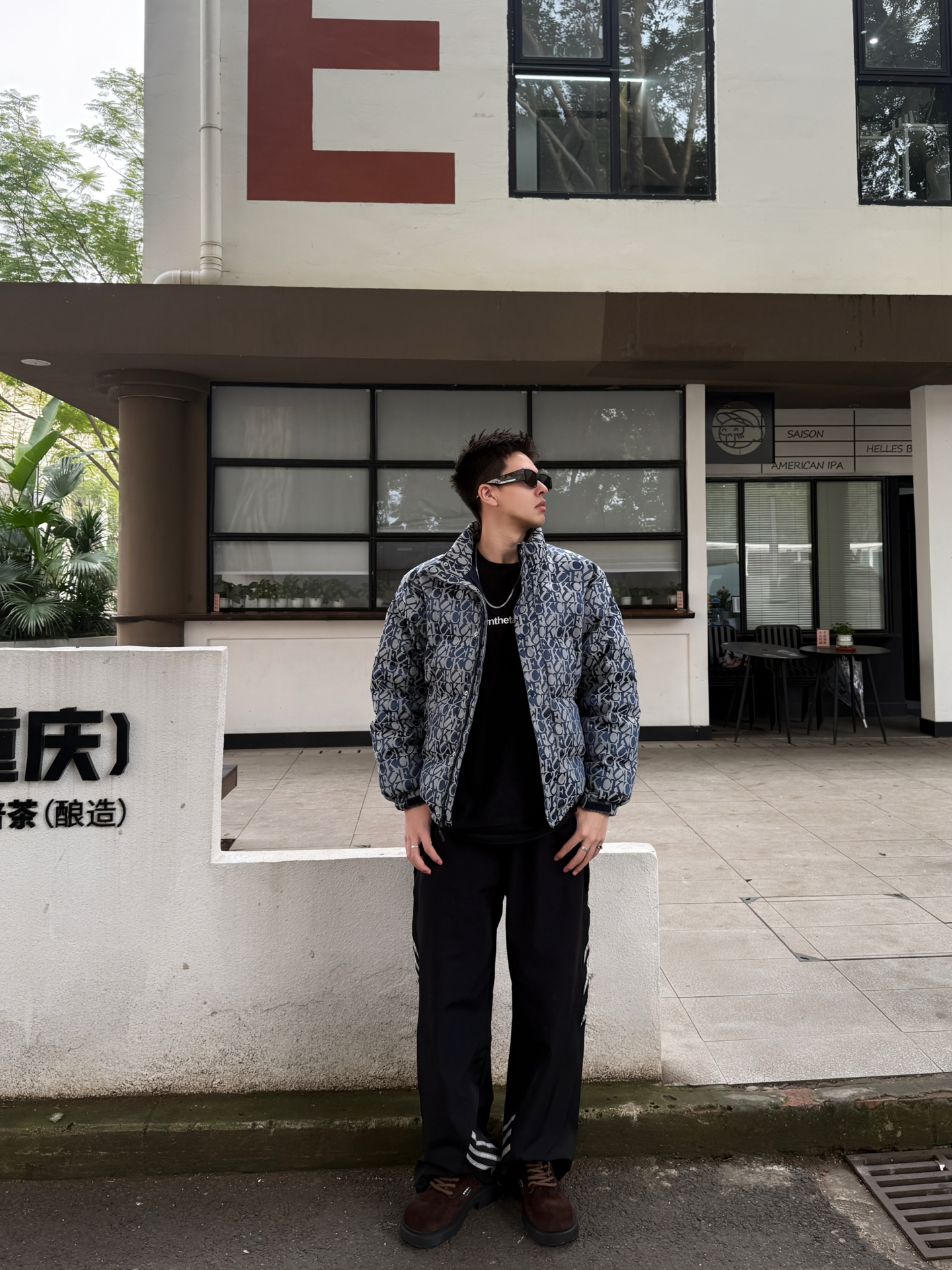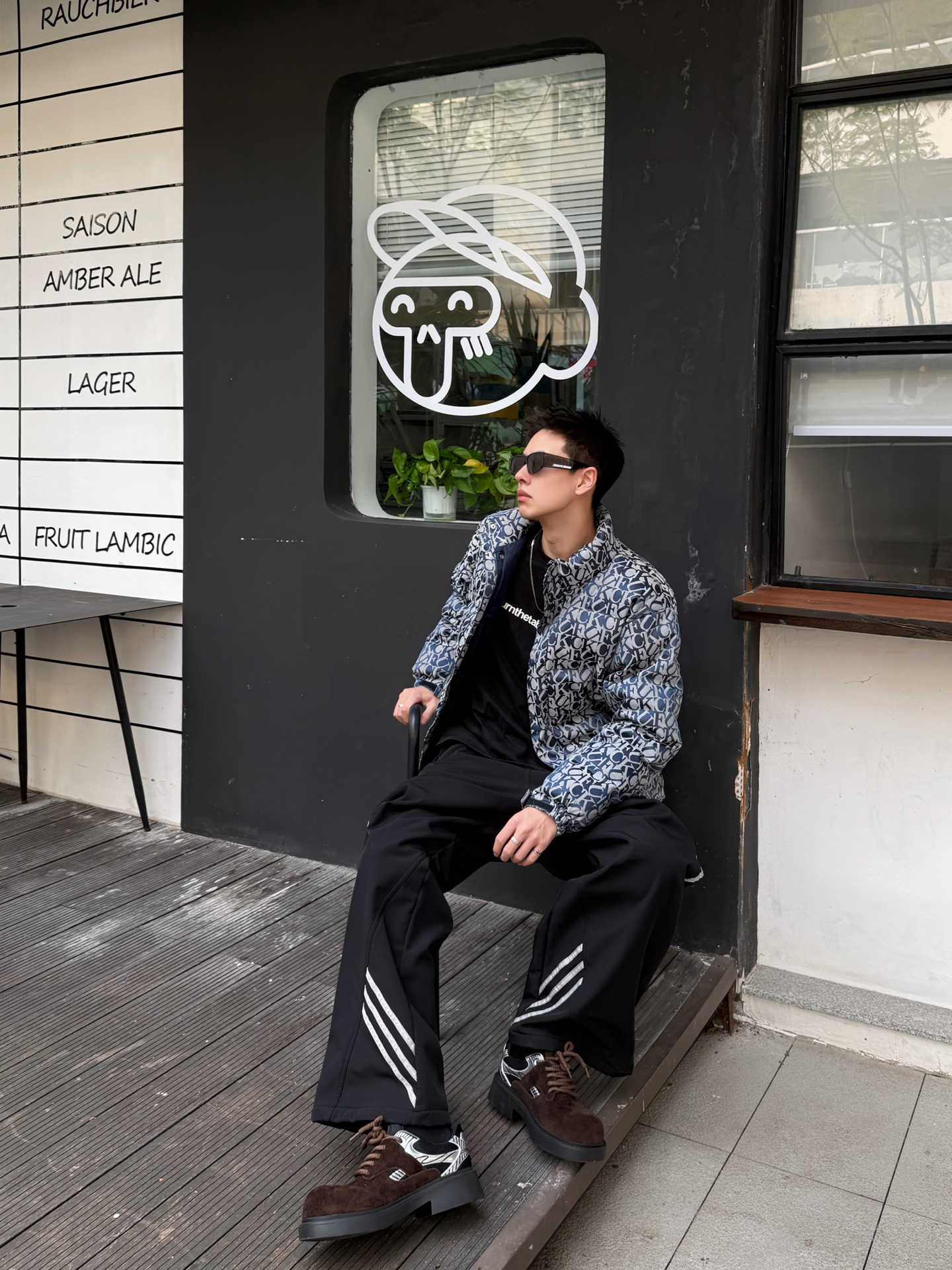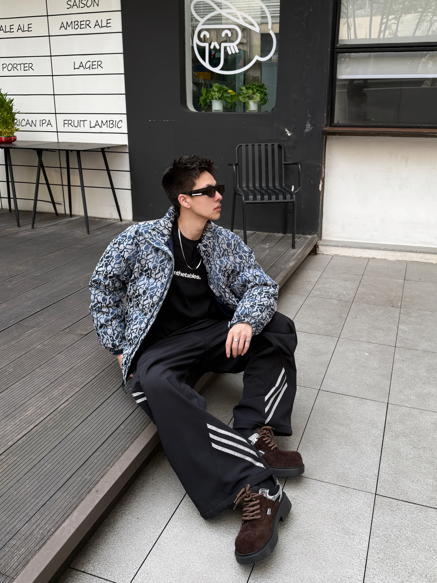 满印夹克+黑阔腿裤,这“松弛潮感”直接焊在日常里 谁懂这件满印夹克的氛围感啊—— 蓝灰花纹裹在身上,自带低调的复古质感;搭黑阔腿裤松垮得刚好不拖沓,踩双七匹狼美拉德鞋,绒面+厚底直接把秋冬的暖与潮锁死,往咖啡馆外一靠,随性又显贵。 不用费心搭,套上就是日常出街的王炸组合! #七匹狼休闲鞋 #越旧越时髦 #复古CORTIS风 #暖烘烘过冬搭子 #圣诞礼物情报局