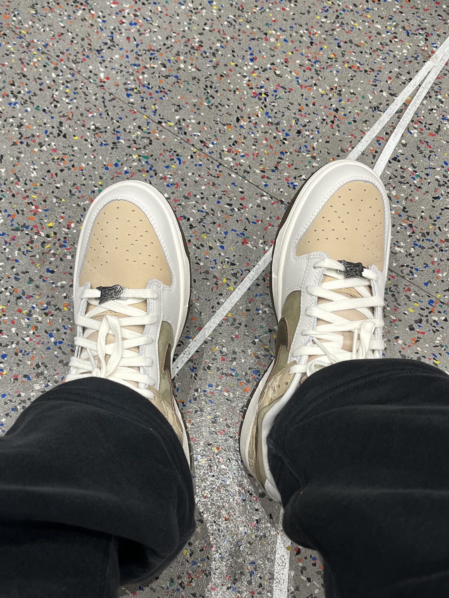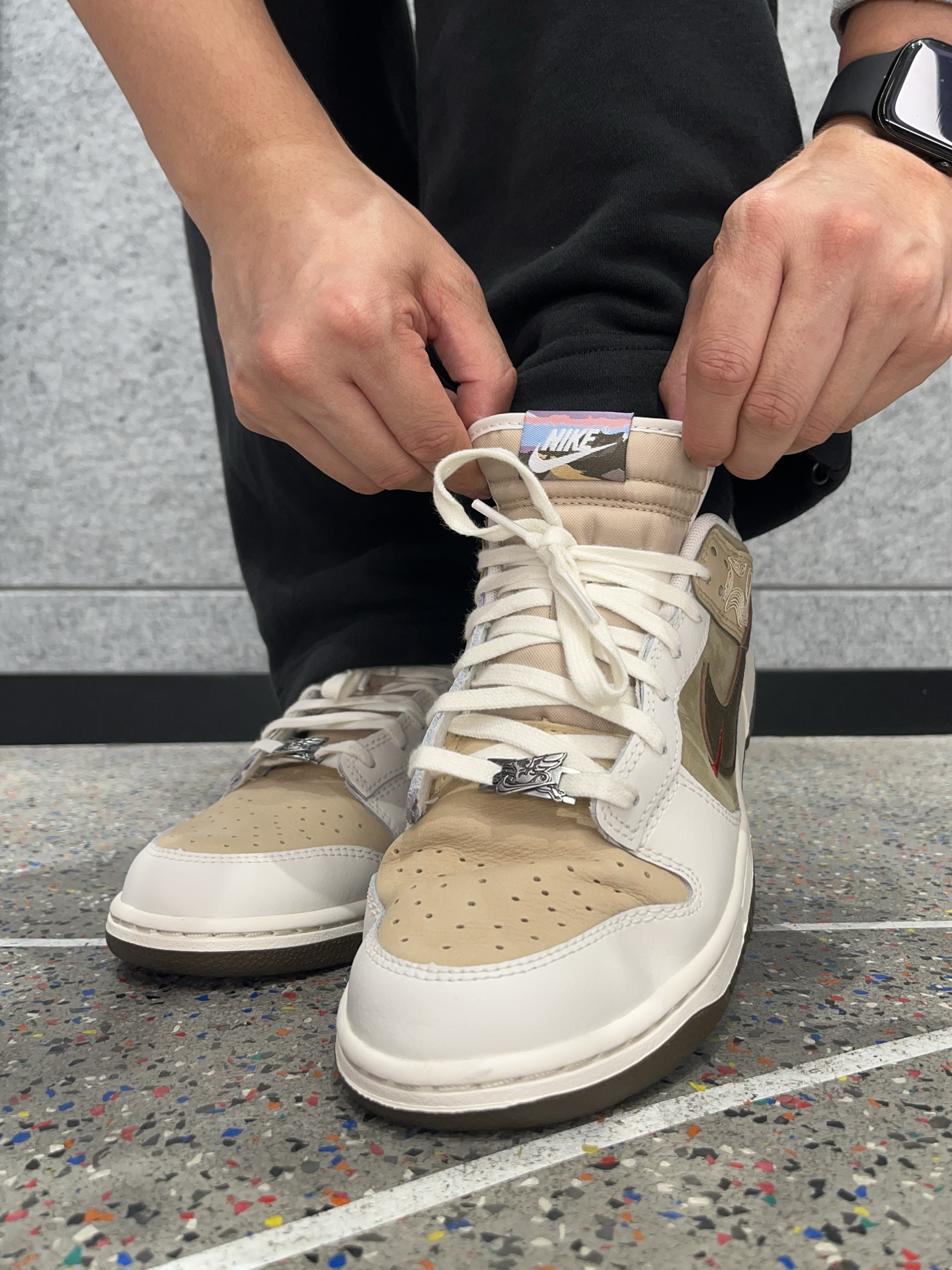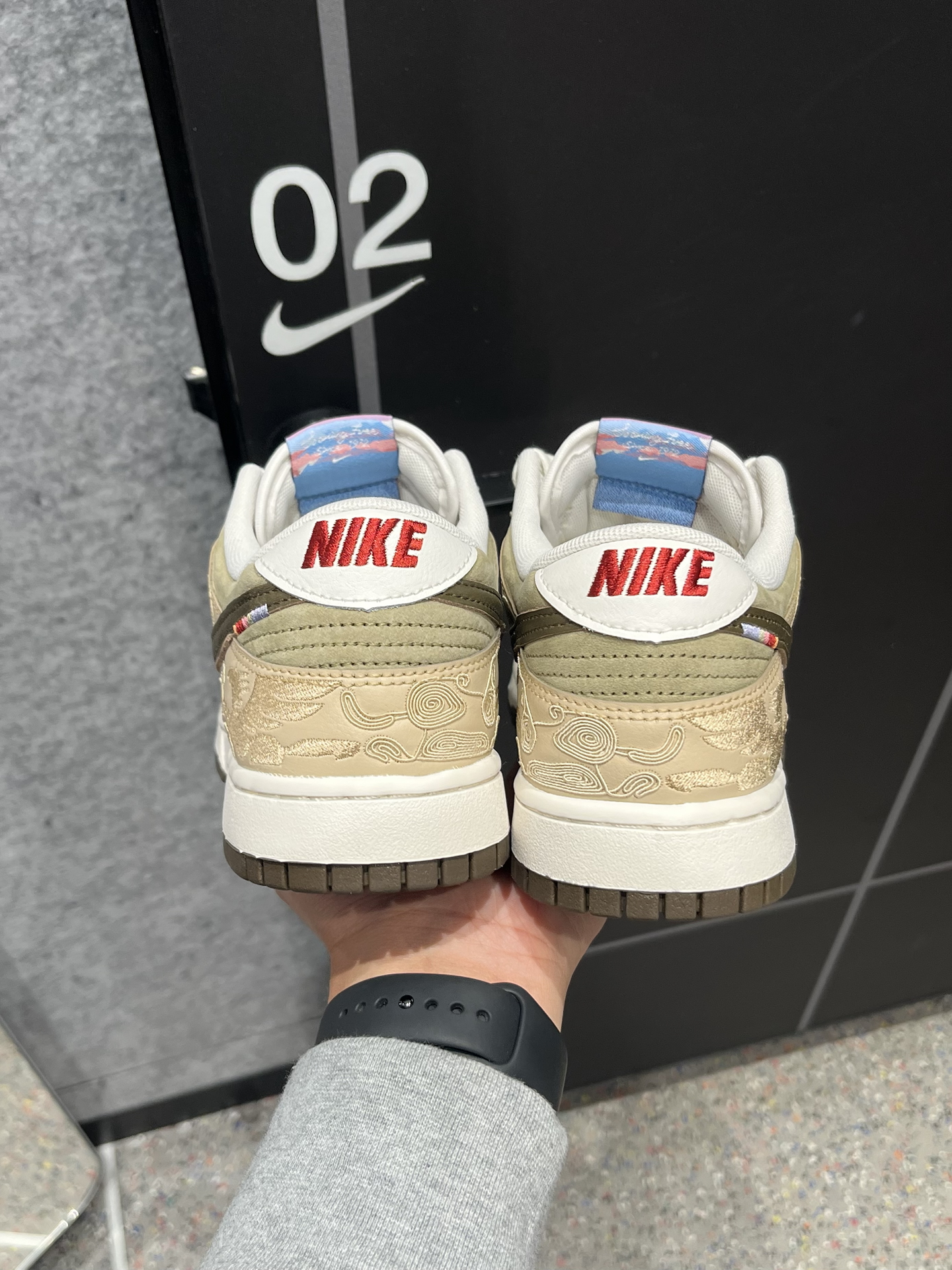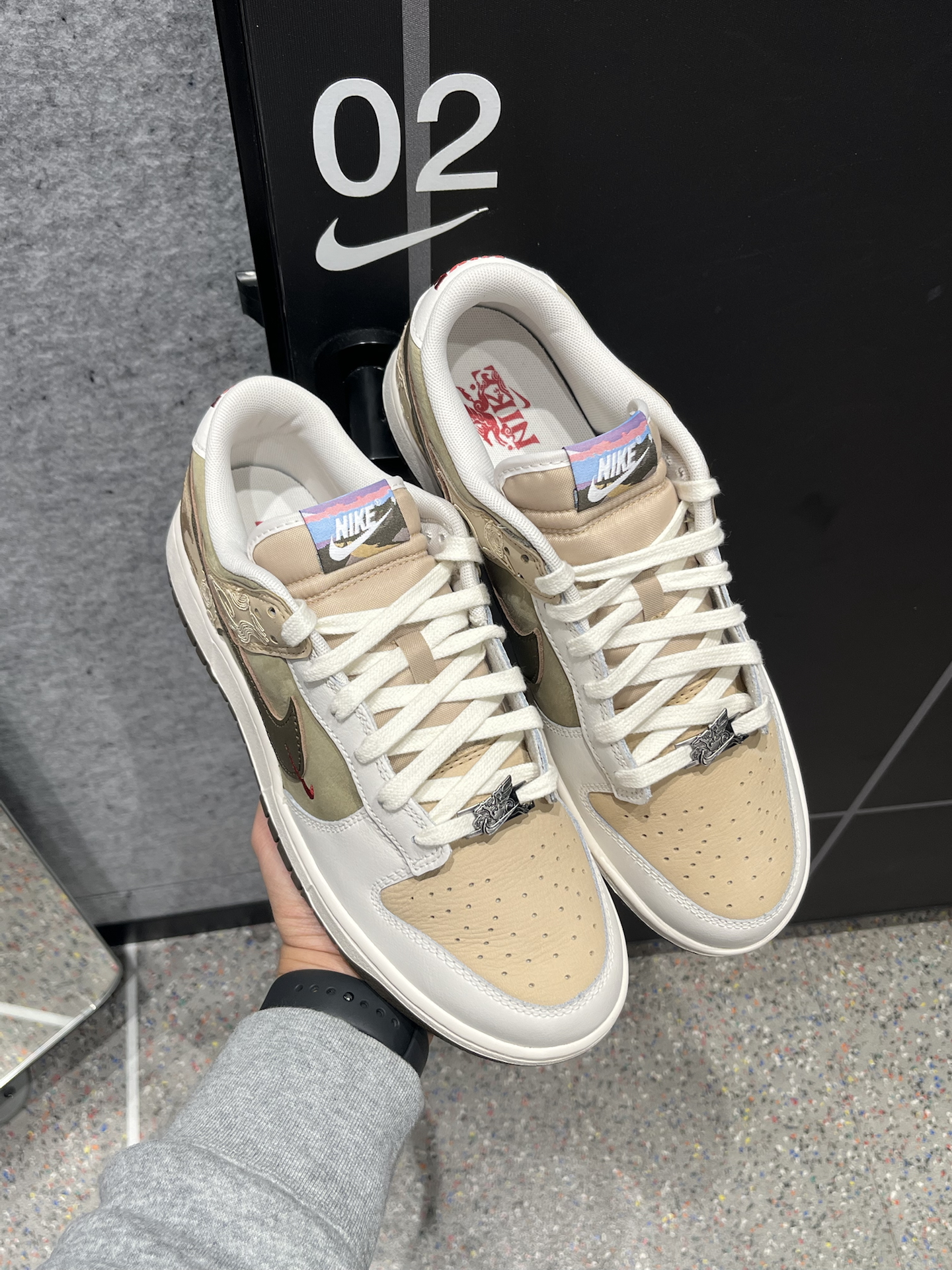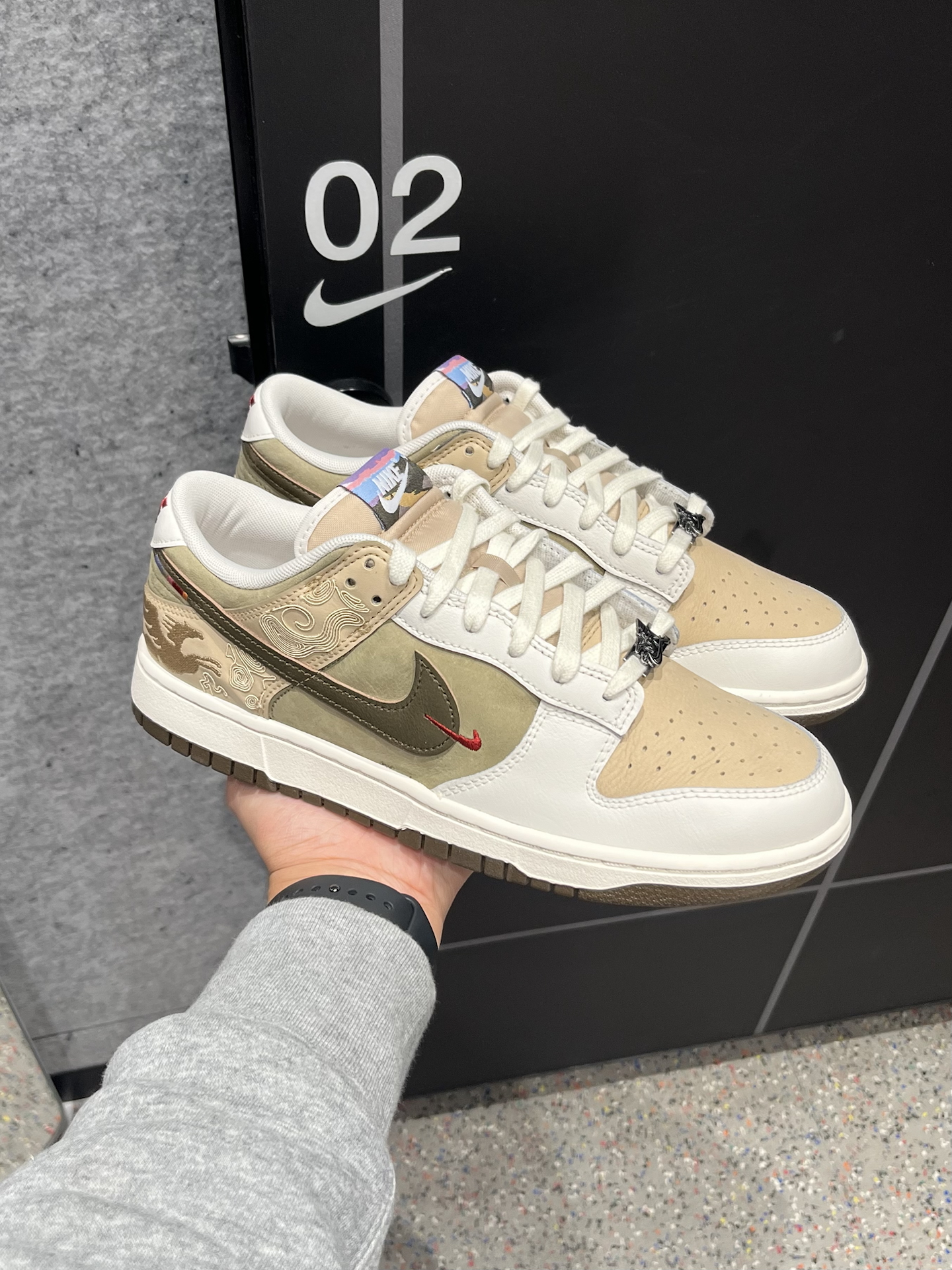 印象里蛇年Dunk才过去没多久,马年CNY就来啦,实物到手,赶紧上脚蛮帅的⁉️ 米棕➕橄榄绿的色调很复古,而且吸引我的则是新年的细节,满载好的寓意~ 侧面环绕的祥云刺绣、带翅膀的飞马鞋带扣,鞋垫上都是奔腾的飞马… 2.5厘米左右厚度,上脚还是有显高的,搭配直筒牛仔裤或灰色卫裤,应该都会很出片~ #马年限定好鞋 #马年本命年送礼 #马年定制鞋 #低头拍双鞋 #元旦炸圈限定鞋