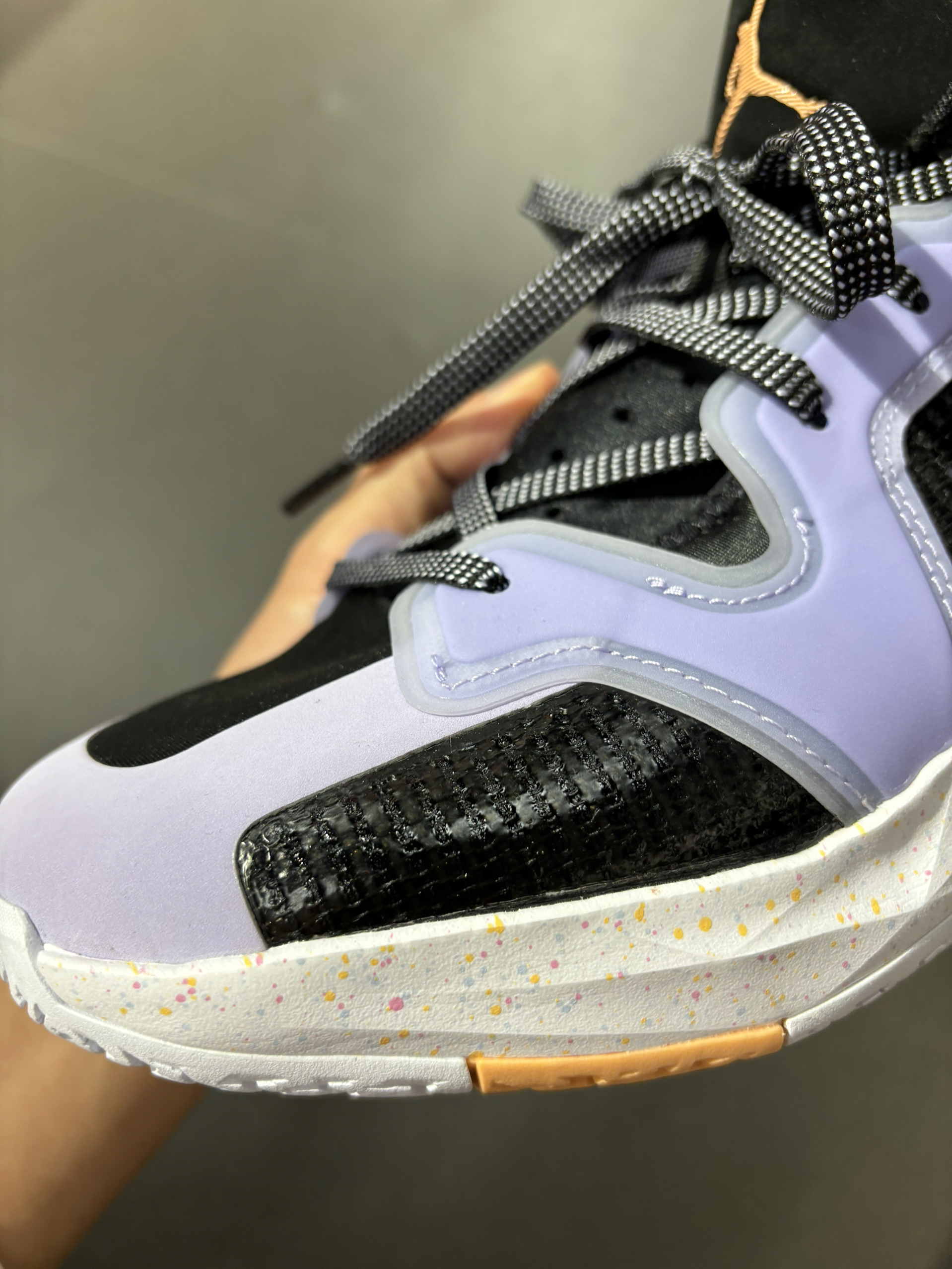 #新鞋零时差 这双鞋虽然好看但是不好穿啊 aj37谁穿谁知道 足弓顶的太厉害了 直接皮都磨破了 鞋底碳板我们班同学都坏了 一上楼梯就碎了 鞋面还特别捂脚 你们说好穿吗?