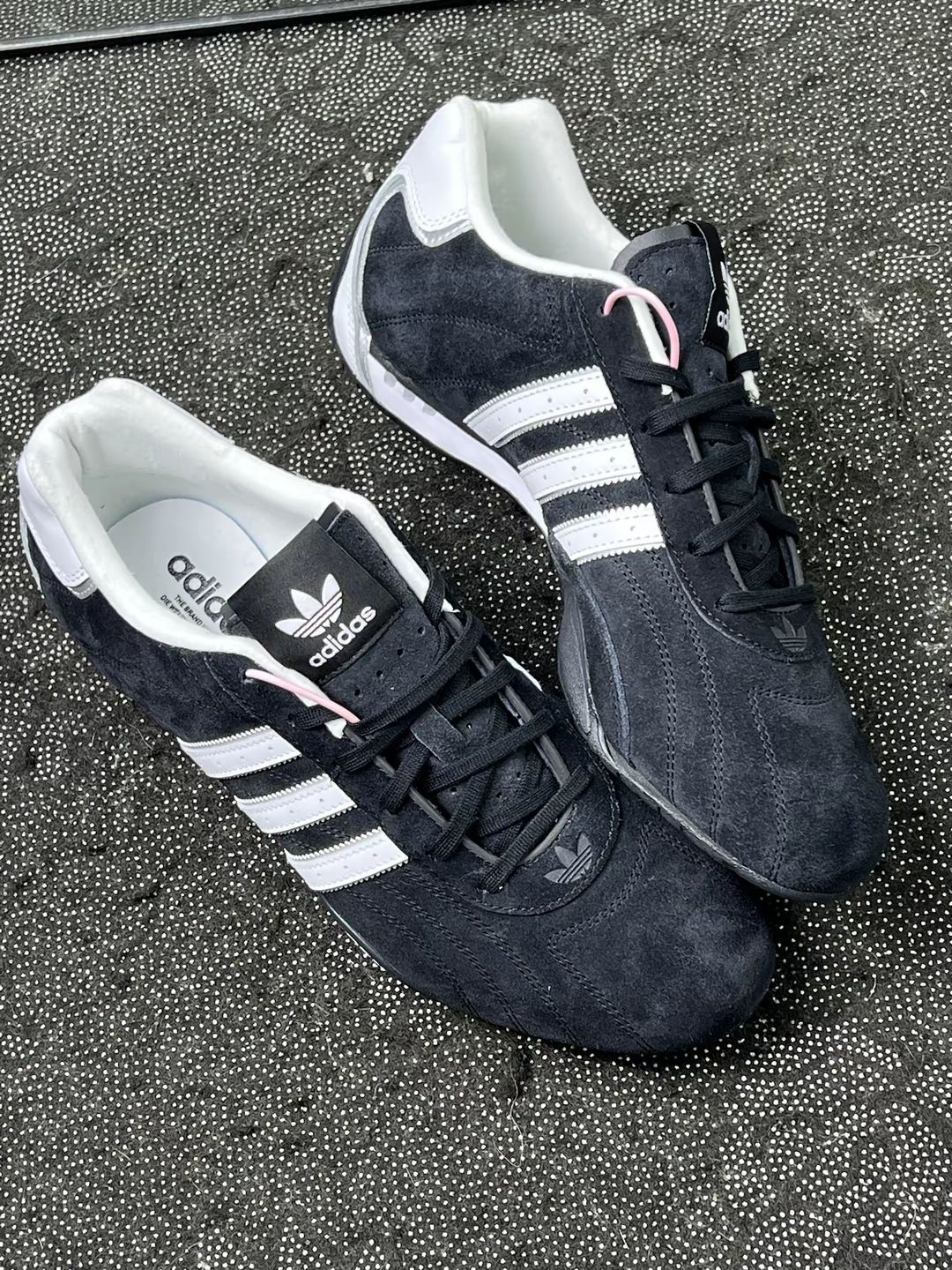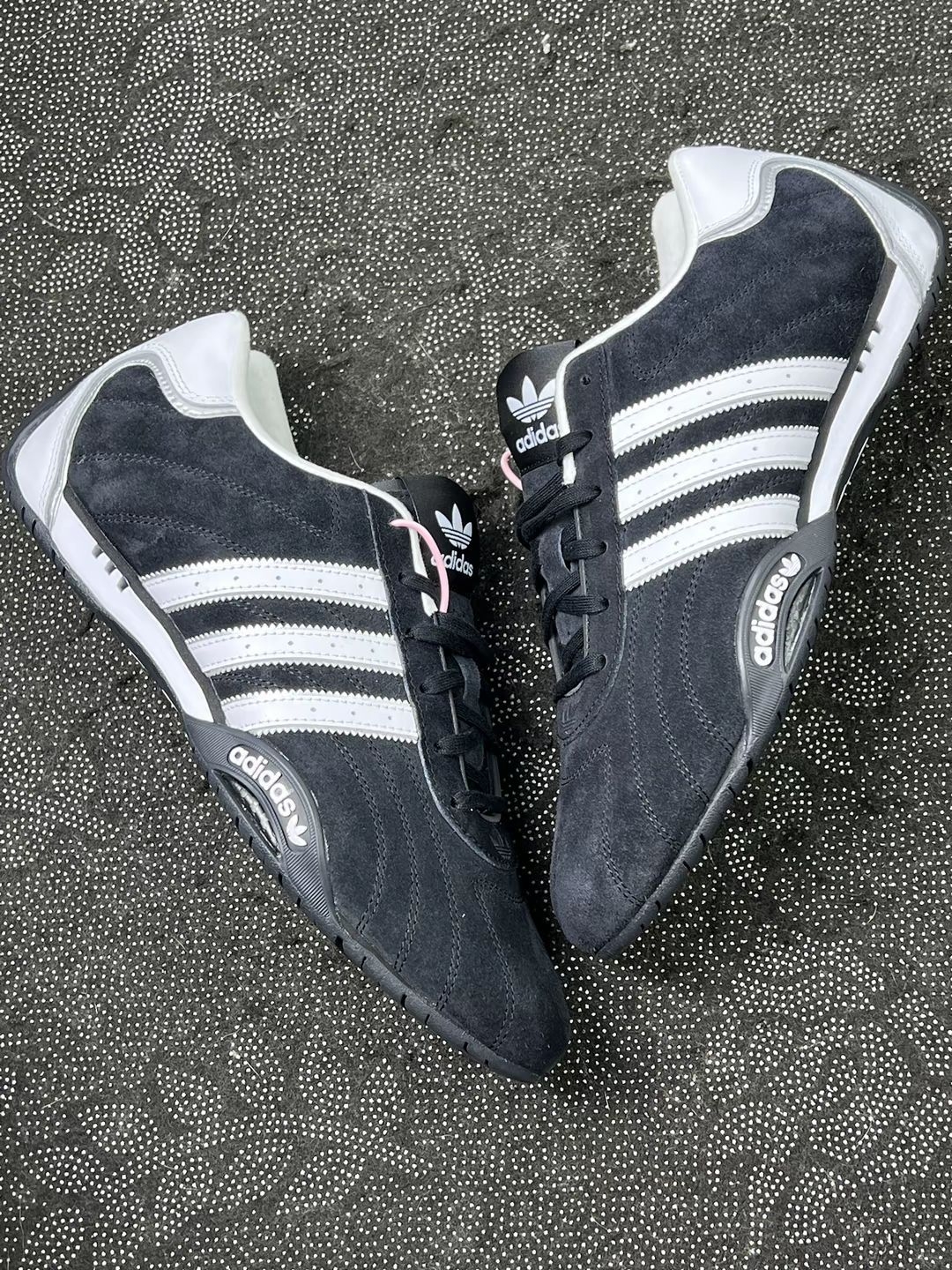 阿迪这双黑白赛车鞋,我穿了一周感觉真香! 颜值这块,我觉得它赢很大!经典黑白撞色,配上三道杠,简约又够潮,穿出门回头率杠杠的。魔皮的鞋身,质感看着就很在线,双缝线细节酷酷的。 脚感我必须夸!上脚第一感觉就是轻!轻盈感确实明显。虽然是薄底设计,但我觉得走路、通勤完全没问题,软硬适中不硌脚,挺舒服的。网面透气,夏天穿也不闷脚。 搭配度太省心了!这黑白配色,我感觉衣柜里80%的衣服都能搭,少年...