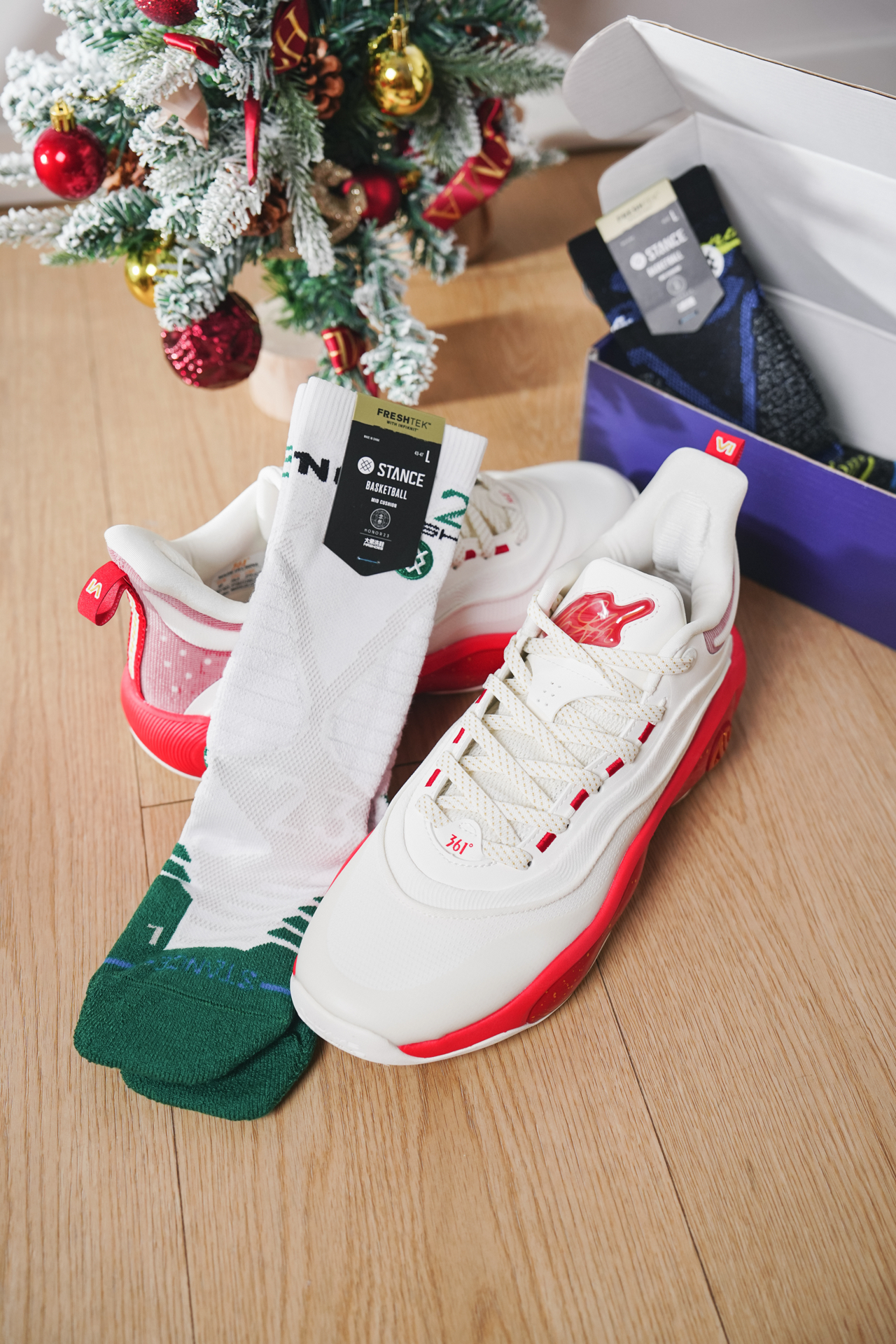 这次AG6的外观还是很有辨识度的,大面积色块的魅力还在持续增长!正好快到圣诞了,用这双念叁Stance联名的袜子搭配一个圣诞配色,上脚效果着实不错 #这双鞋我穿了很久 #秋冬跑鞋选这双 #总觉得双11差双鞋 #被这双鞋帅到 #书包里的篮球鞋