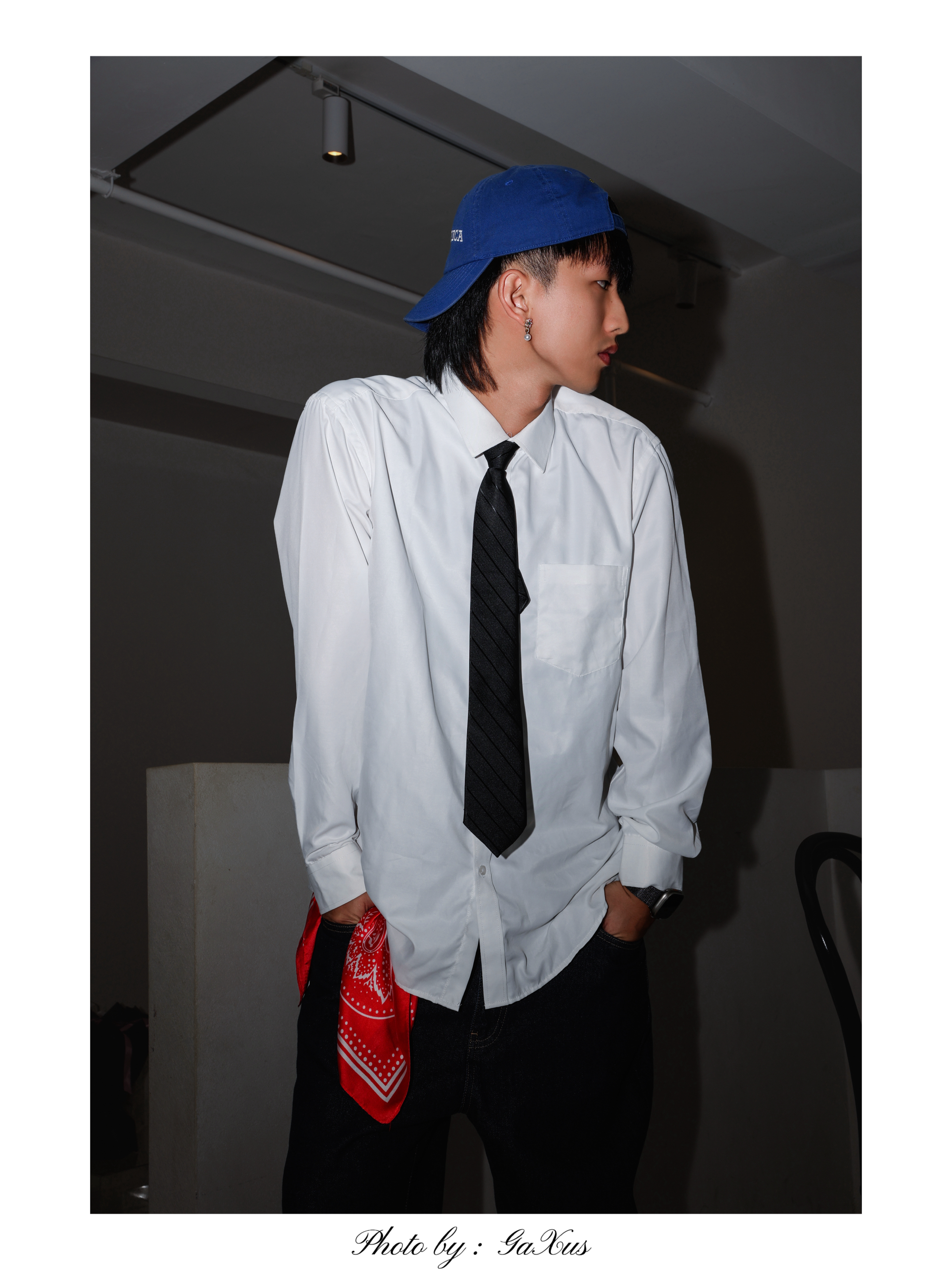 Yo wassup🤞🏻 这里是希望世界和平的Ga🕊️ 广东又又又升温了 今日白衬衫搭配领带 裤子选择宽松牛仔裤 让整体不要过于单调 再来蓝色鸭舌帽和红色方巾 这样装大学生搭配 你get到了