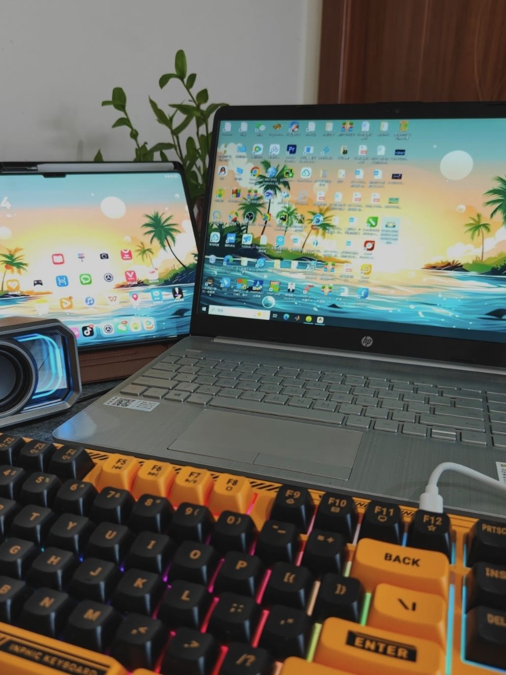🌇真没想到用上了夏日海滩感觉的壁纸🌴,冲击力这么强👀 🌿搭配上我的绿植🪴,感觉我的夏天又回来了🌞 当然,音响放点纯音乐☁️,键盘的敲击音也必不可少⌨️ ⭐夏天午后时光的感觉🛏️,推荐大家也试试