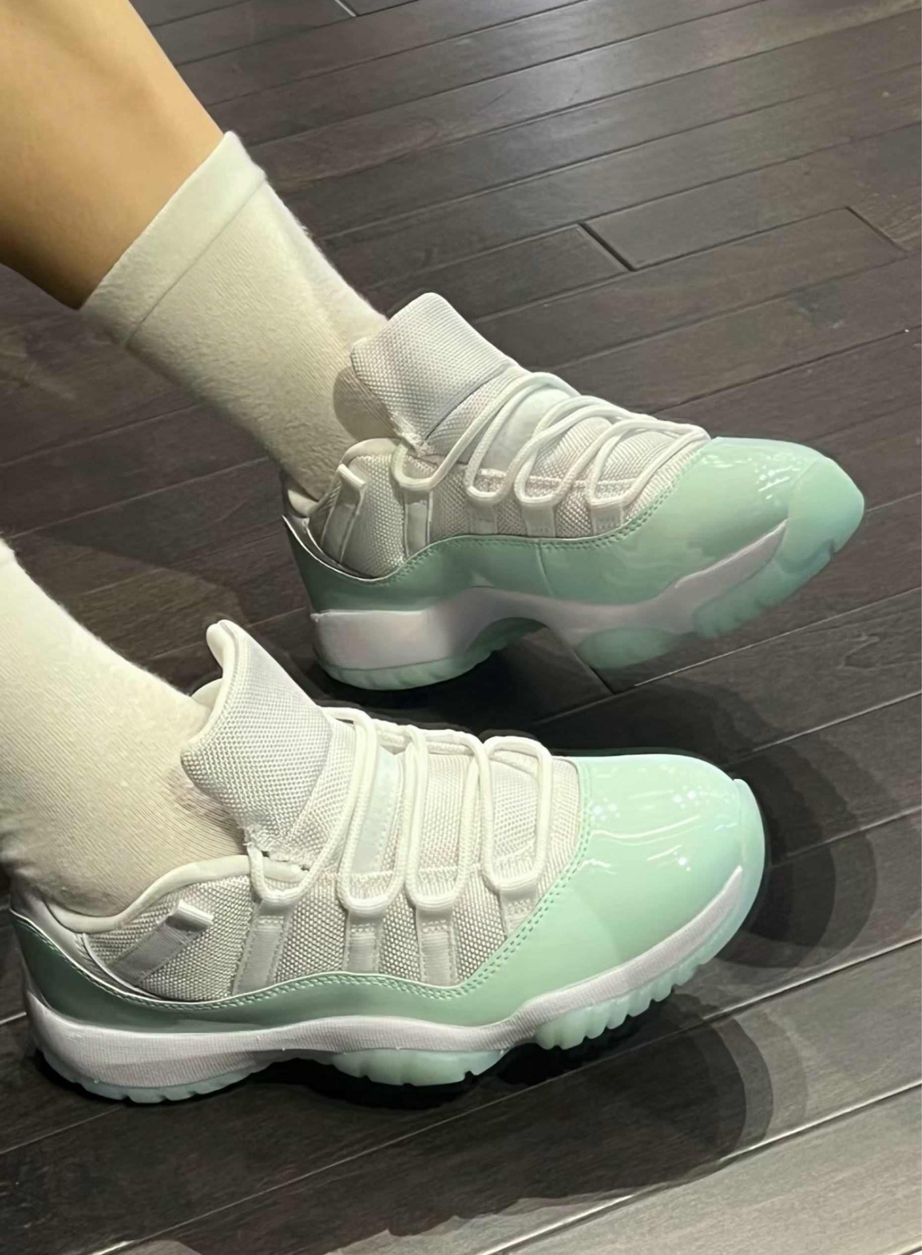 硬核球鞋实战派 这双鞋毫不夸张的说真比年龄大 老鞋应该是又补货了吧 配色很耐看薄荷绿色小清新 袜套设计很适合我们这种小脚 低脚背的女生我体重也比较小 前掌大气垫我好像踩不开啊 你们觉得怎么样?