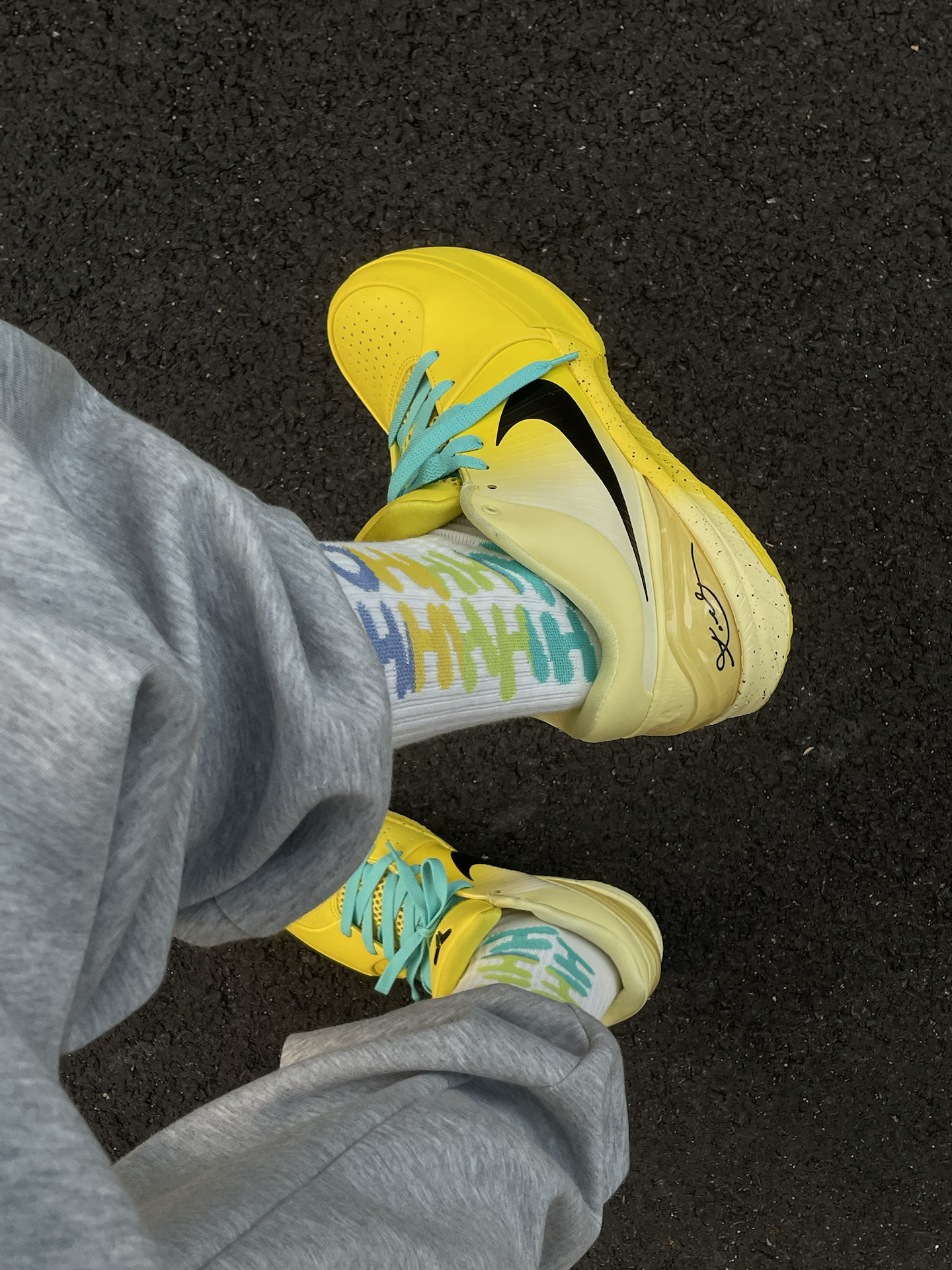 为了搭配这双彩色运动袜 特地给Kobe4换了双湖水蓝的鞋带 搭配上束脚裤,妥妥体育生搭配 这双袜子是纯棉材质 上脚柔软舒服,吸汗确实不错 而且还有防臭抗菌功能 送兄弟、男友以及老爸的不二之选! #新年穿搭仪式感 #双旦出街穿这双 #新年宜送礼表达爱意 #超好穿的篮球袜子 #预习一下冬天穿搭
