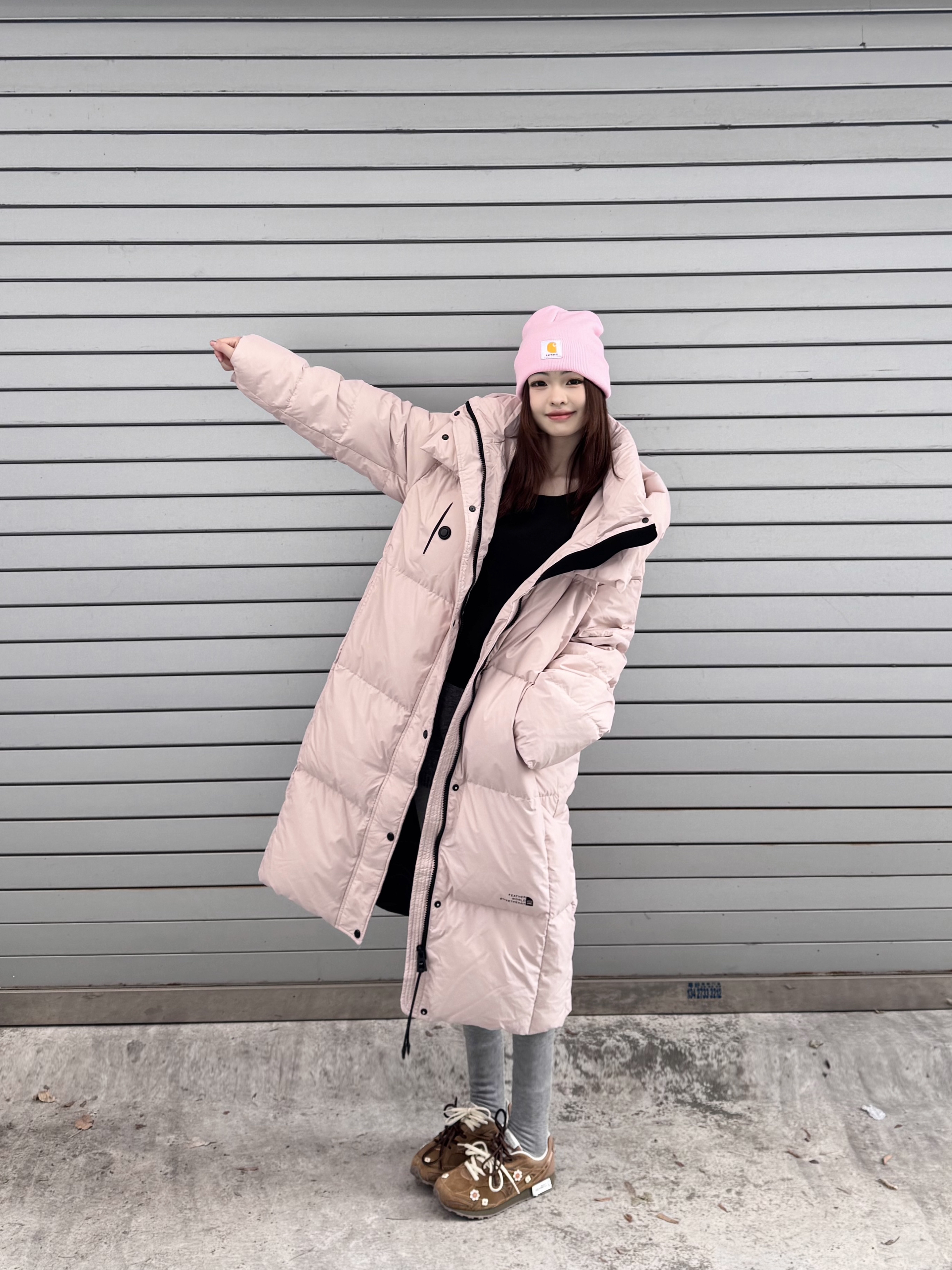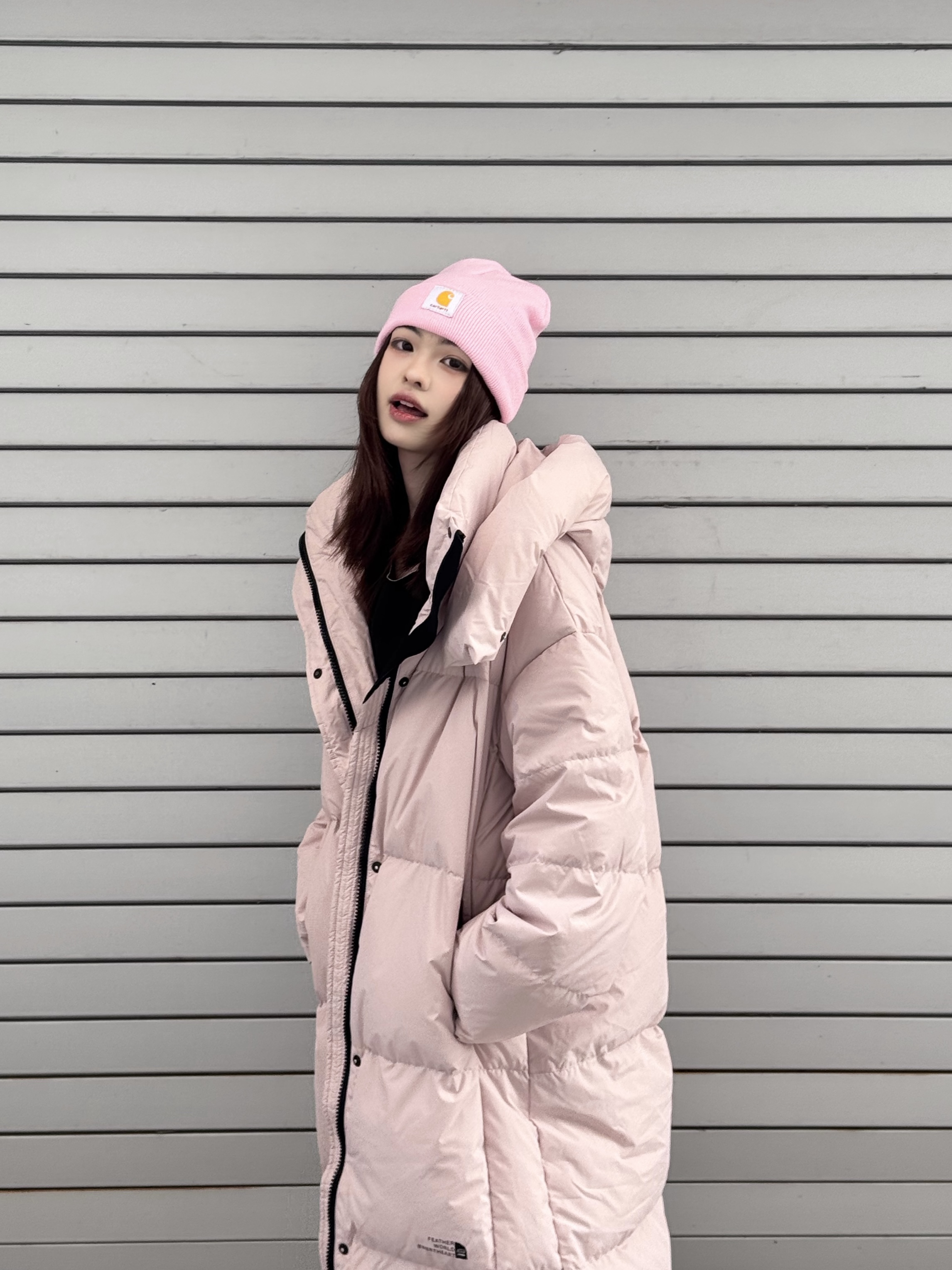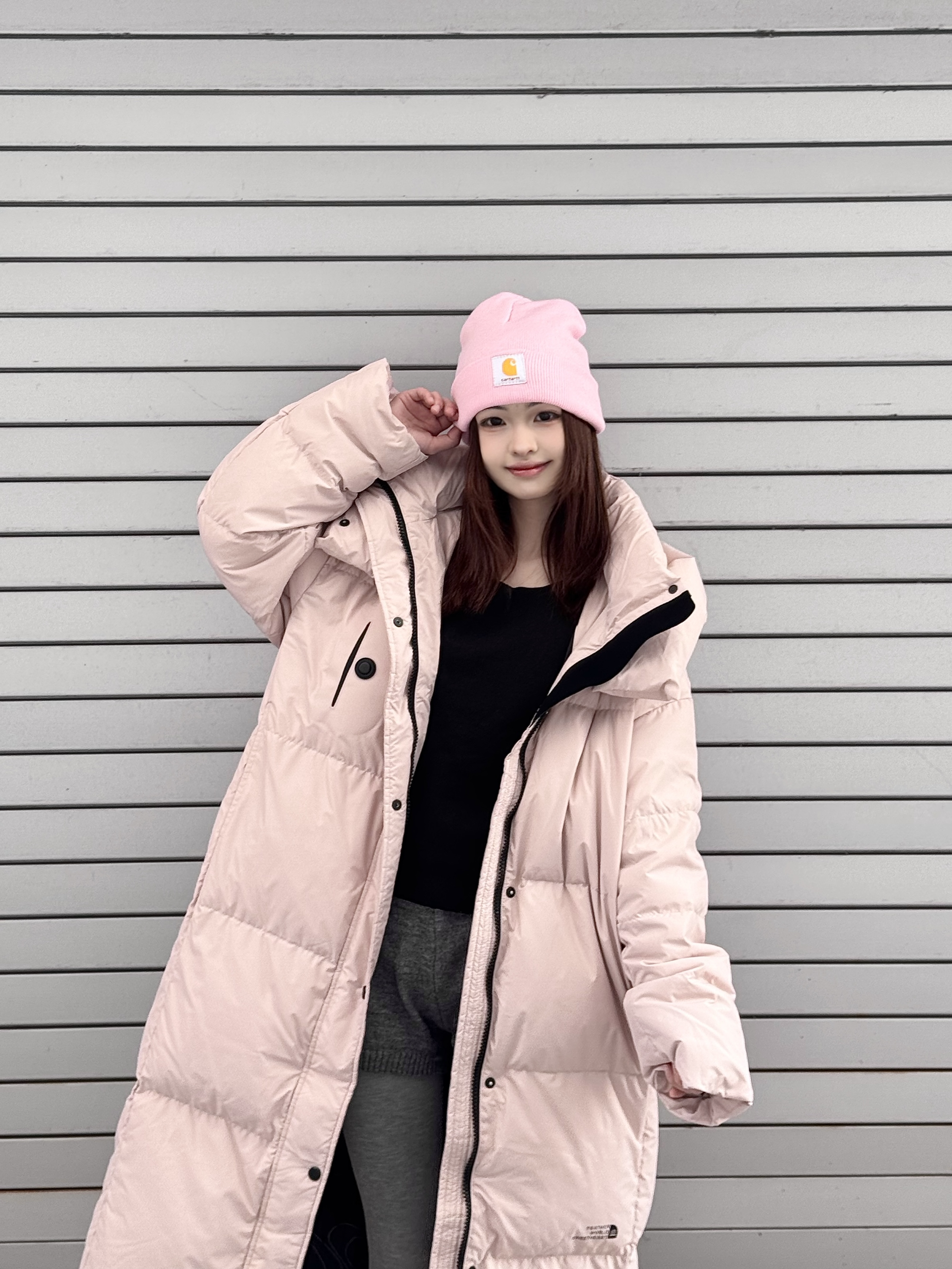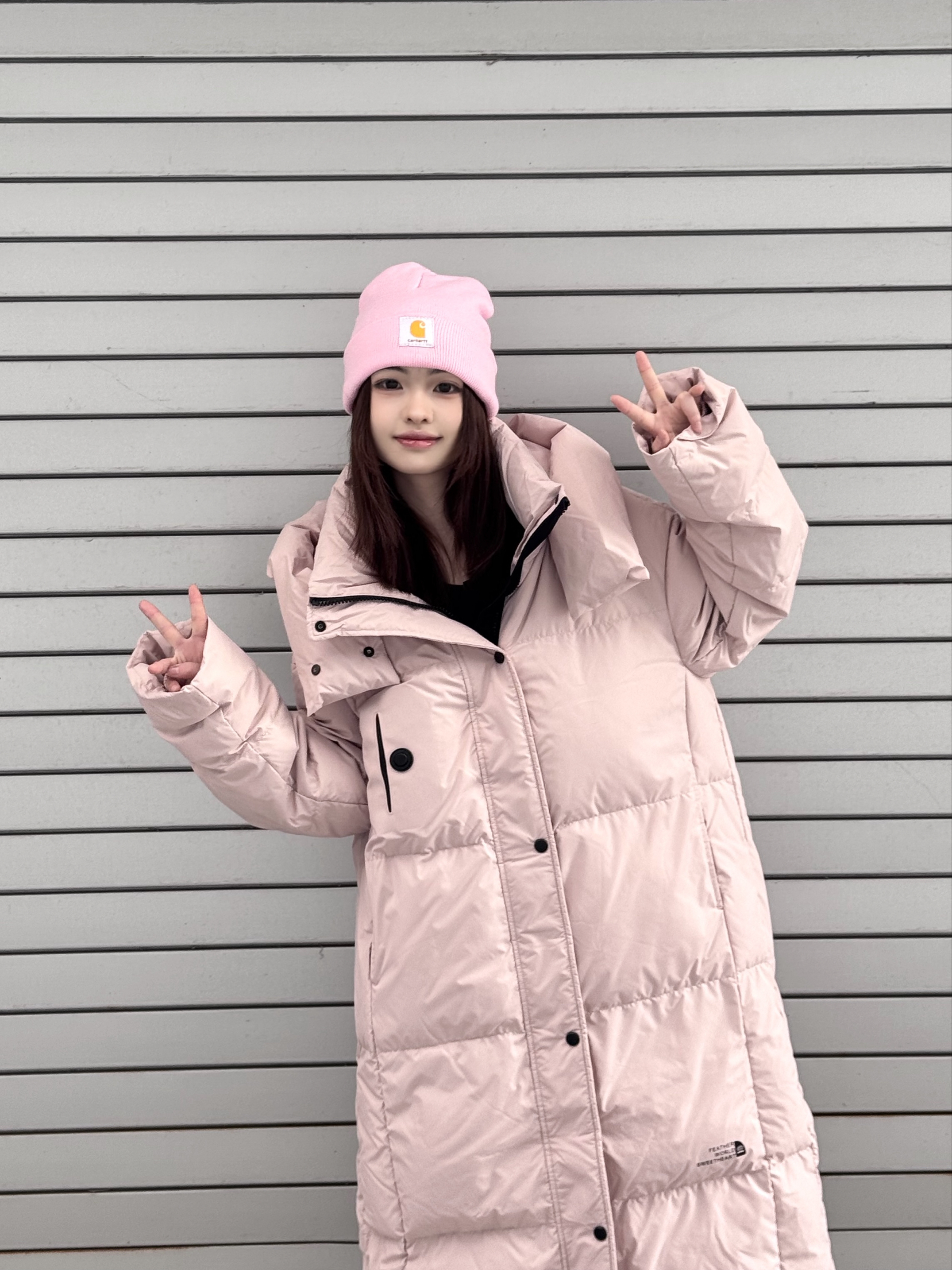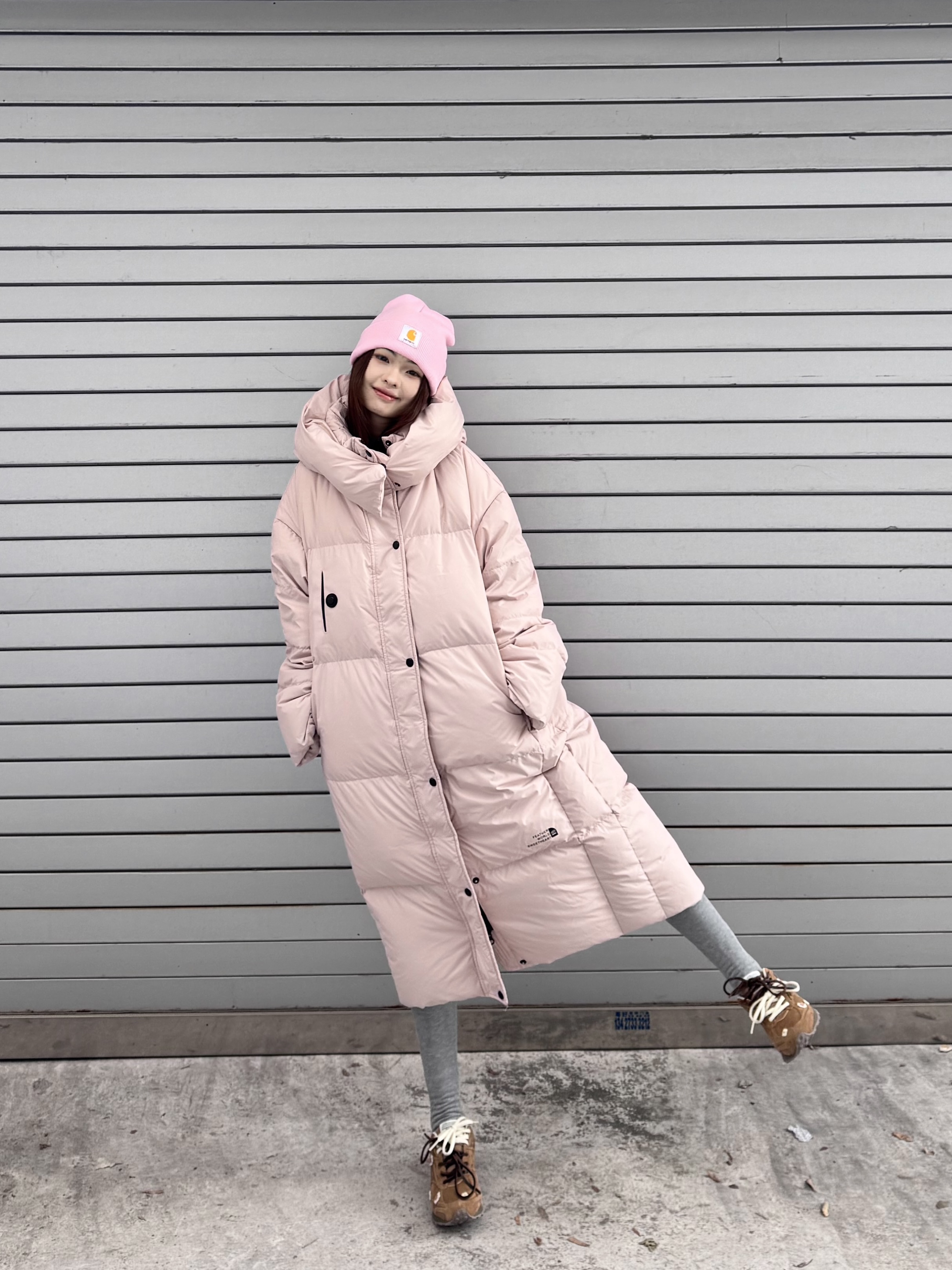 今天份冬日粉色系穿搭🎀 粉色羽绒服➕同色系冷帽➕休闲鞋👟 时髦俏皮美眉即视感~ · 今天上身 鸭鸭 长款羽绒服 这种低饱和的烟花粉 🍥 尊都很衬肤色捏~好喜欢! 90%含量的白鹅绒内胆🐩 手感软乎乎的 上身轻便又保暖~ 想立马去阿勒泰📷出片噜! ·