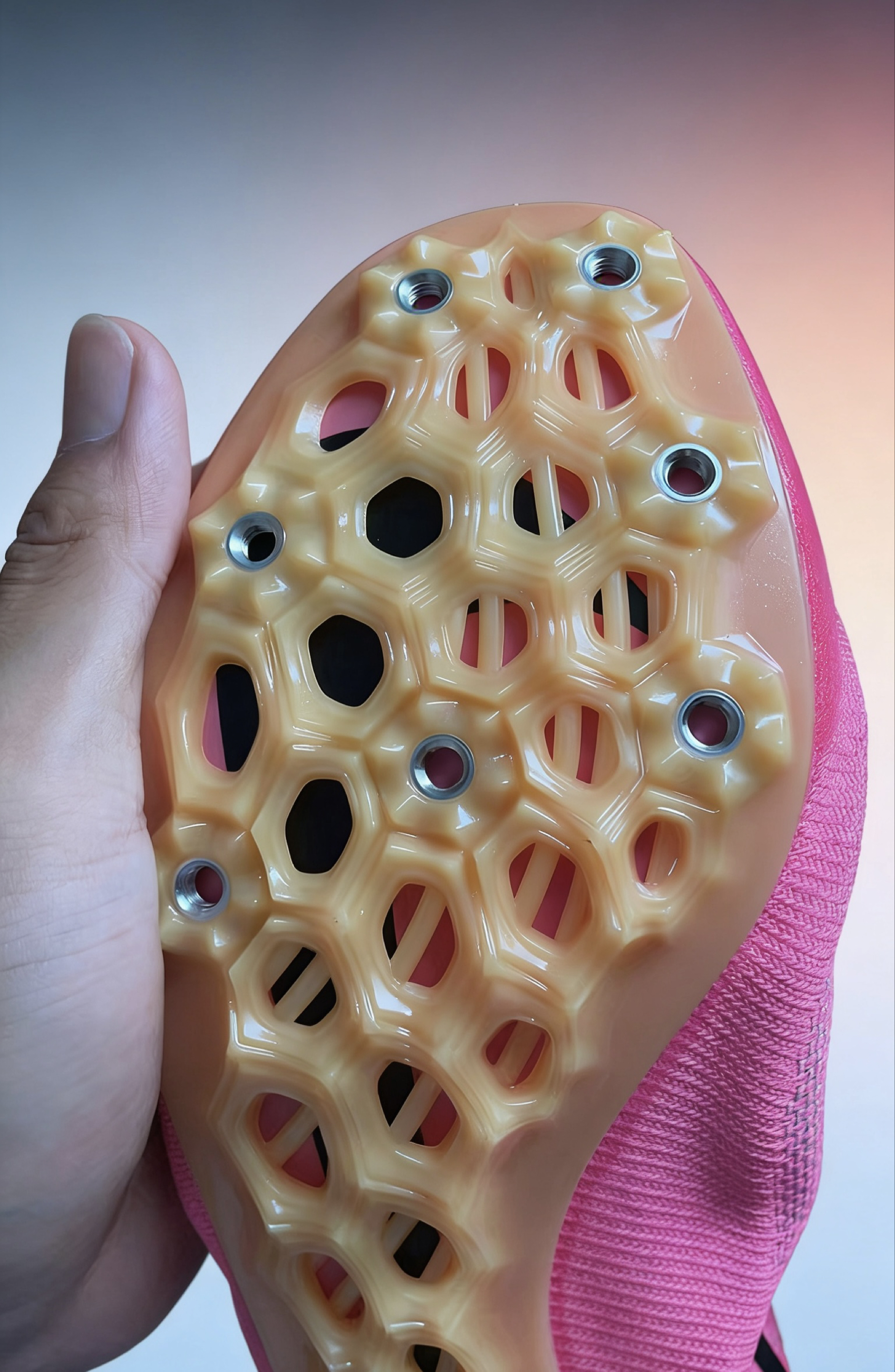 这双粉艳的Nikefly4钉鞋上脚田径场蹬地时抓地力超顶,蜂窝大底的回弹感直接拉满,粉色外观在赛道上就是最亮眼的存在,缺点是用久了强度没那么硬了会有点发软,刚开始买正常码可能会有点窄脚