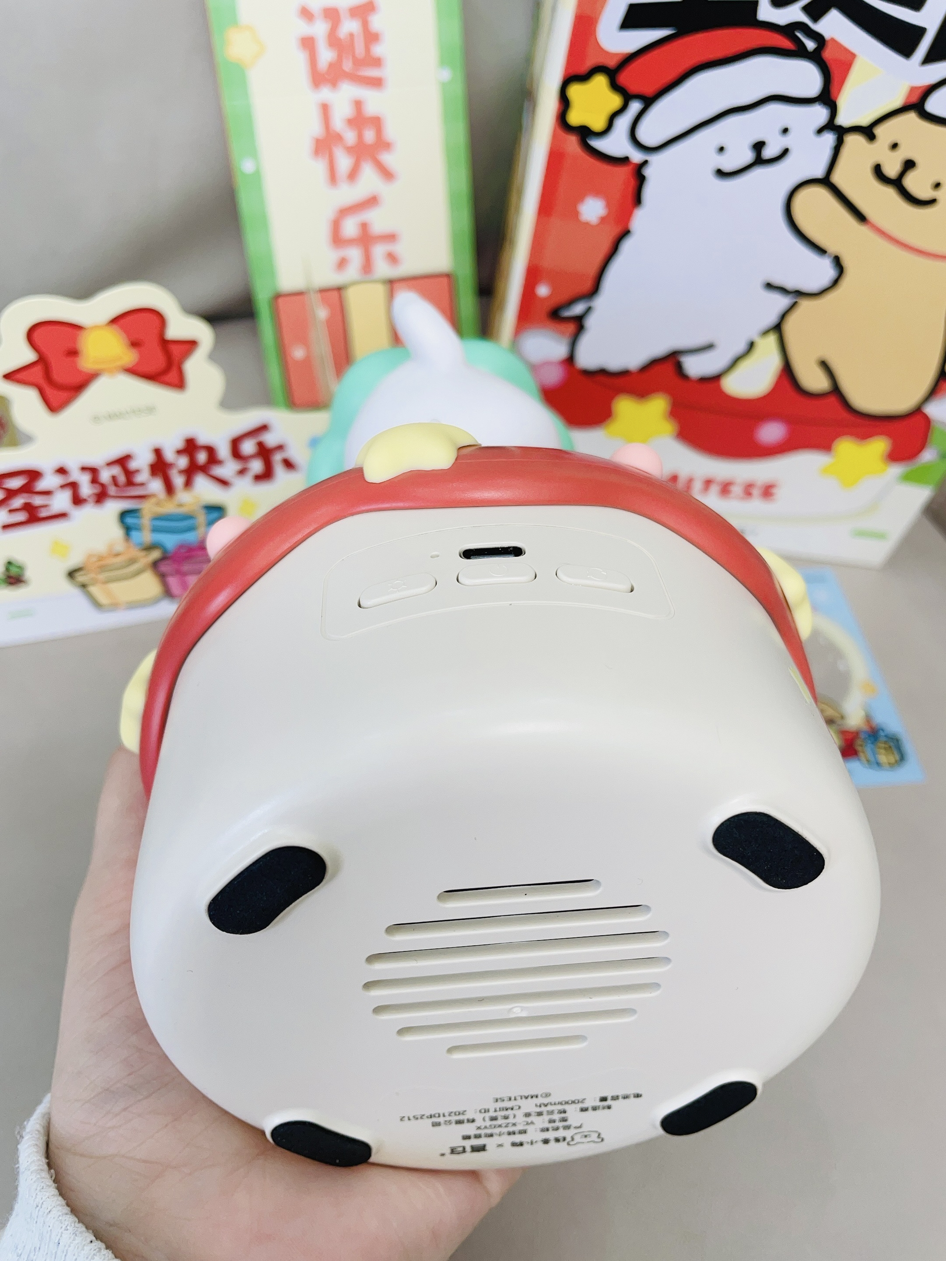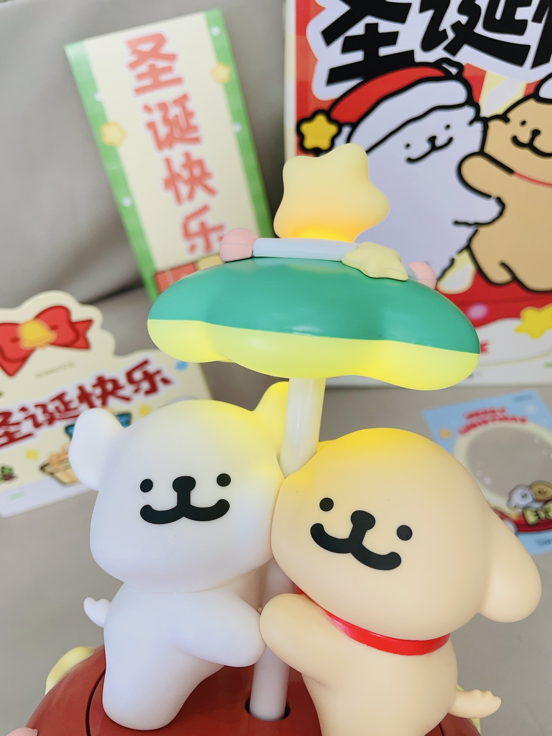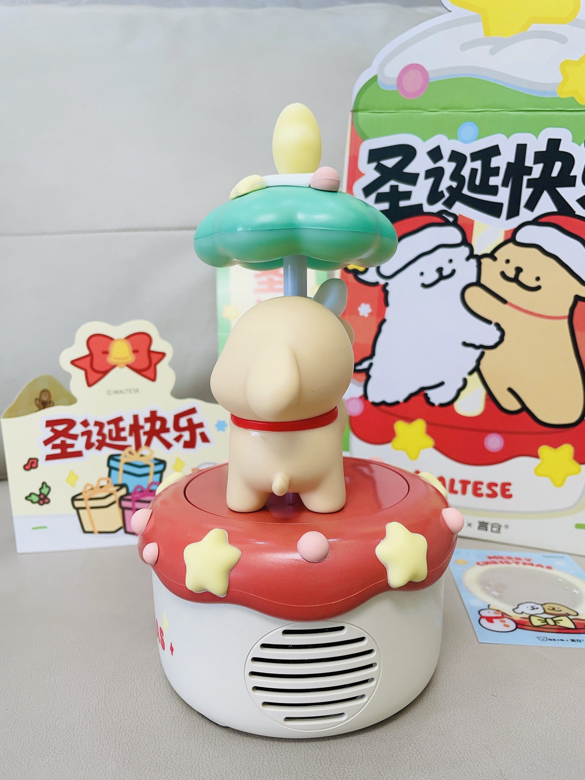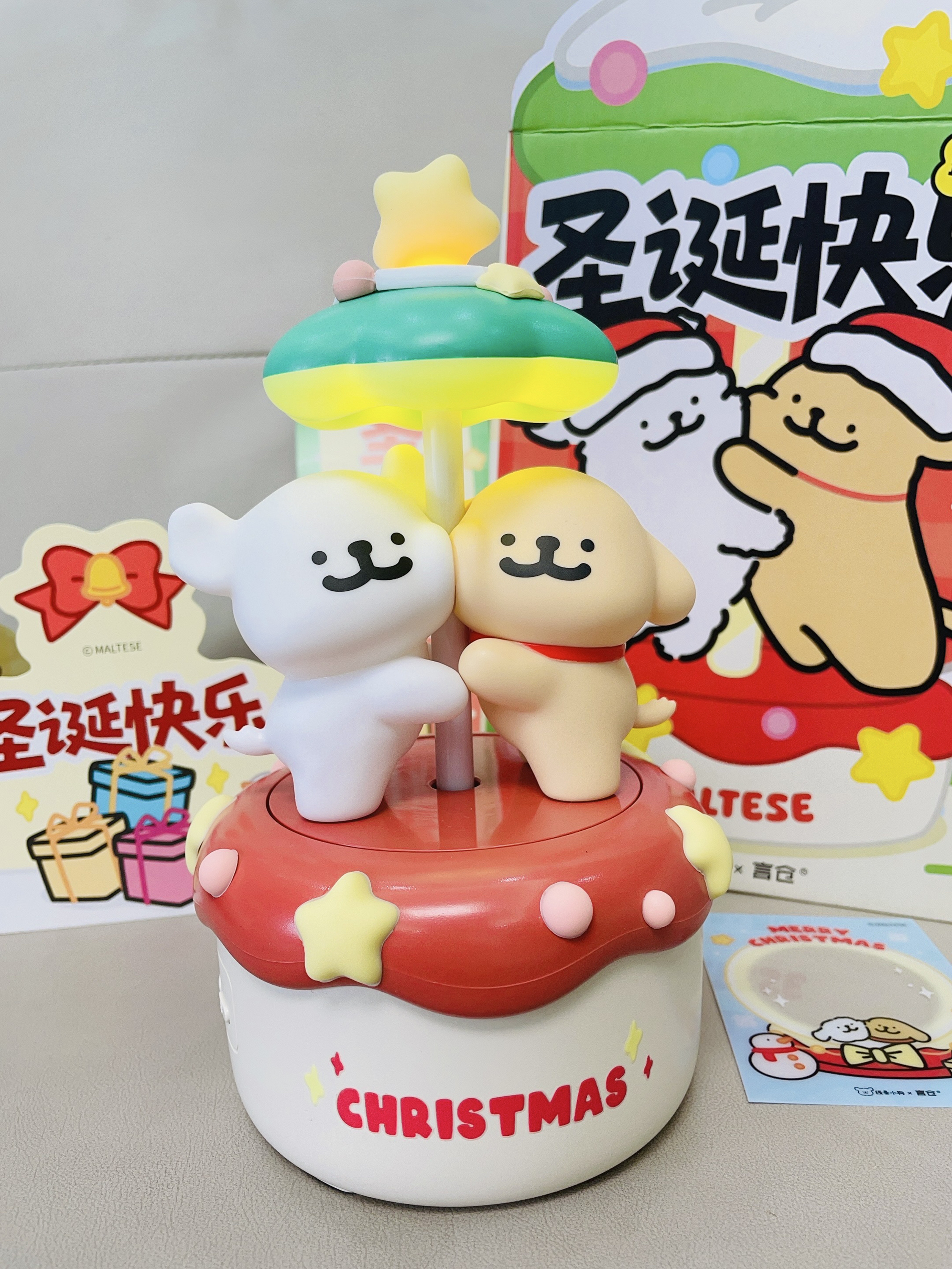 十二月啦又是年末的时候 还有半个月是一年一度的圣诞节 我给自己安排了新的音箱 言仓×线条小狗联名的旋转音箱 打开配色hin有圣诞氛围感 可可爱爱的 可以亮灯 晚上拿来当小夜灯我觉得不错 我试了一下连接蓝牙放音乐 音质hin不错 也可以当小摆件 礼盒包装精致 圣诞拿来送礼都可