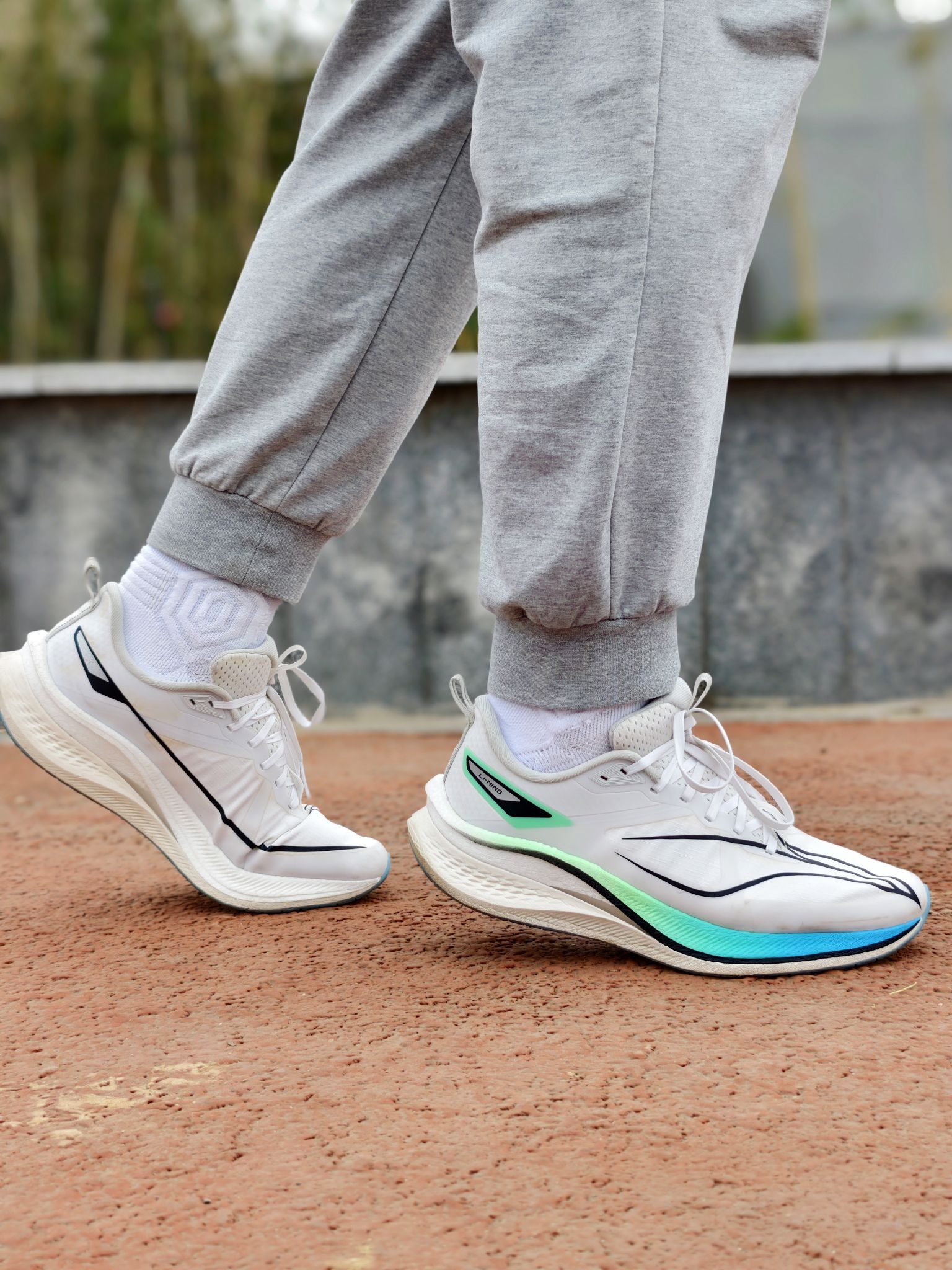 哈喽👋大家好,我是哈利❗ 今天我上脚的是李宁赤兔7Pro跑步鞋 鞋子采用低帮的鞋型,个人感觉这个流线型鞋身很有速度感,而且秋冬穿也不冻脚 中底的抗扭片让我在跑步过程中脚的稳定性很好 鞋子整体重量较轻,缓震配置是全掌李宁䨻科技泡棉,我上脚脚感软弹,在跑步时减震很好❤️🔥 个人感觉这个大底的抓地性能真的不错 有个需要注意的点是白色鞋面不太耐脏🤔