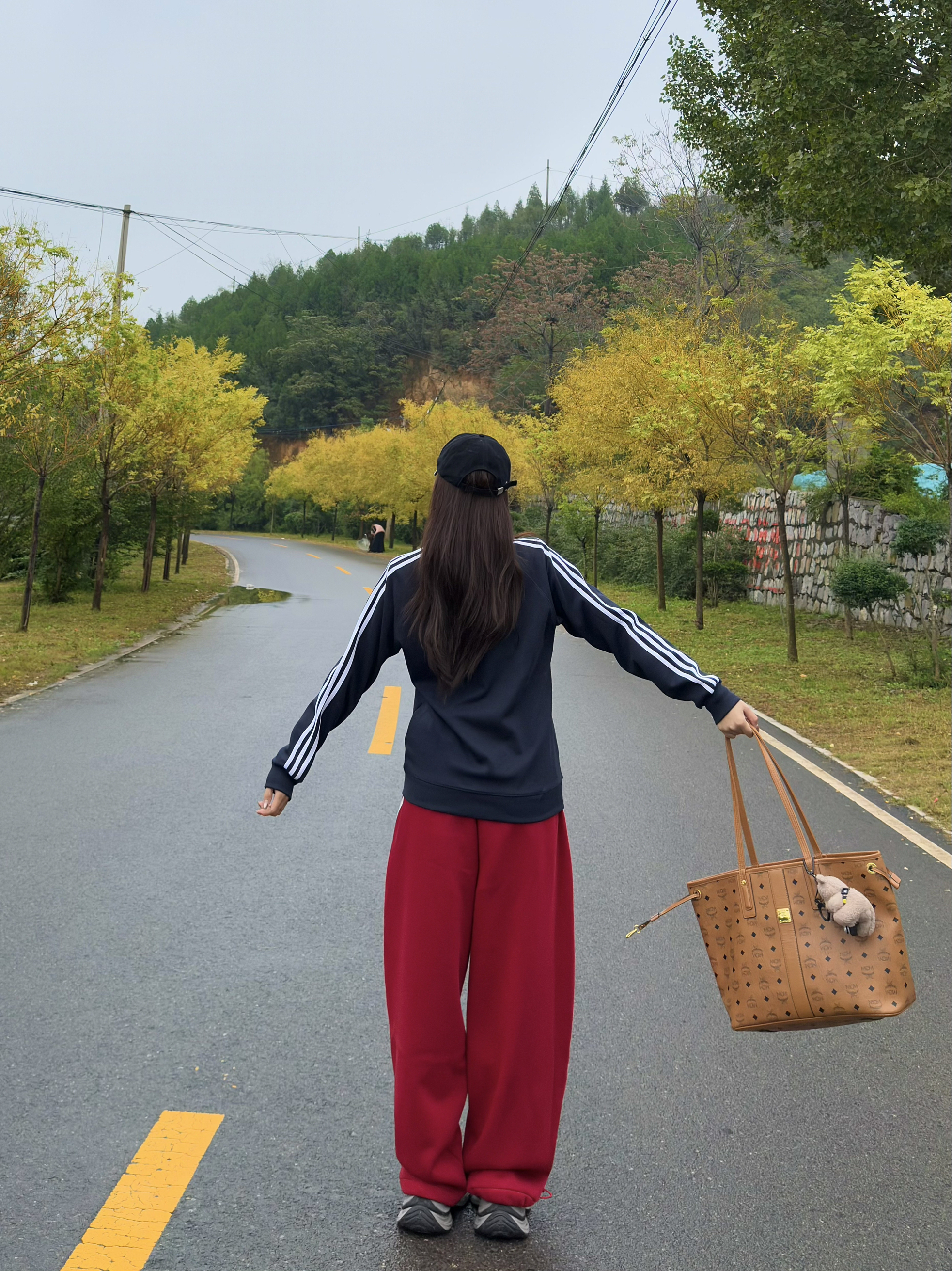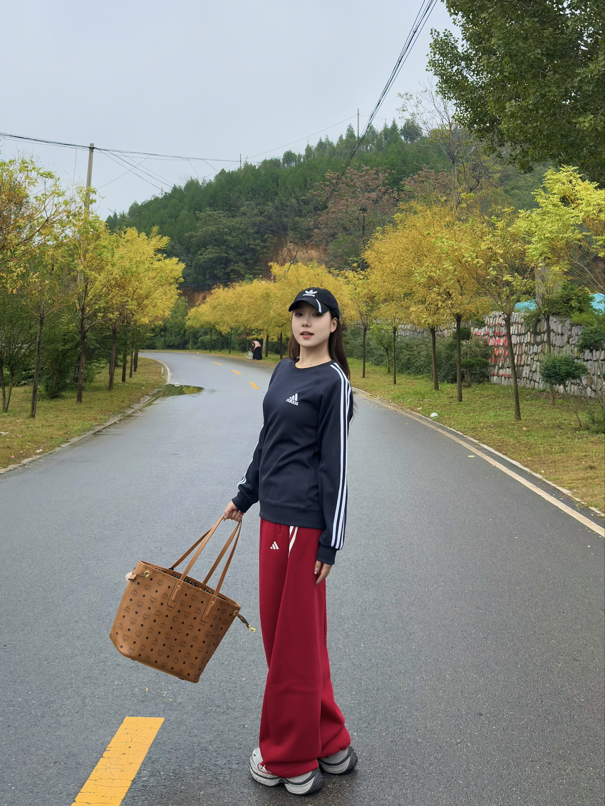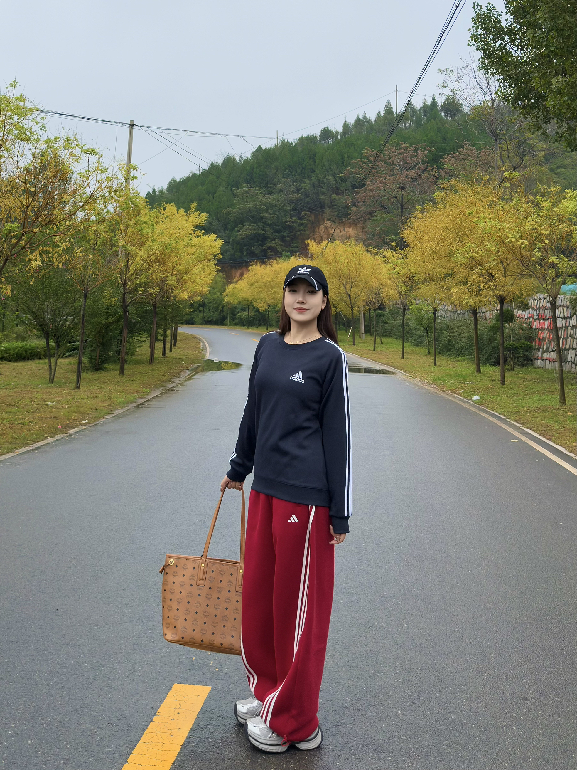 三叶草卫衣真的好搭!经典三道杠+小标设计,简约又有辨识度,面料软软的很亲肤,宽松版型藏肉还舒服~ 搭配酒红色卫裤,垂感绝了!裤型巨遮肉,梨形身材闭眼冲,三道杠和卫衣呼应上,整套运动感拉满🌬️ 再挎上棕色托特包,容量大到能装下野餐垫,实用性拉满💯 脚踩灰白运动鞋,舒服到想在郊野暴走一万步~