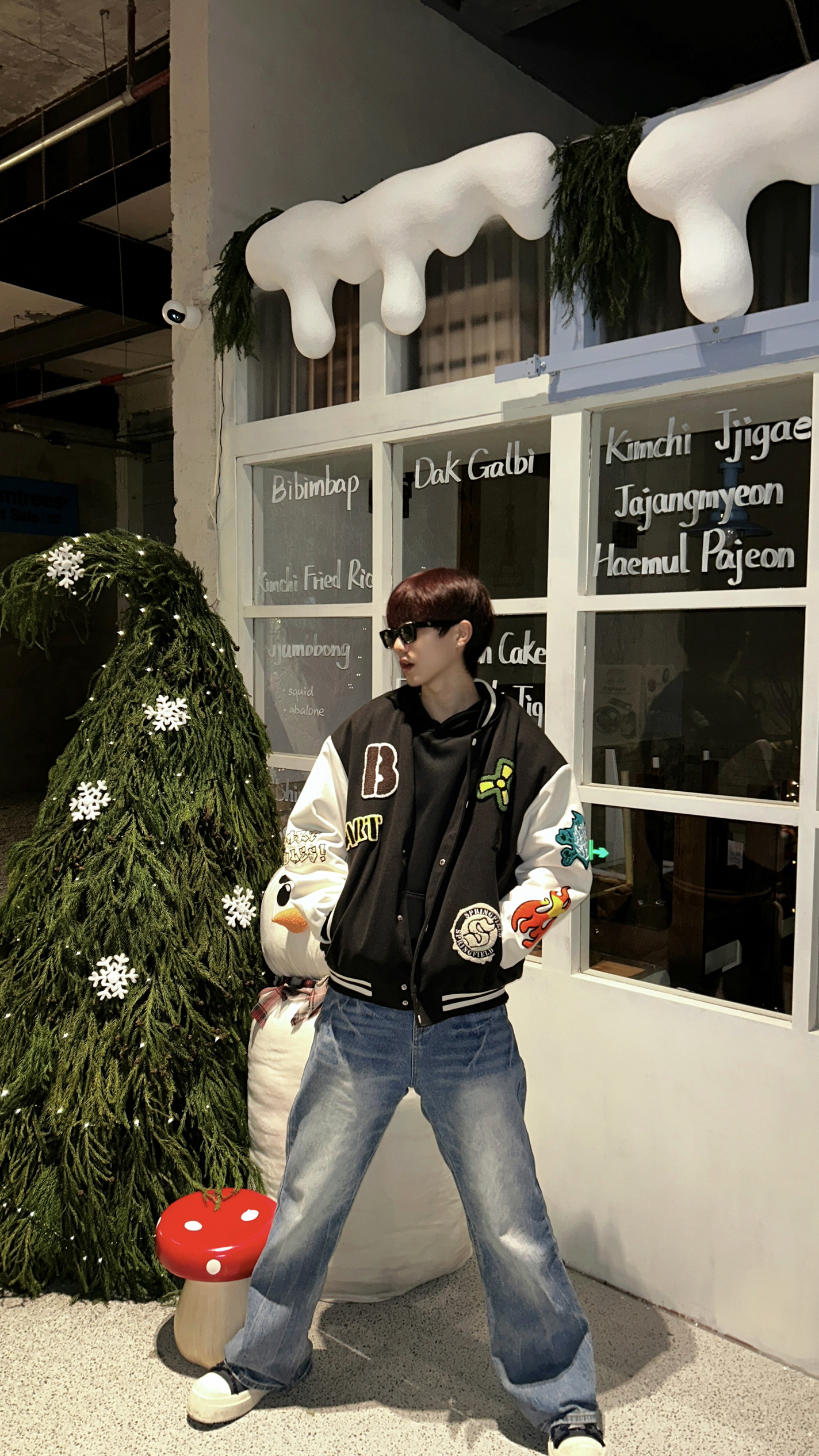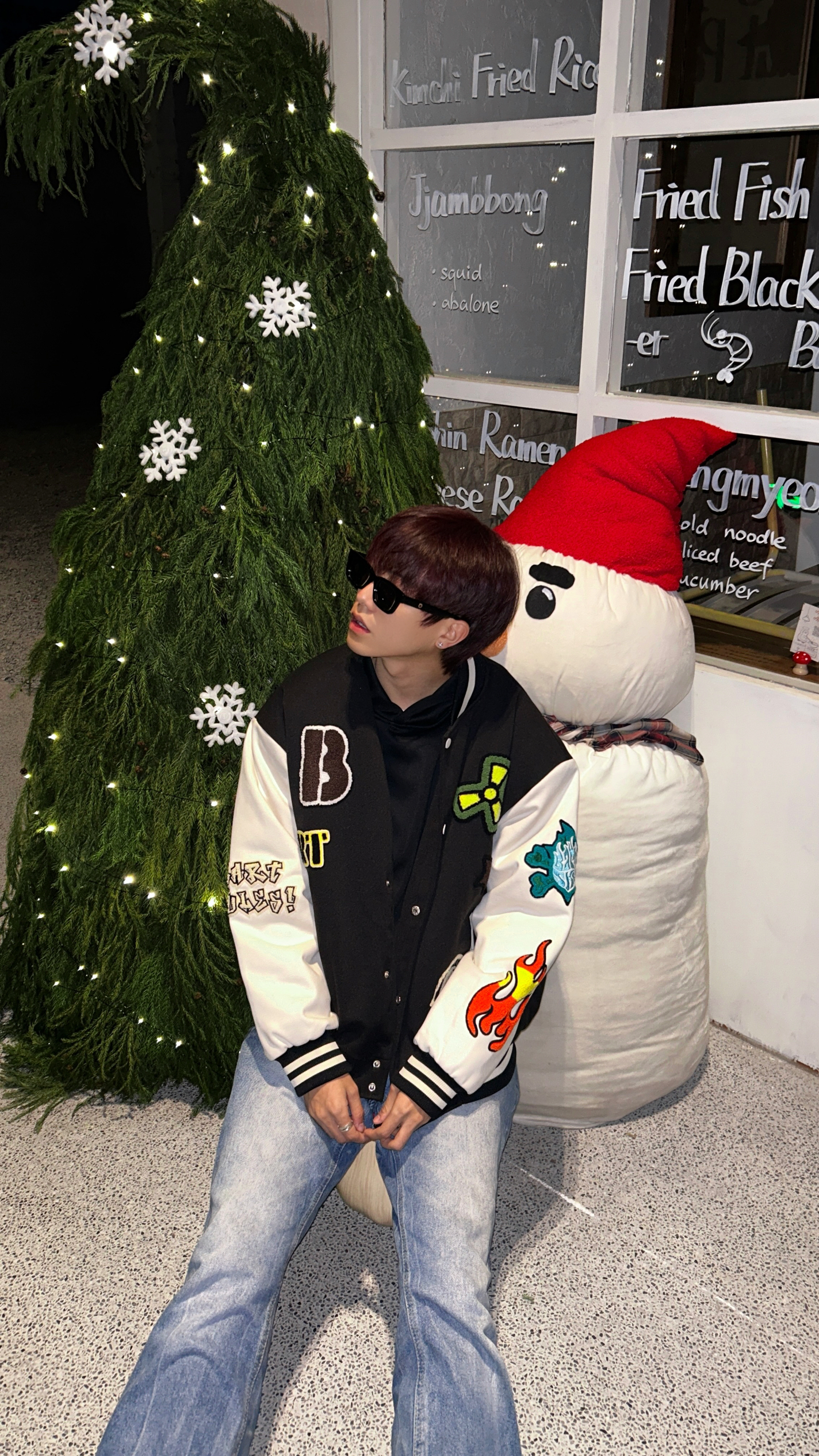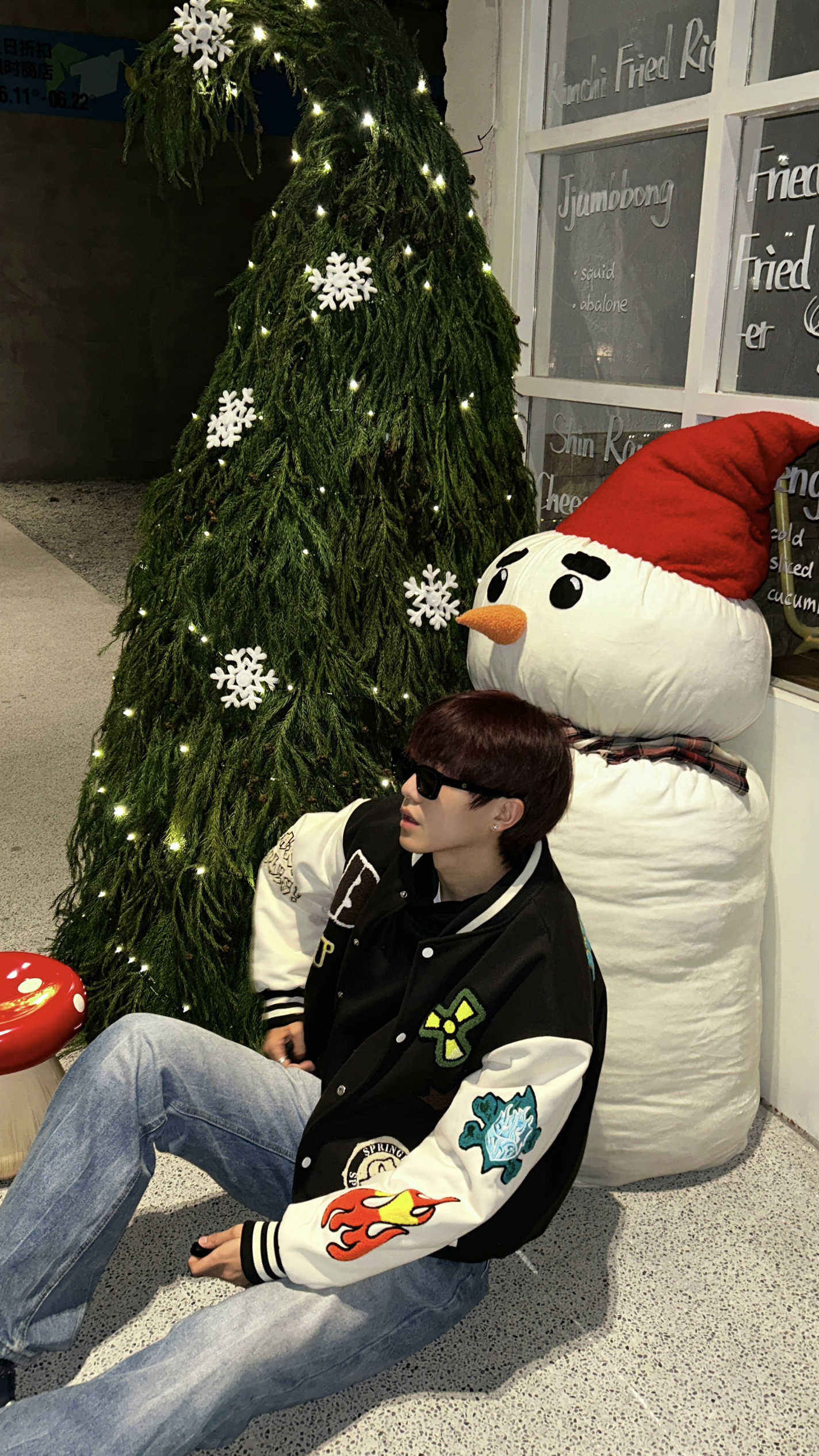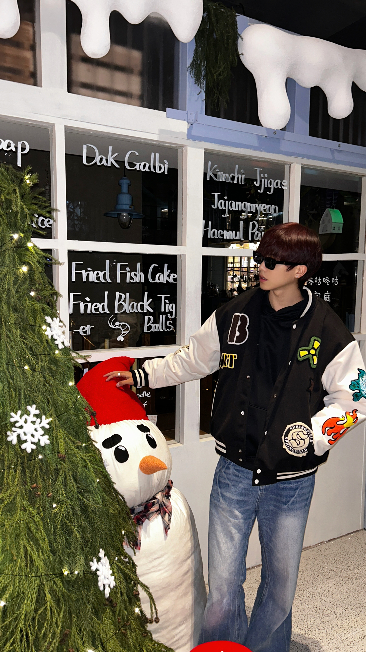 临近节日就喜欢整点节日氛围感 今天去好看的圣诞树和雪人布景打卡 穿了一件棒球棉服搭配蓝色牛仔裤 很有个性的一件衣服 有不少卡通元素和有趣的图案 穿上之后整个人都很有活力感 这次双旦氛围感穿出来~