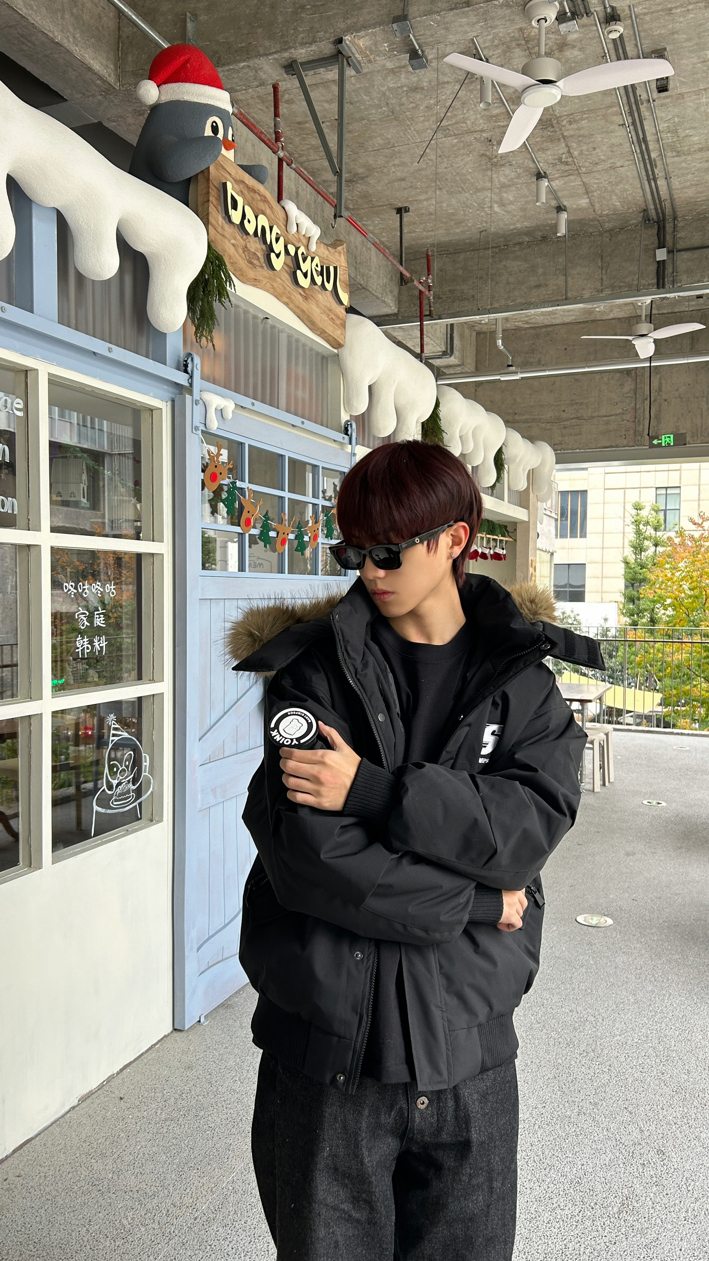时髦派克服我先穿为敬 真的很喜欢这种毛领派克服 有工装的帅气又很有松弛的氛围感 帽子上的毛领毛茸茸的还很暖 纯黑色因为有了毛领更有层次 随手一搭配就都很好看 这个冬天摆脱路人感帅出型