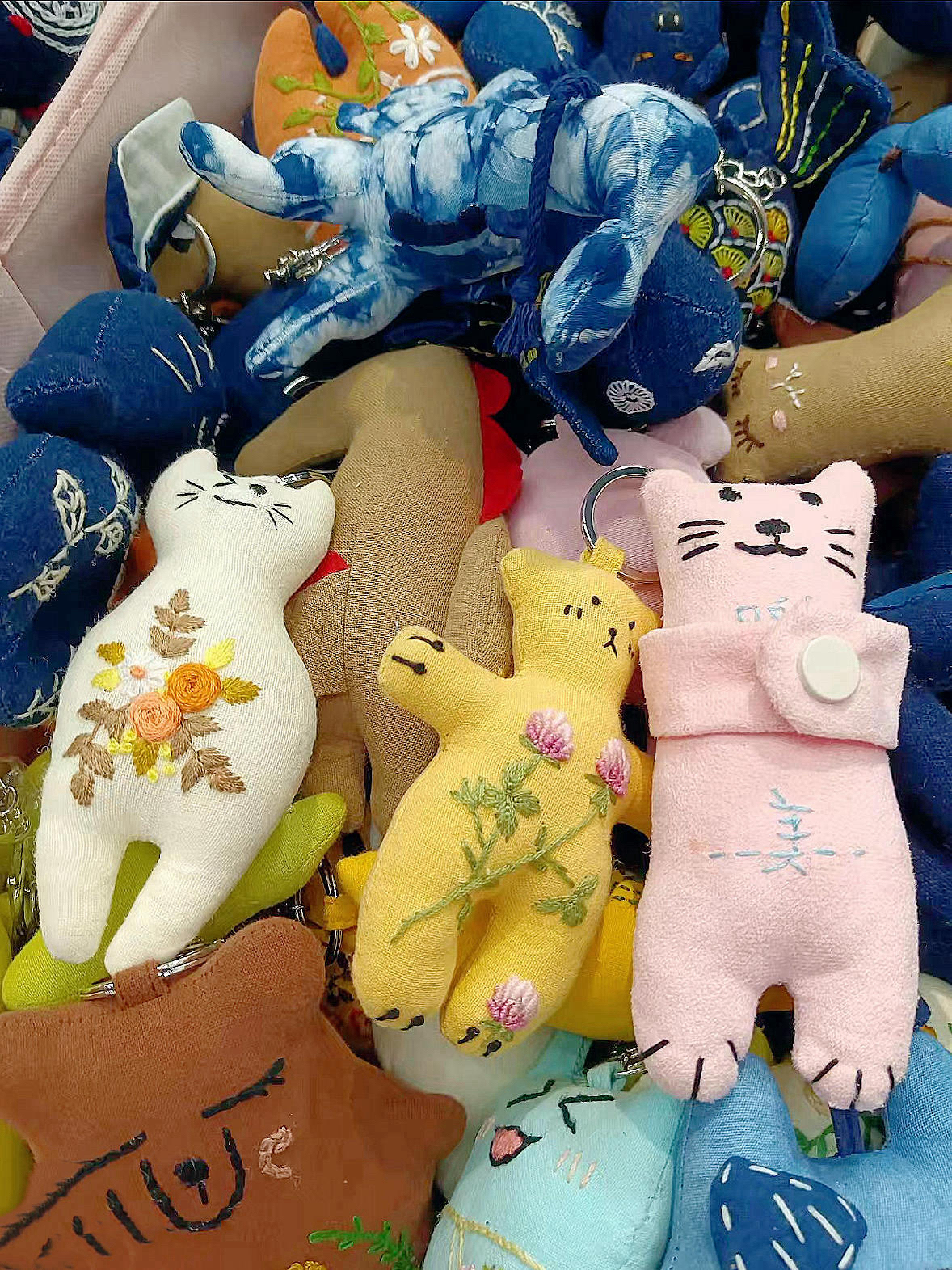 逛店撞见这排货架时,脚步直接钉住了——浅灰绵羊软得像刚晒好的被子,粉熊挤成一团像裹了层棉花糖,手作布偶猫的刺绣小花还带着温温的质感。 平时总被生活推着赶,可摸到这些软乎乎的瞬间,突然懂了:日子里的甜,就是撞见一堆毛茸茸时,想把它们全抱回家的冲动,连空气都裹着暖乎乎的松弛。