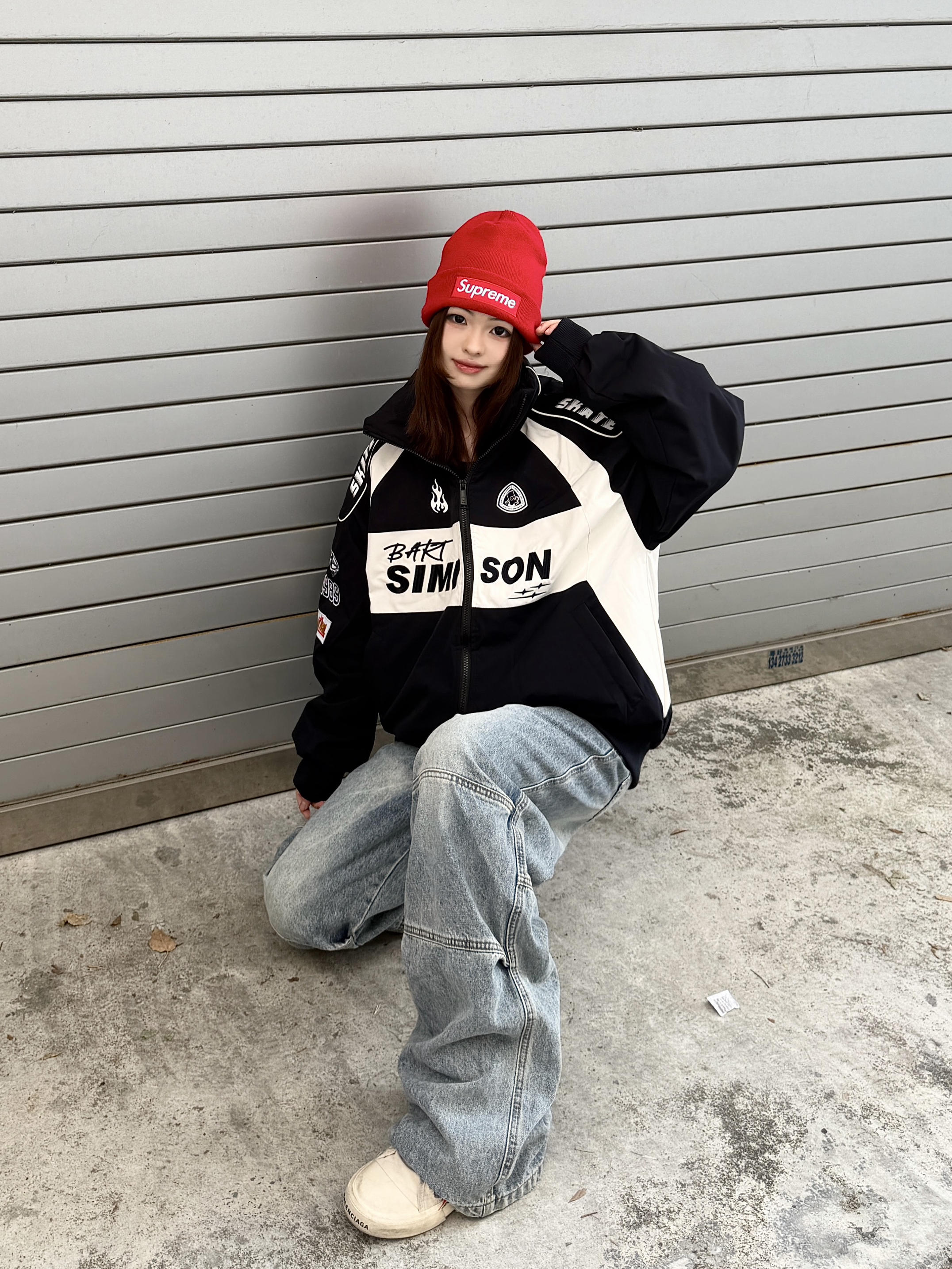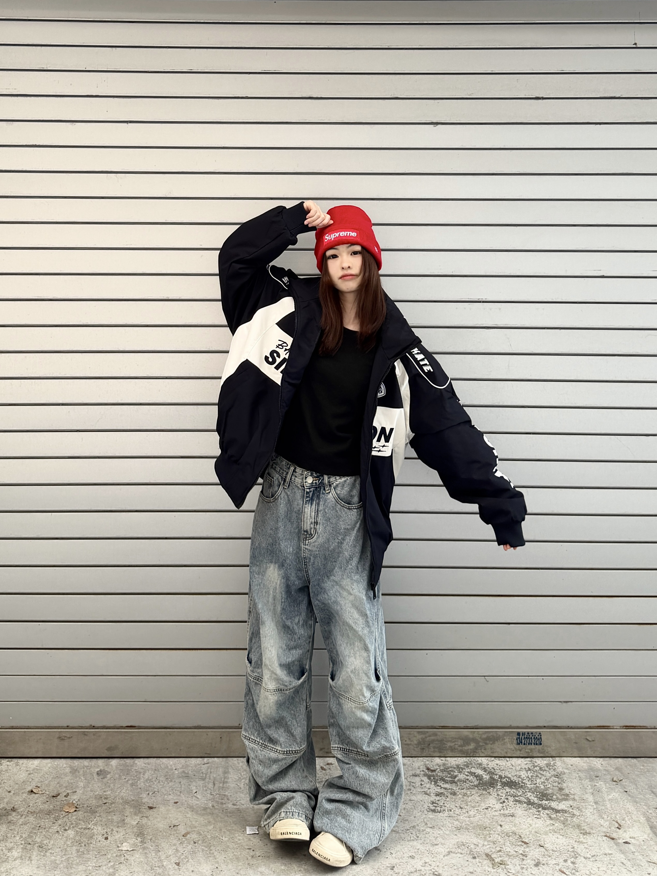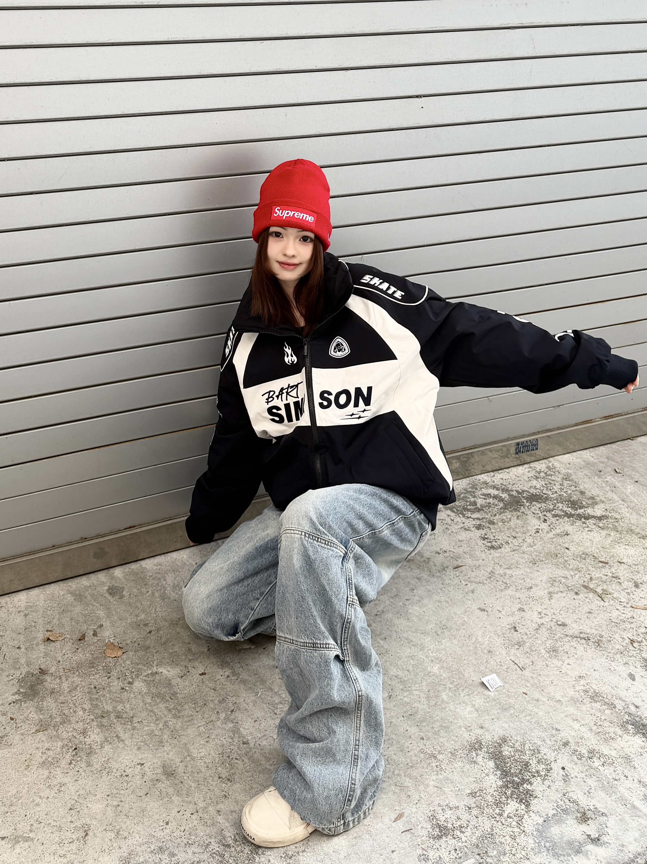 冬天别再黑白灰啦 是时候给秋冬一点颜色看看🍂 藏蓝色赛车羽绒服🏎️➕红色冷帽🧶➕牛仔裤👖 有种不强凹造型的松弛感~ 我最近的心头好先锋感赛车元素外套🧥 又甜又酷!!今天的人设是帅气赛车手🚩 街头citywalk的契合度max!!