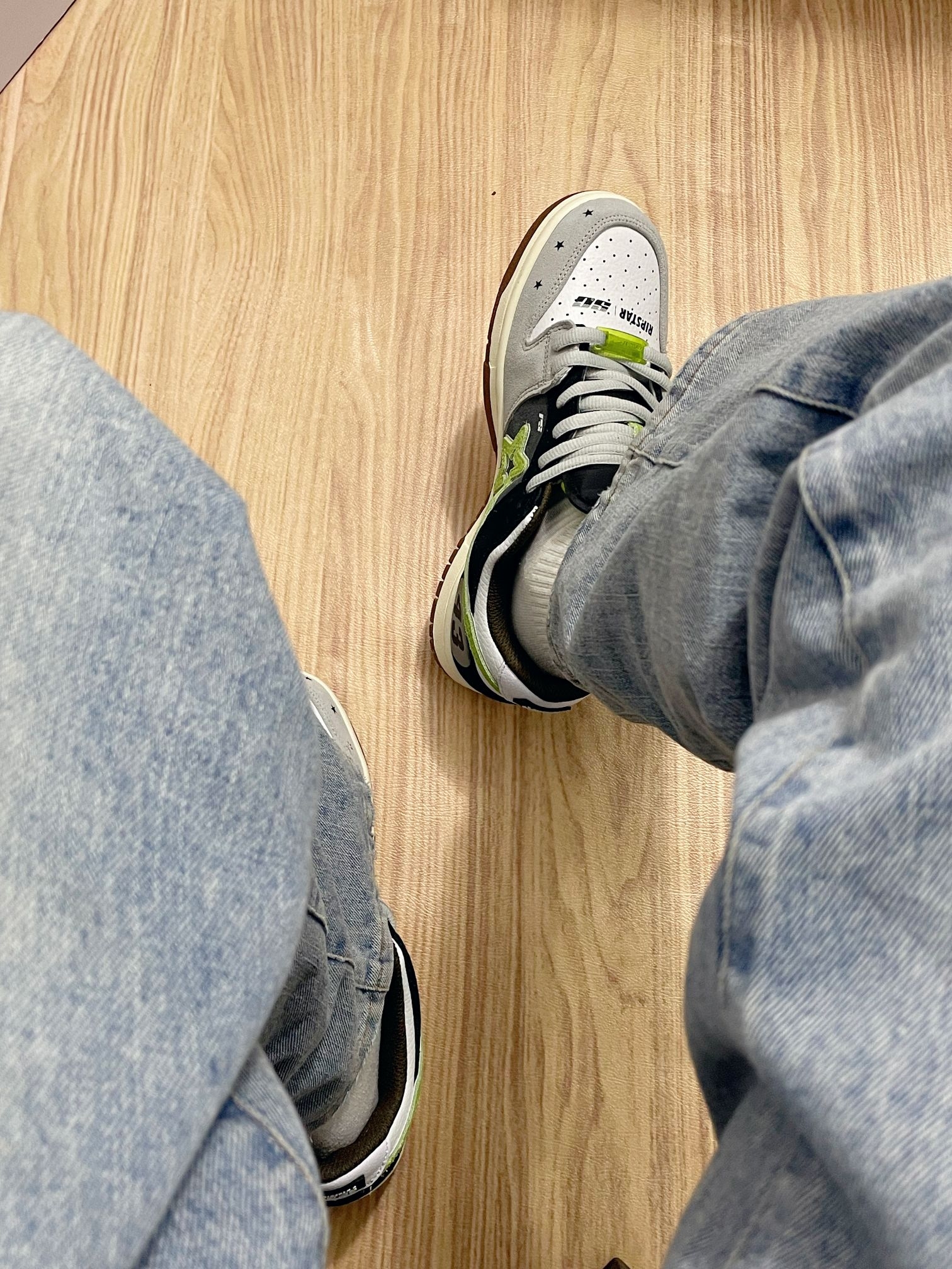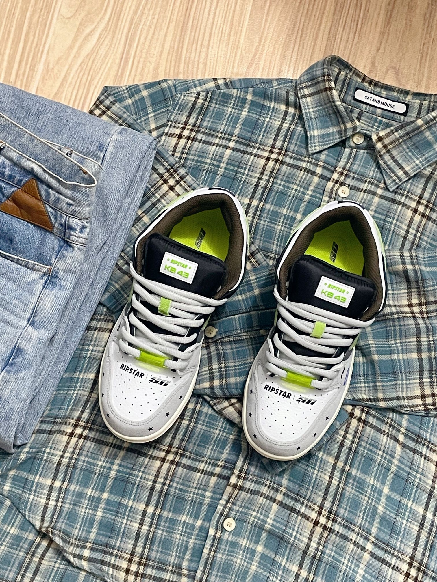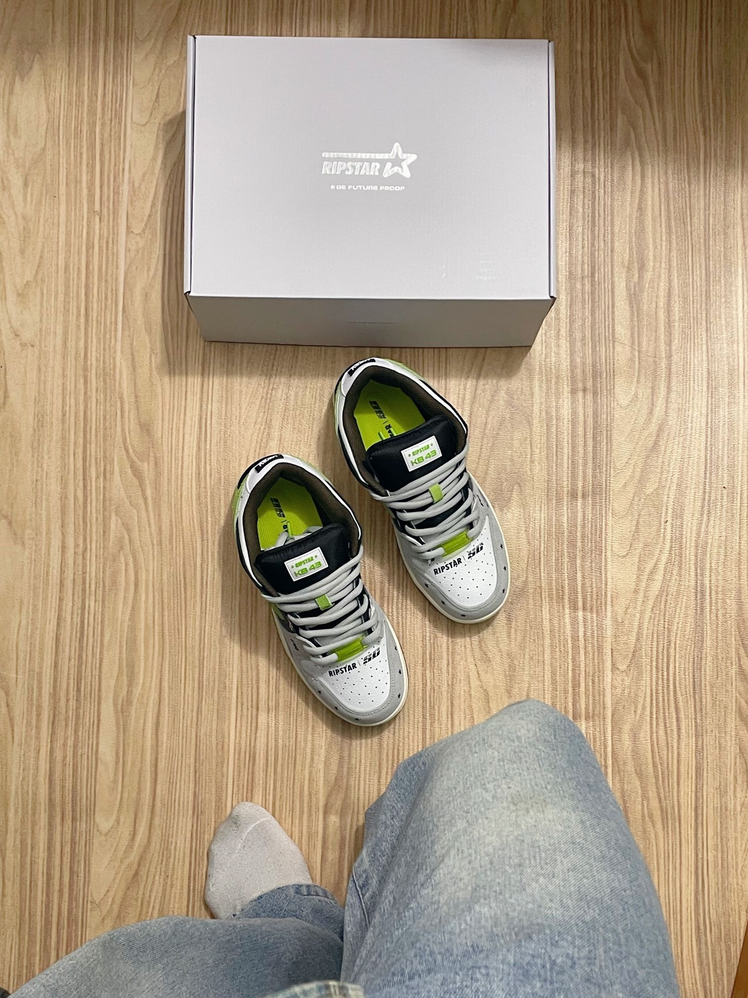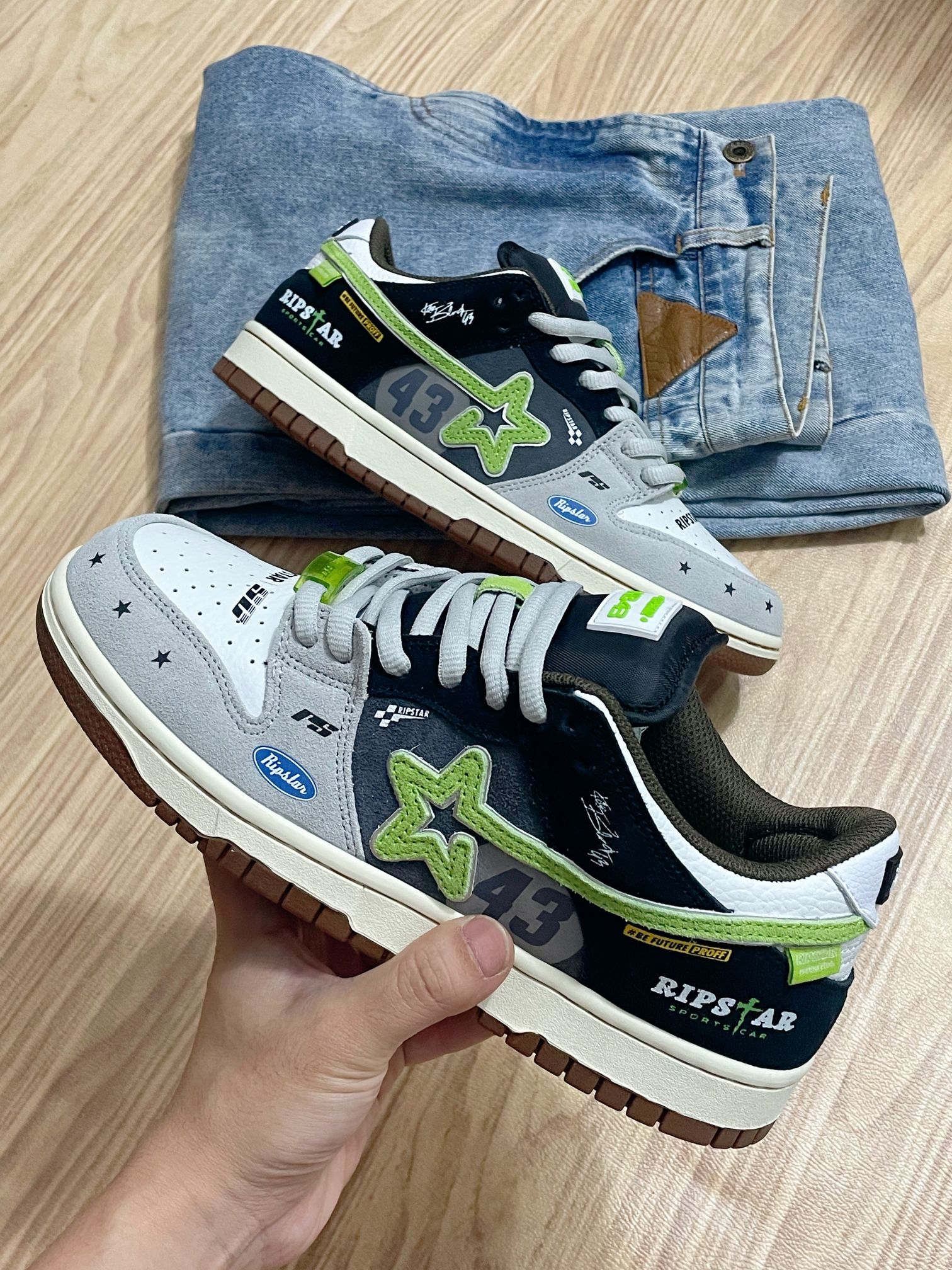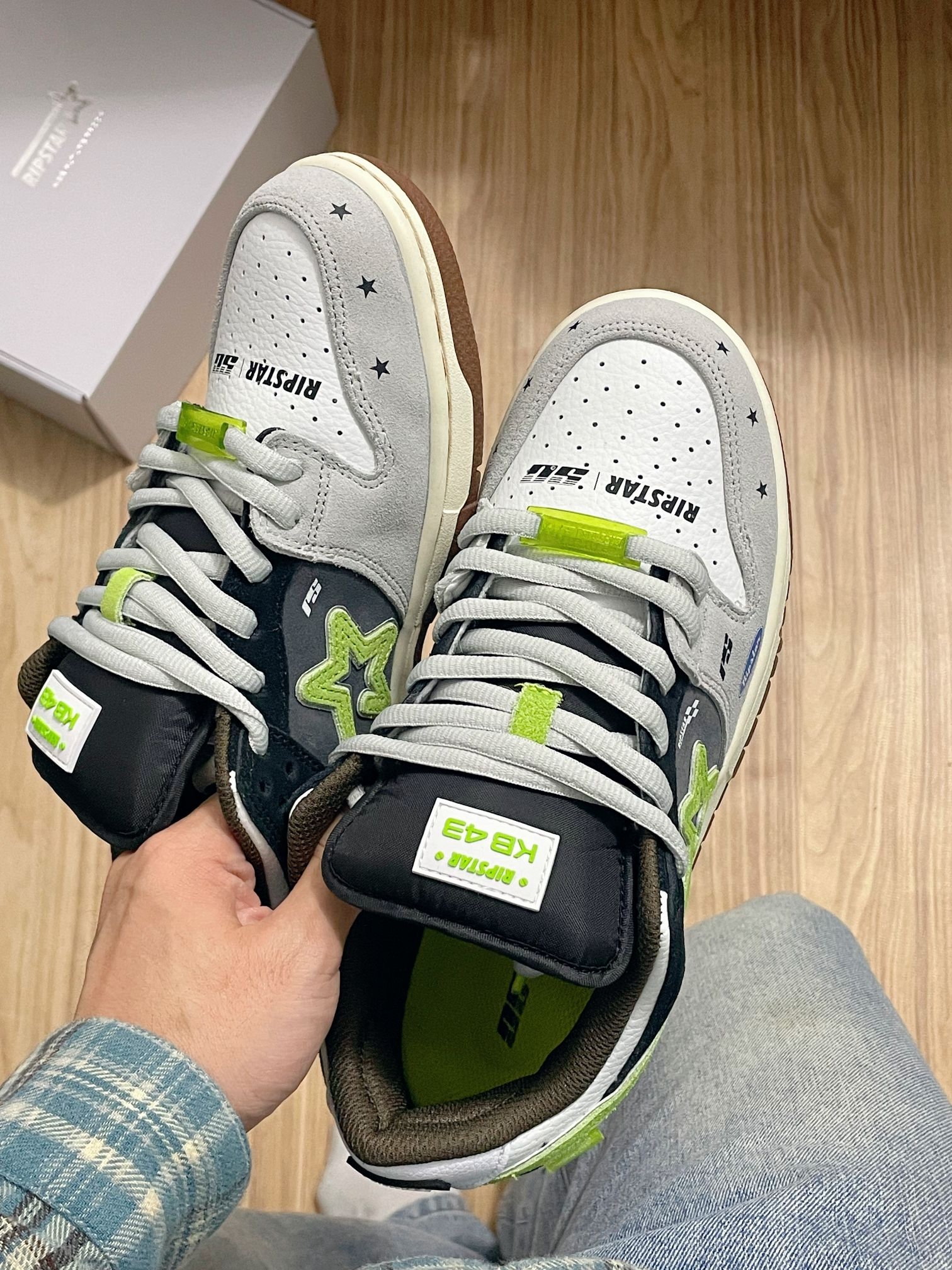 看见这双#RIPSTAR KB43的灰黑绿配色,突然想起小时候看赛车动画片的日子! 鞋底那点古铜色撞色,像极了赛车的轮毂。低帮设计鞋底也很软,走路上班20分钟脚也不会疼。而且灰黑绿配色低调不扎眼,搭西装裤不违和,配休闲裤又很潮!