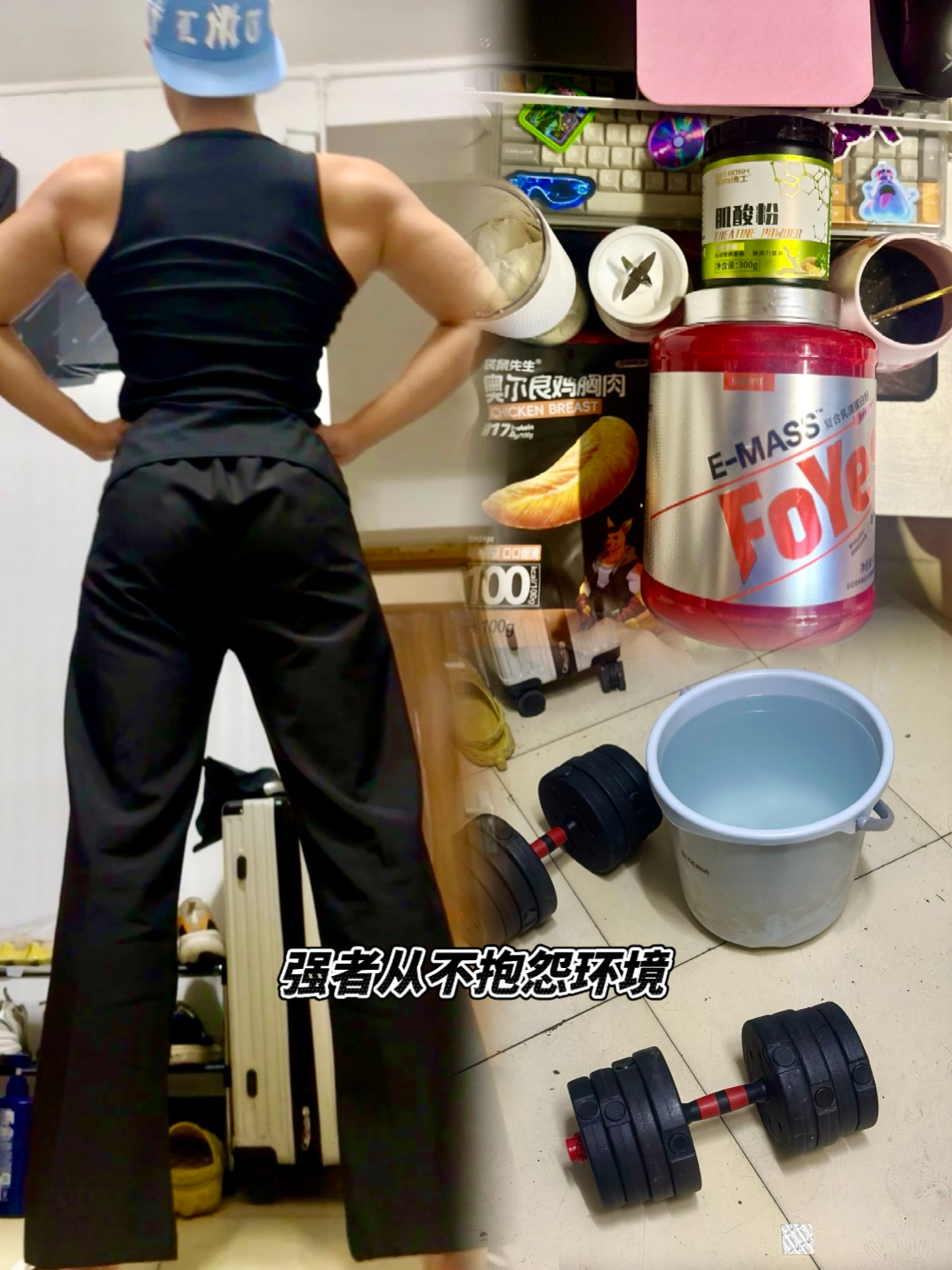 方寸寝室,一对哑铃就是我的山河⛰️ 今天不贪多,手、胸、背、腿... 各来几组浅尝辄止,不求力竭,只求唤醒沉睡的肌肉💪 练完冲一杯蛋白粉,看着粉末在温水里化开,咕咚下肚,是给肌肉最好的犒赏[坏笑_blue][坏笑_blue] 在寝室锻炼的好处就是没有健身房的喧嚣[强_blue] 只有哑铃碰撞地板的轻响,和蛋白补给的满足感 #肌肉攻略中