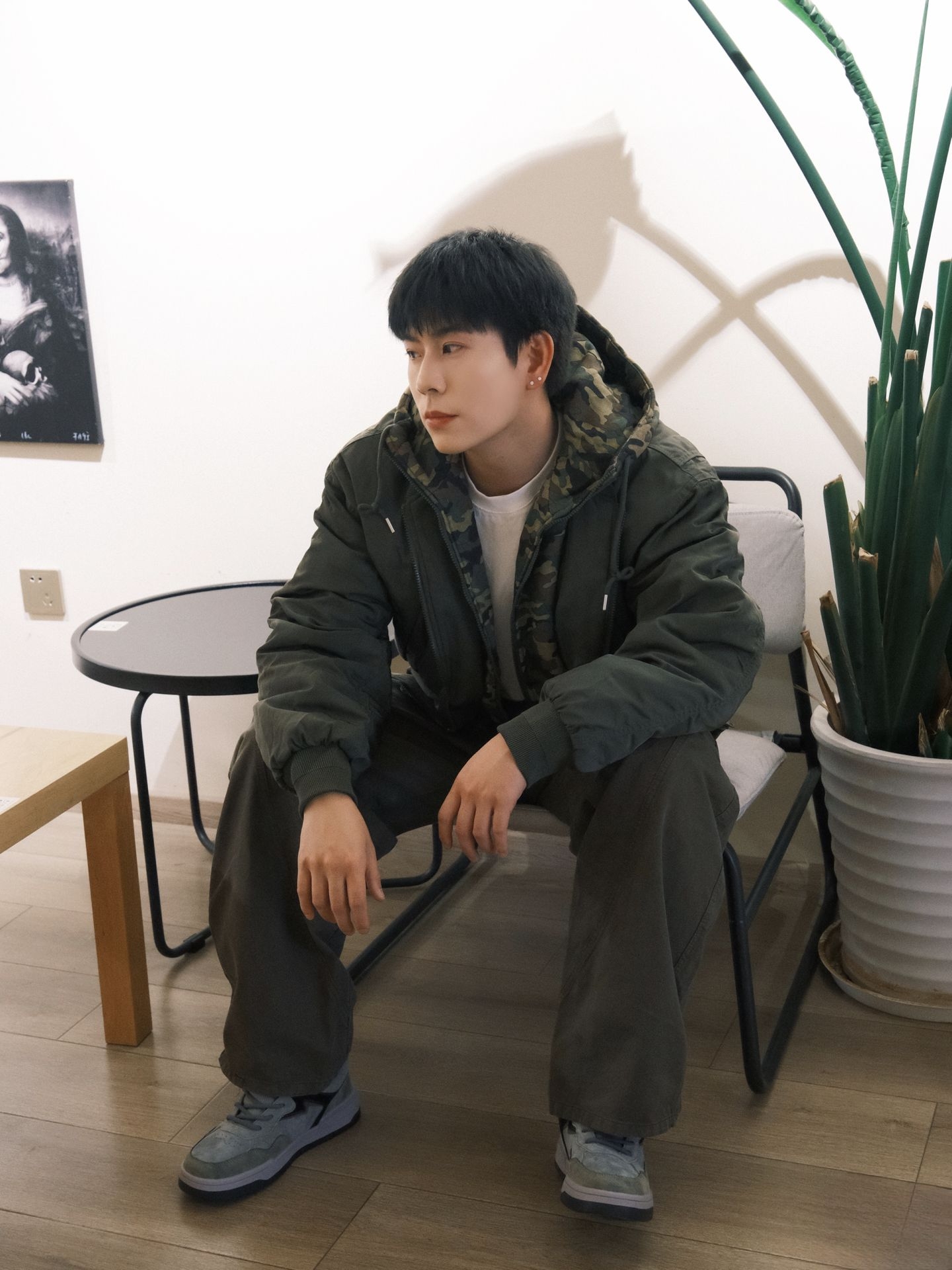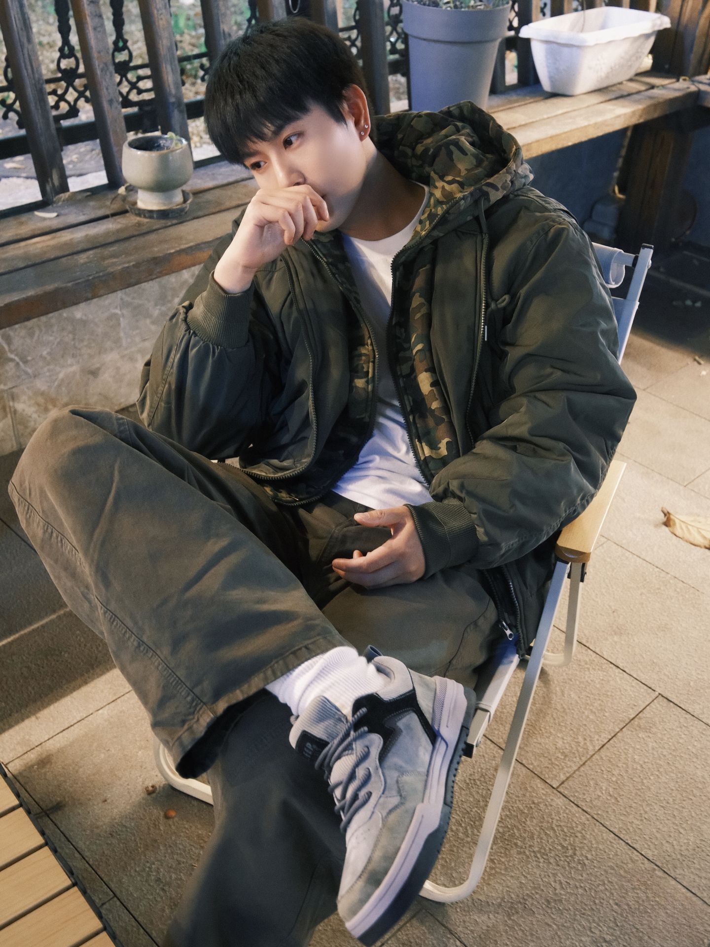 今天的穿搭主打的就是舒服又顺眼。 军绿色棉服是两面穿的,内里迷彩刚好和裤子色 调搭成同色系,松弛感直接拉满。重点是脚上这双 鞋!灰调拼色+麂皮质感,星星标细节又痞又耐看, 配阔腿裤刚好露出鞋型,走路上都忍不住多瞅两脚~ 这种低饱和色系的搭配,不管是咖啡馆闲坐还是出 门晃悠,都不用费脑子想怎么搭,随便一套就有那 种“不经意的好看”。