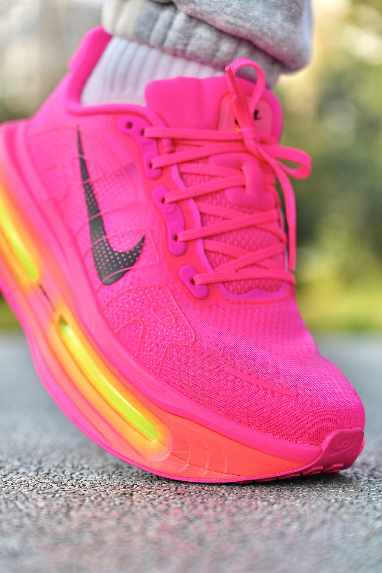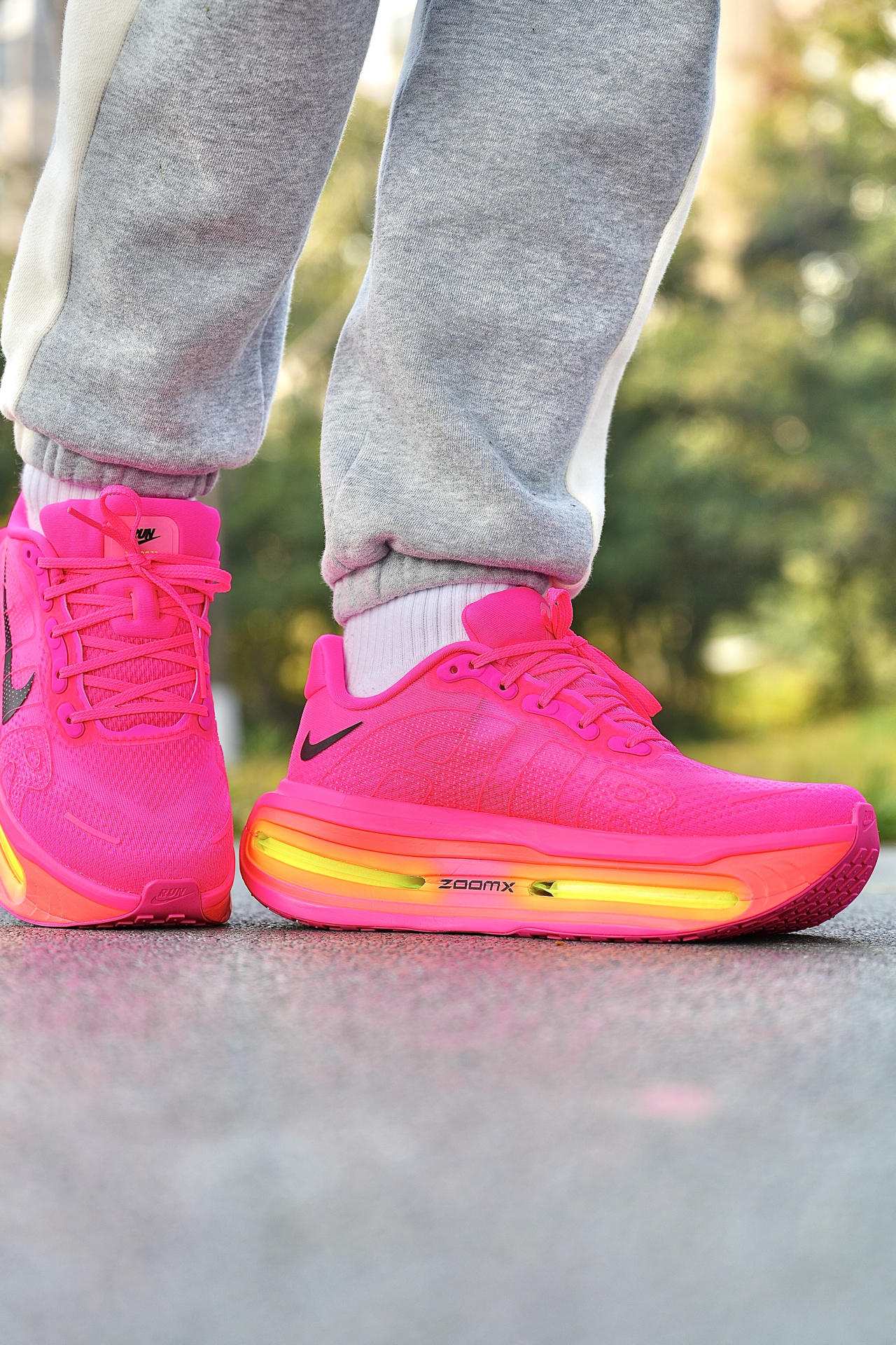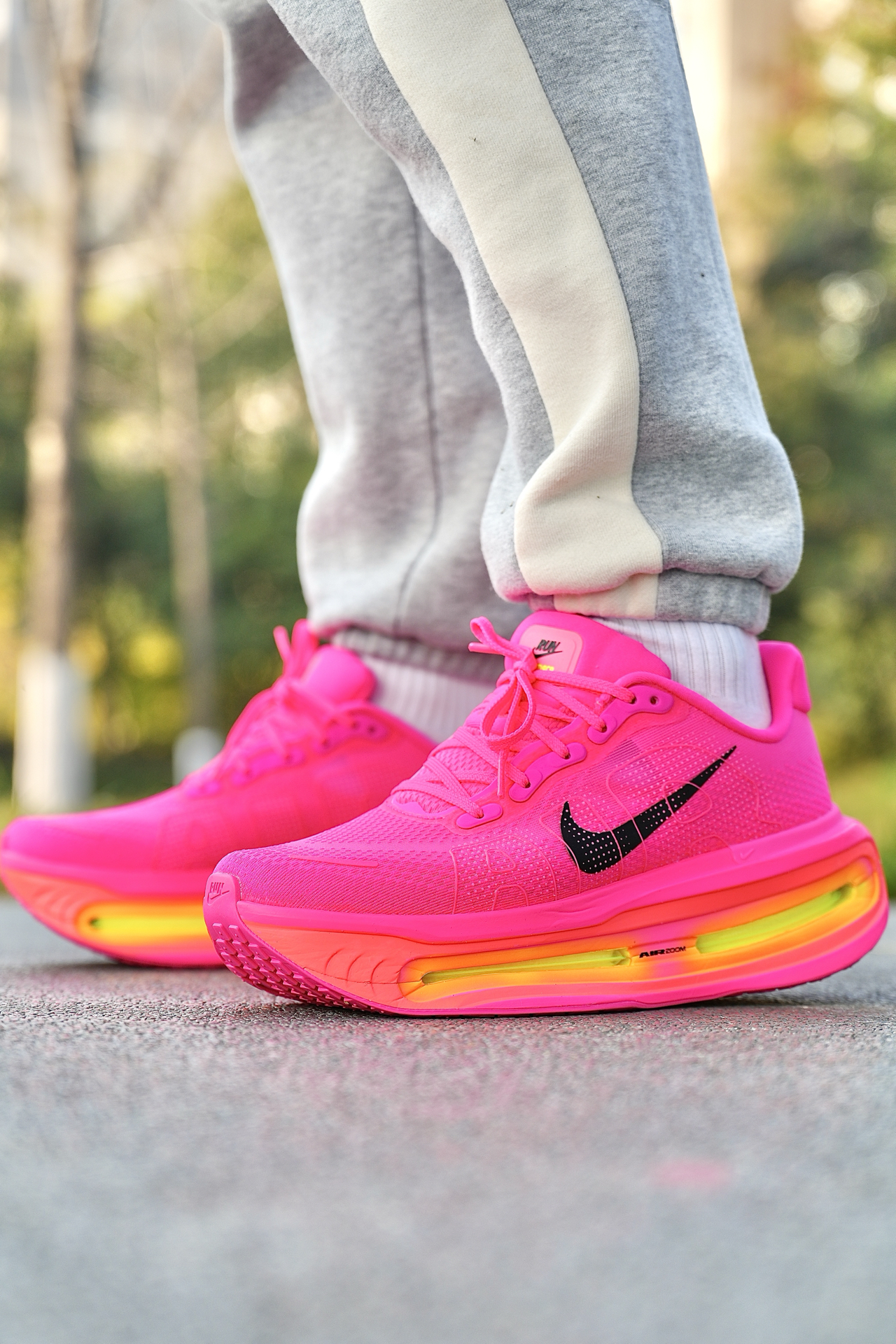 今天分享的顶缓跑步鞋为Nike Vomero Premium,鞋子外观采用厚底造型,整体以玫粉色为主色调➕荧黄色中底点缀,虽然配色一般人驾驭不了,但足够显眼❗️ 配置简单说:全掌ZoomX泡绵+前后掌Air Zoom气垫,工程网布鞋面+华夫橡胶大底 我上脚穿下来,这5厘米厚的中底脚感确实好,又软又弹的,缓震拉满了,但缺点得说实话:重量偏沉,跑久了脚腕有点坠;足弓支撑薄弱,低足弓跑长距离会酸 ...