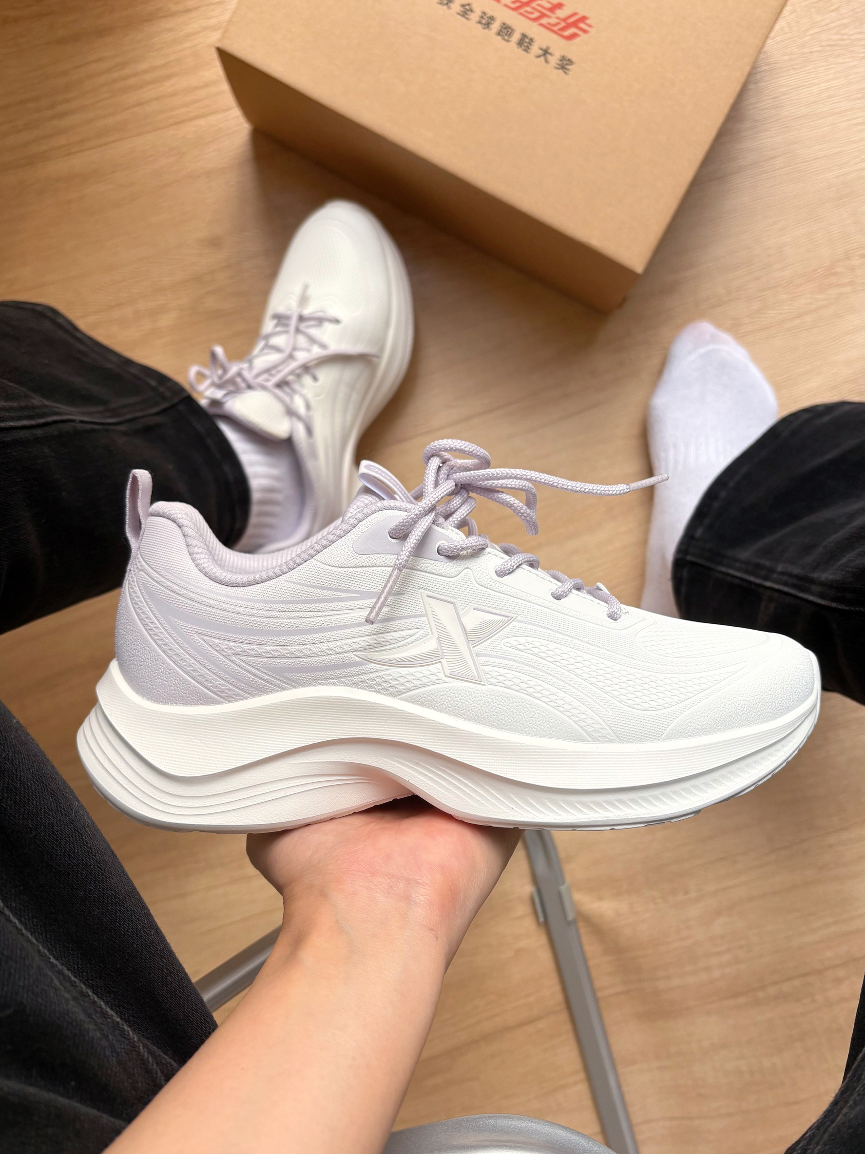 日常出门真的离不开这双特步! 淡紫拼白超耐看,随便套个裤子就很出片😍 鞋底软到像踩棉花,不管是通勤赶车还是周末遛弯,穿它都舒服又自在~