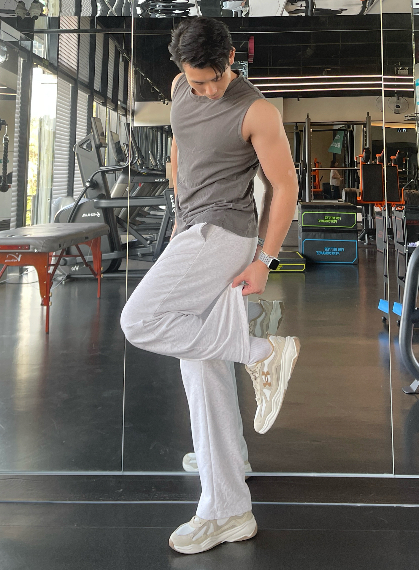 今天上脚安德玛的训练鞋 这是第一次穿这双鞋 给我的总体感觉就是舒适柔软 鞋底也是比较柔软耐折 用来做一些上肢的训练很合适 深蹲硬拉就不是很推荐了 身高180|体重76|鞋码43 👕:运动背心 👖:纯棉长裤 👟:安德玛 ASPIPE #交出你的鞋靴链接 #安德玛UnderArmour #我的城市这么穿 #被这双鞋帅到 #安德玛运动鞋