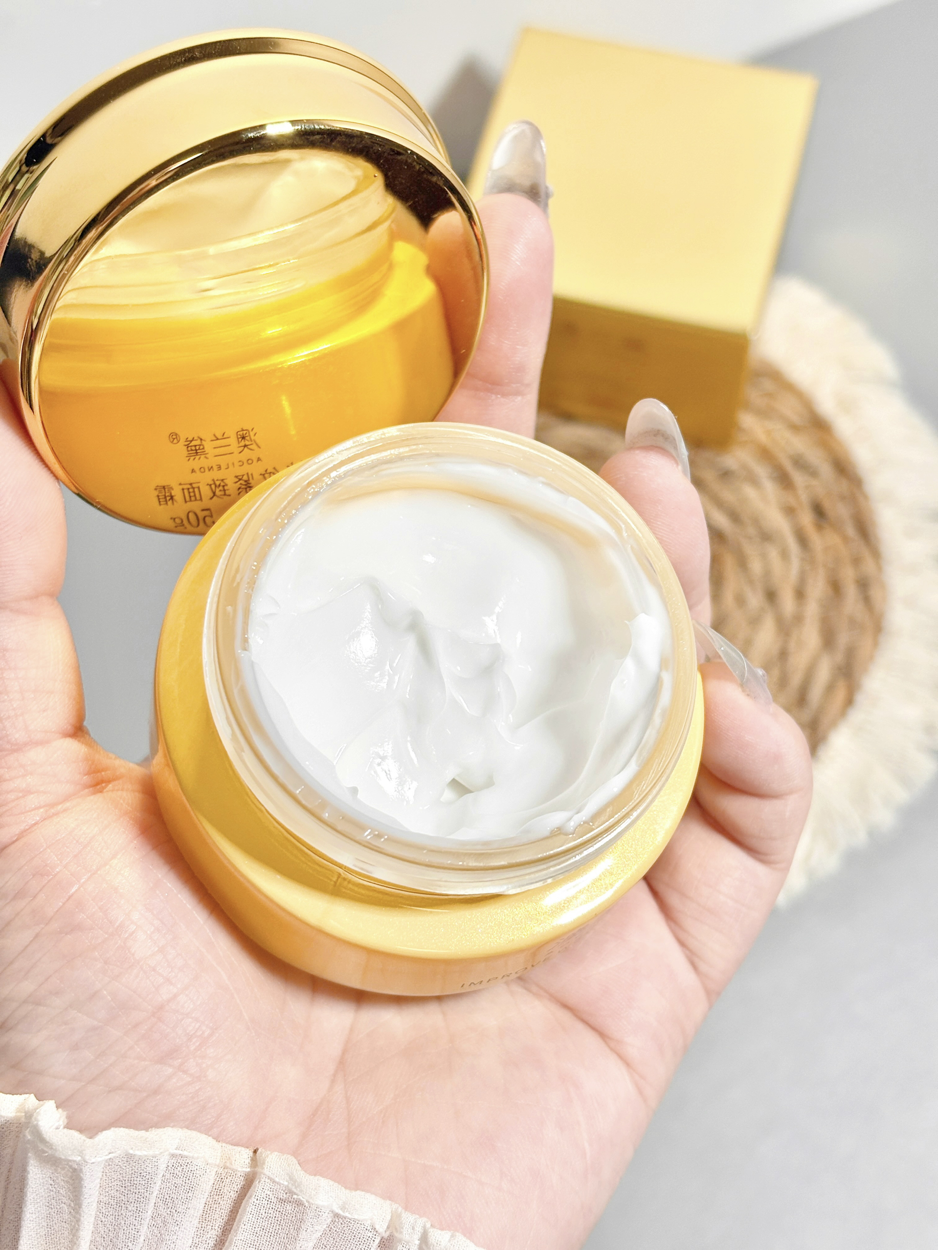 冬天皮肤敏感干燥实在是难受 试了澳兰黛这个补水面霜还挺不错 金色的包装 质地hin细腻丝滑 上脸冰冰凉凉的 吸收也快 清爽不黏腻 敏感肌用着放心 感觉脸蛋一整个润润 摸着也滑溜 这个面霜孕妈妈也可以用哦~