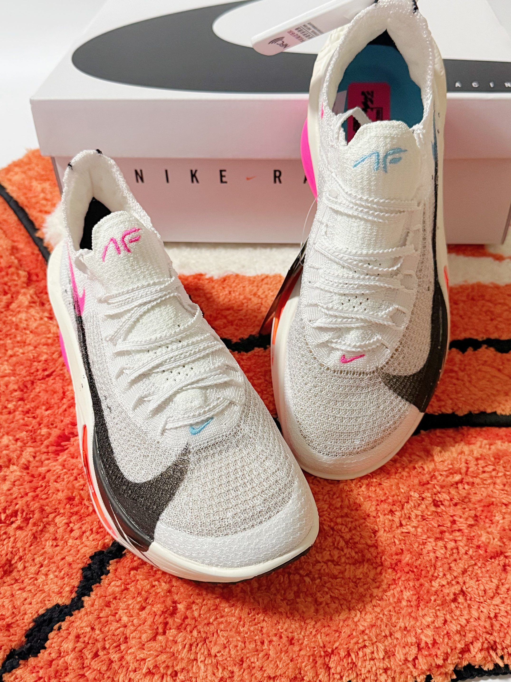AlaphaFly3 见过的挺多 但是能让我今年提起兴趣的 好像也就这一双的——“上马限定配色” 这次的设计将 白色 粉色 黑色融合在一起 色彩撞击感真的感觉看着就挺舒服 尺码因为冬季了 如果需要冬季户外跑的话 我是考虑到可以穿一个稍微有厚度的袜子 所以选尺码的时候 大了半码 整体上脚大小也还是蛮合适的 足部空间会多了一丢丢  但是这双AlaphaFly3的颜值 这次的确是设计到我的...