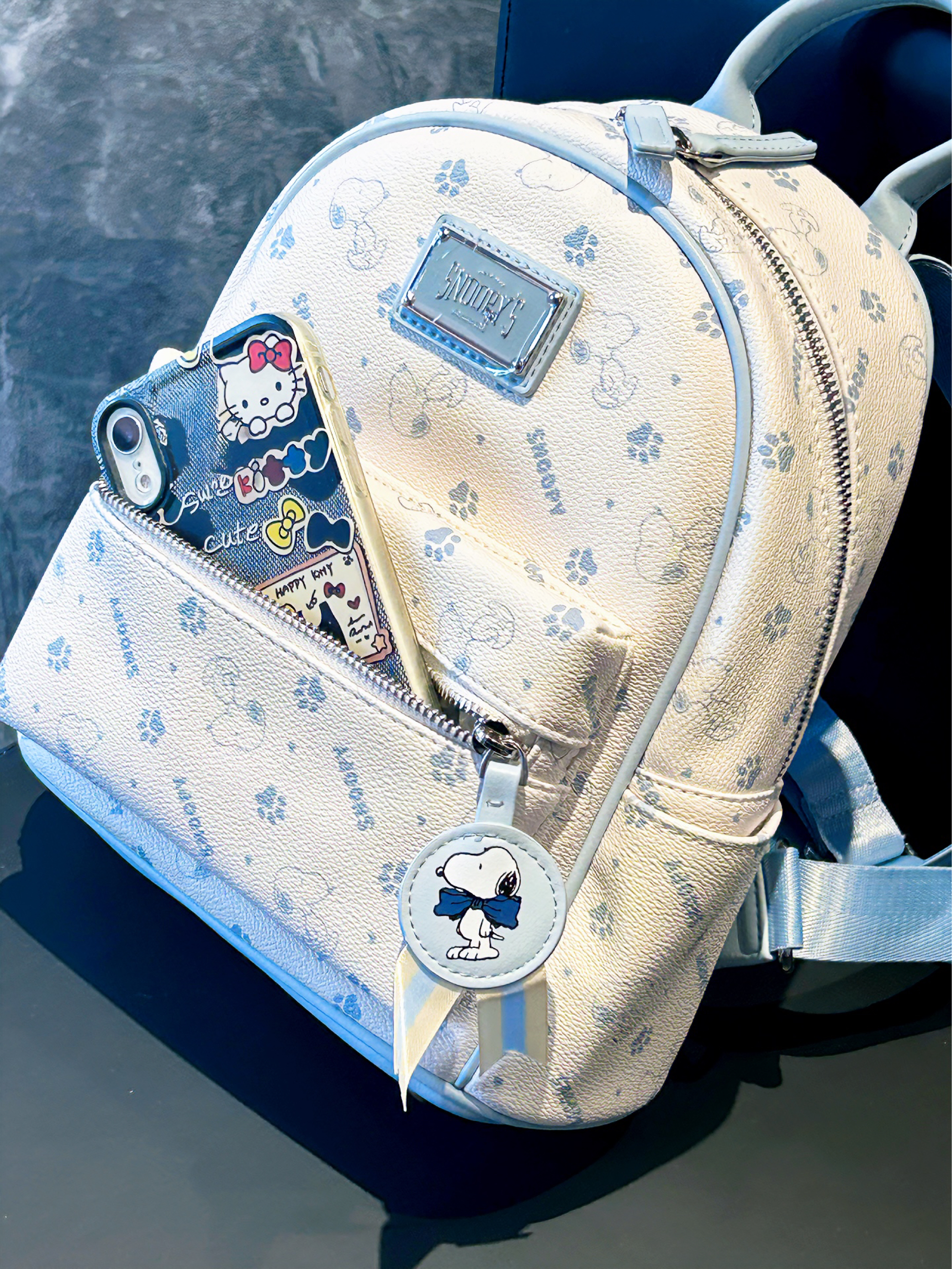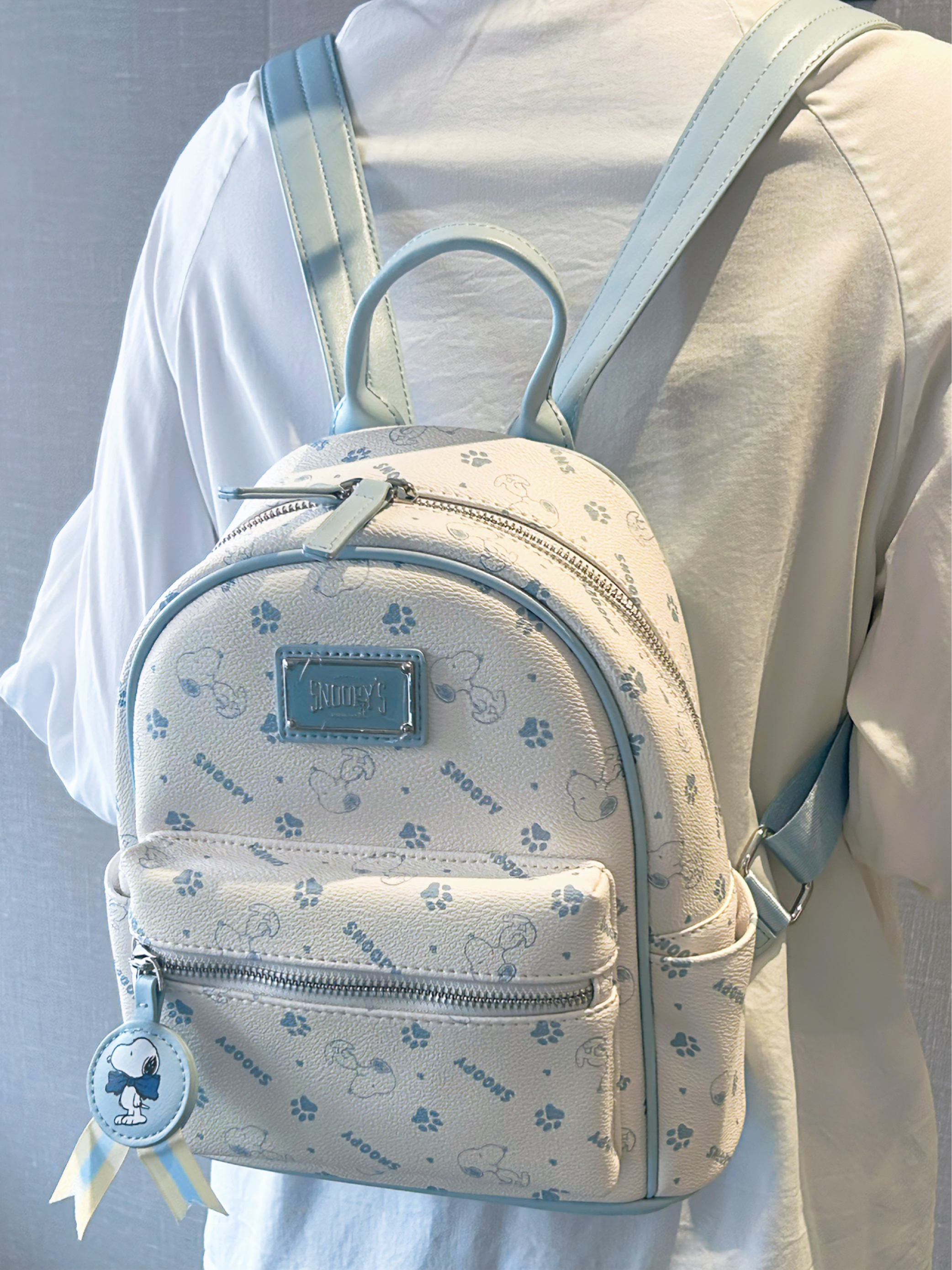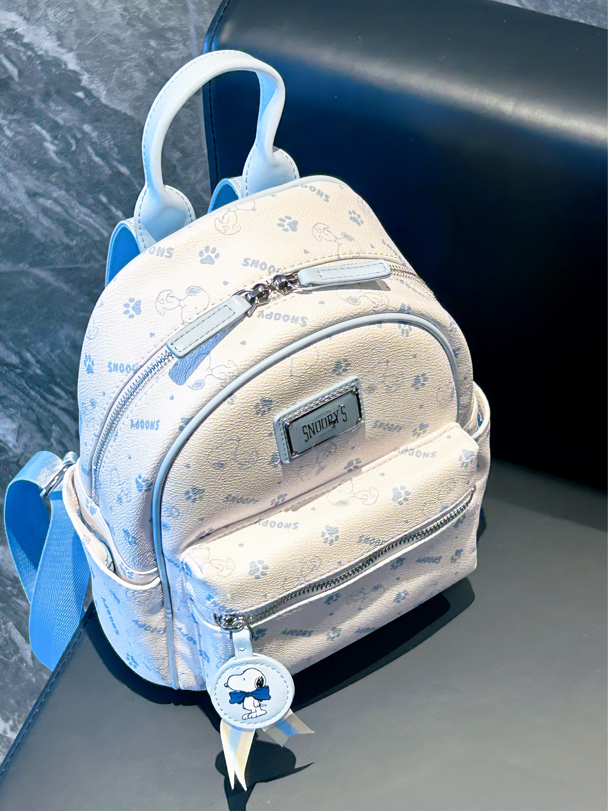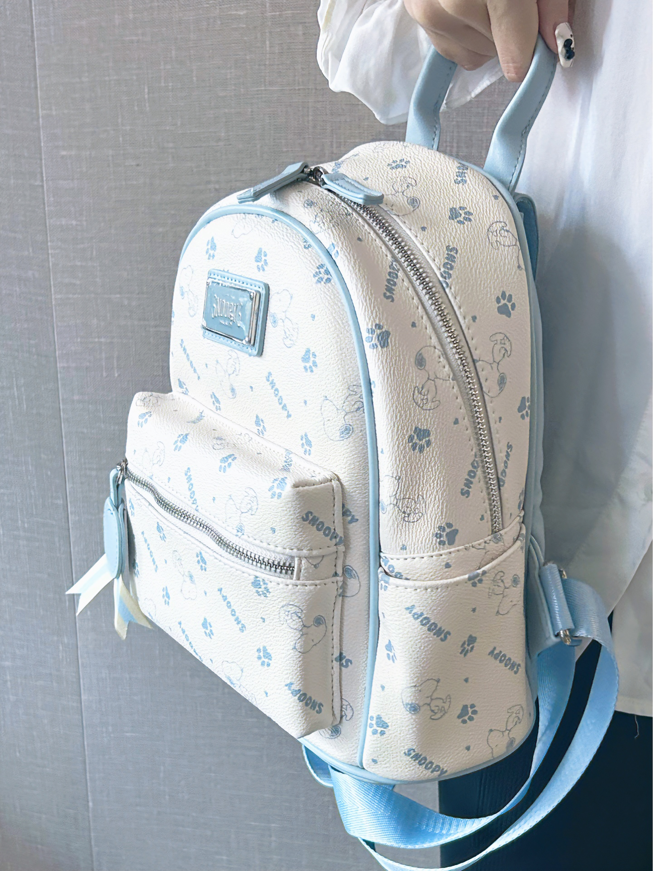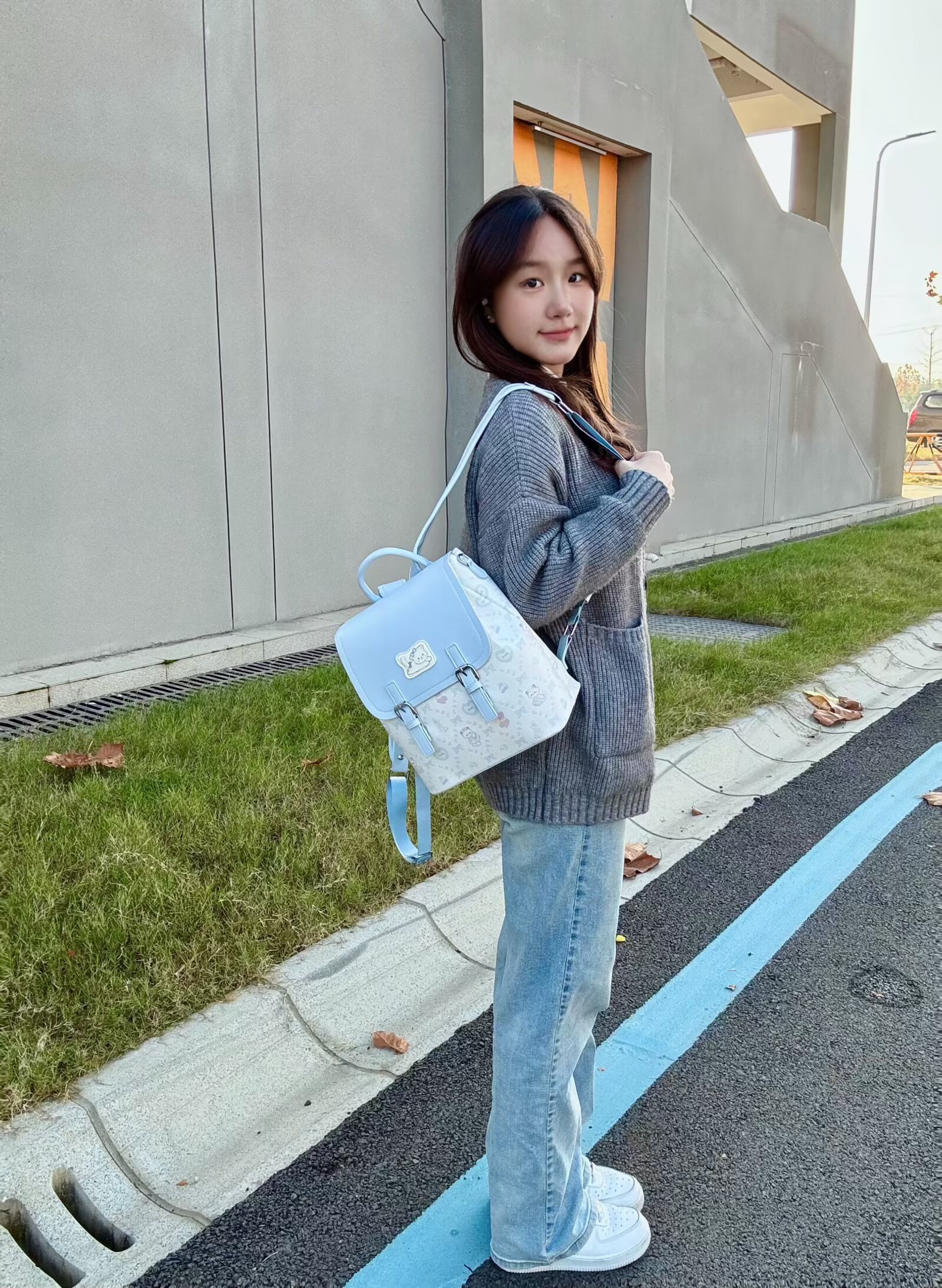 好喜欢介个baby蓝双肩包吖 这个颜色就是清清爽爽的 印花也是蛮可爱滴 属于一年四季背都可以百搭的款式 容量还挺大的 可以放下随身物品 而且也敲好搭配我的衣服 现在出门我就喜欢背它~
