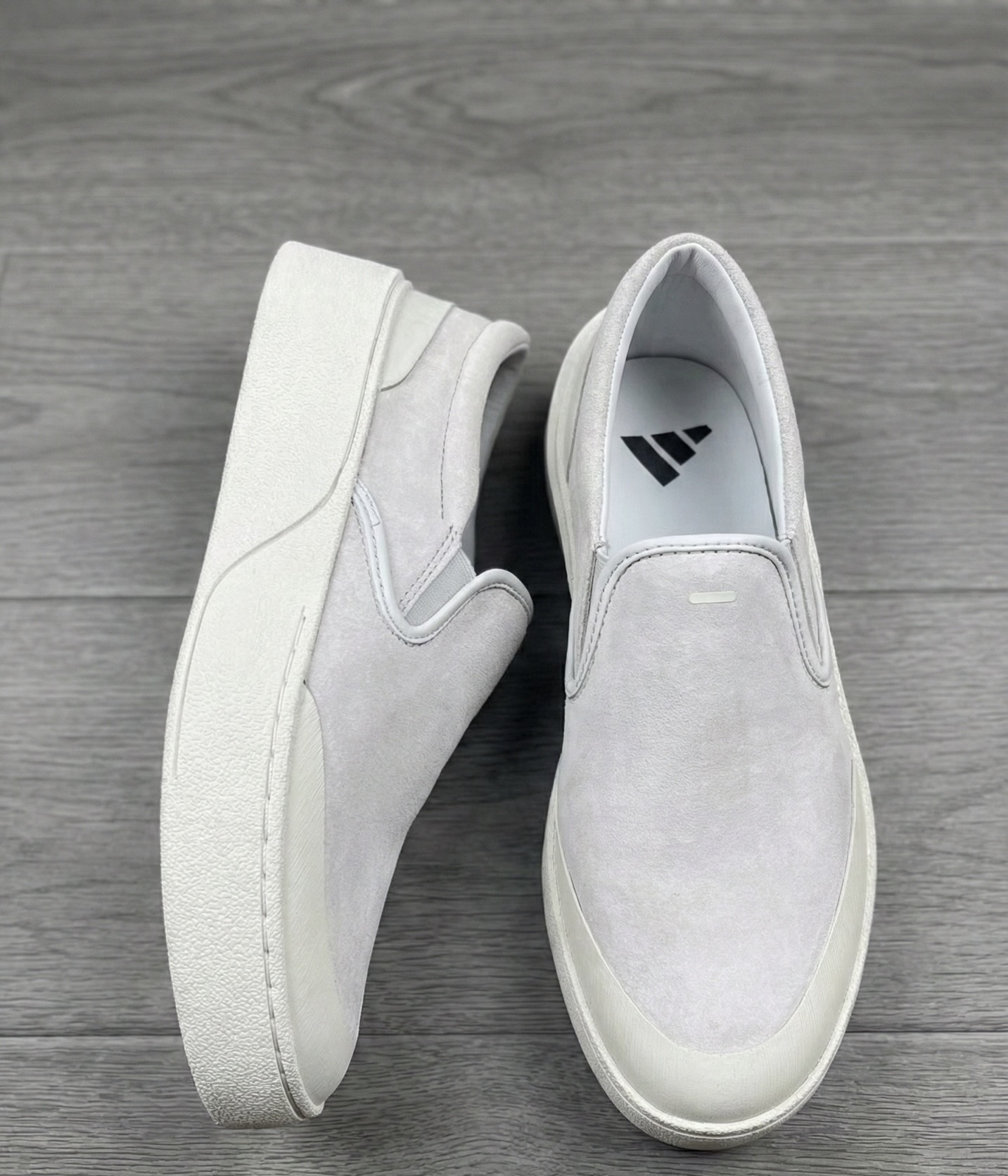 这双adidas LABCOURT LIGHT浅灰麂皮一脚蹬,算是近期挖到的“懒人友好型”休闲鞋宝藏款,从设计到上脚体验都踩中了日常穿搭的核心需求,具体测评如下: ✅ 亮点 1. 材质与质感在线 鞋面选用浅灰色麂皮,触感细腻且自带高级哑光质感,鞋头的橡胶包边既耐穿又中和了麂皮的娇气,米白色橡胶大底做了轻微做旧处理,复古感拉满。 2. 一脚蹬设计超便捷 无鞋带的套脚结构,穿脱一秒搞定,通勤赶时...