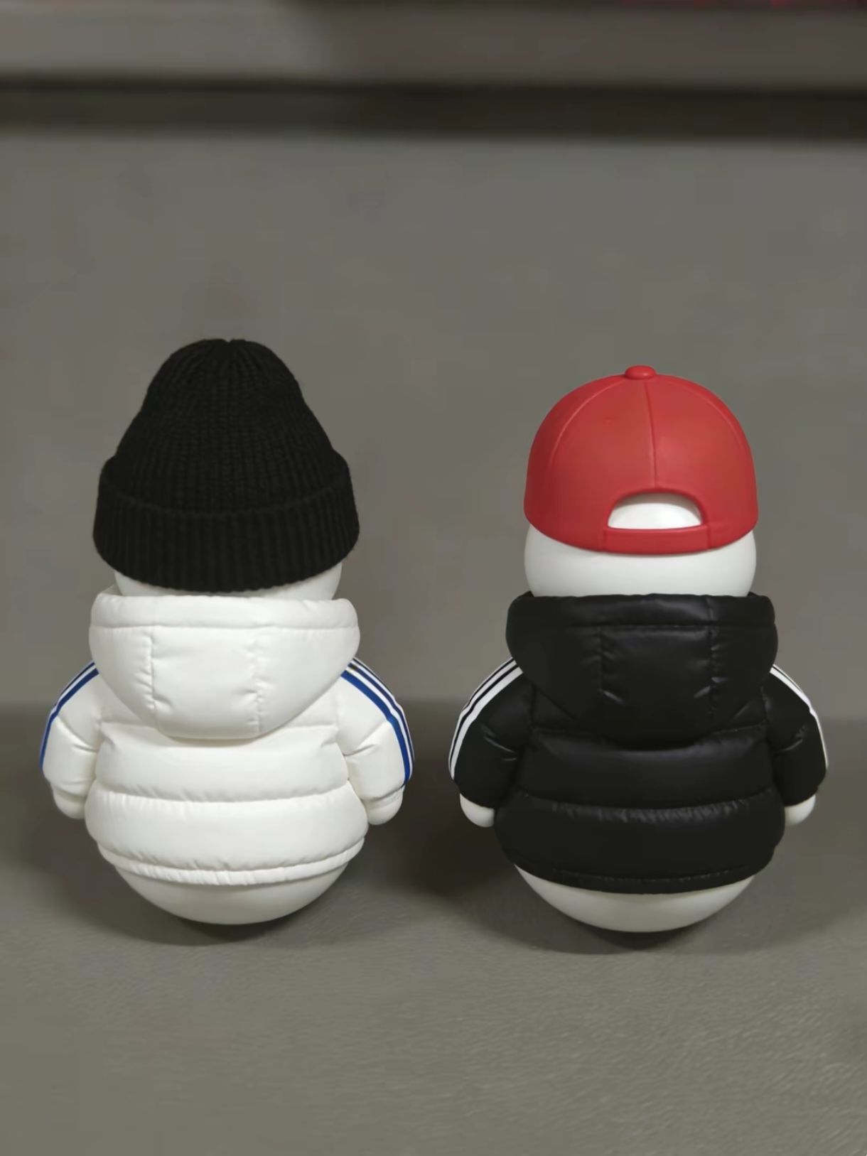 看起来好可爱啊 小小的蜜雪冰城不倒翁穿上胖胖的羽绒服 搭配起来还不错
