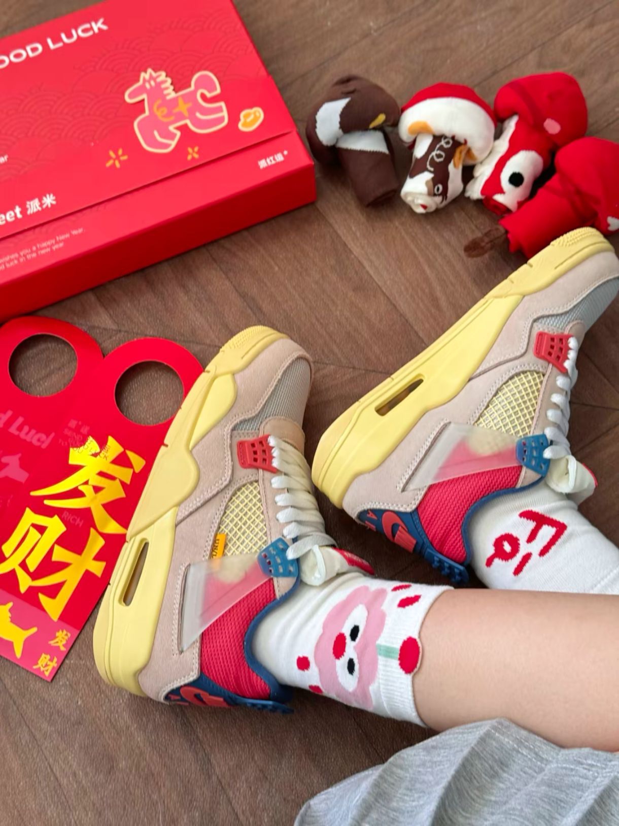 本篇笔记关联了Air Jordan 4 运动休闲鞋 舒适缓震防滑耐磨复古简约时尚百搭支撑织物合成革轻质 Union联名/石榴粉/红色、PRIMEET 柔软透气亲肤抑菌中筒袜 AB34692H 新年趣红 5双等商品,为用户提供真实的使用体验和购买参考。