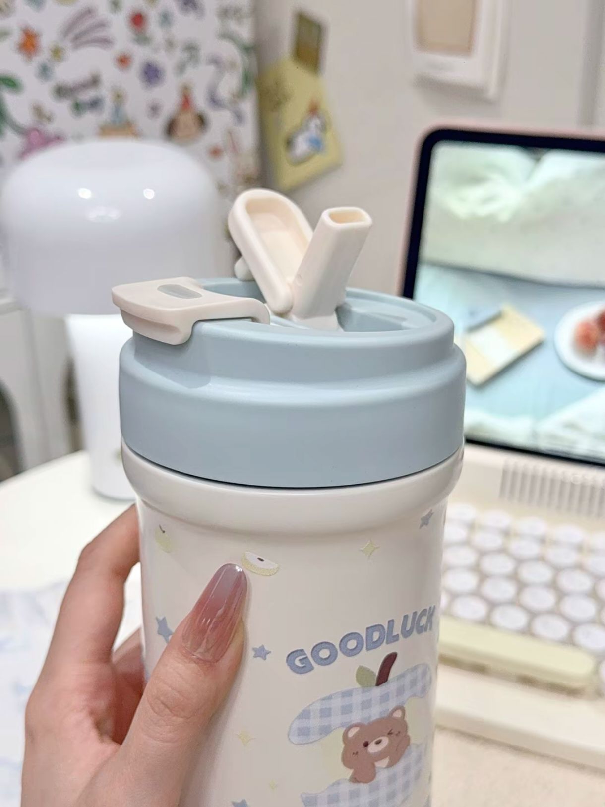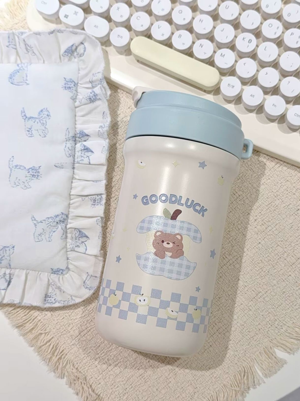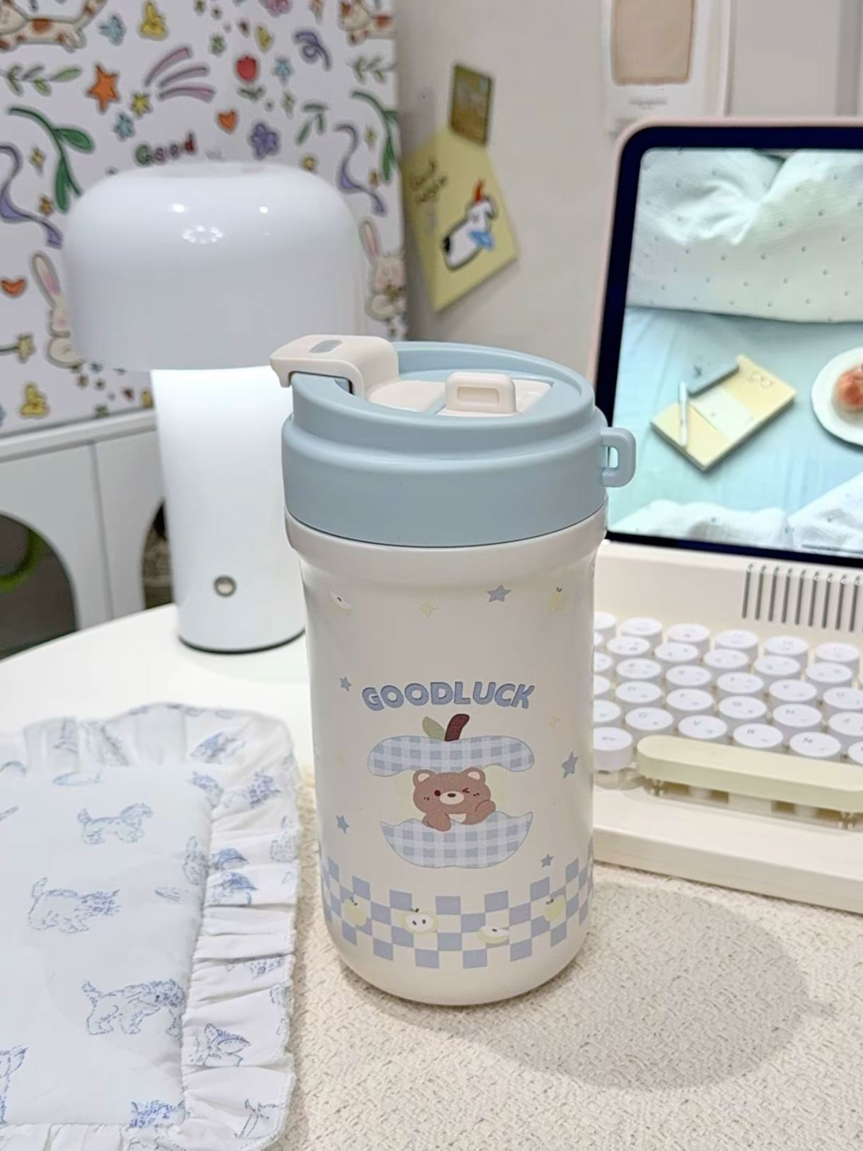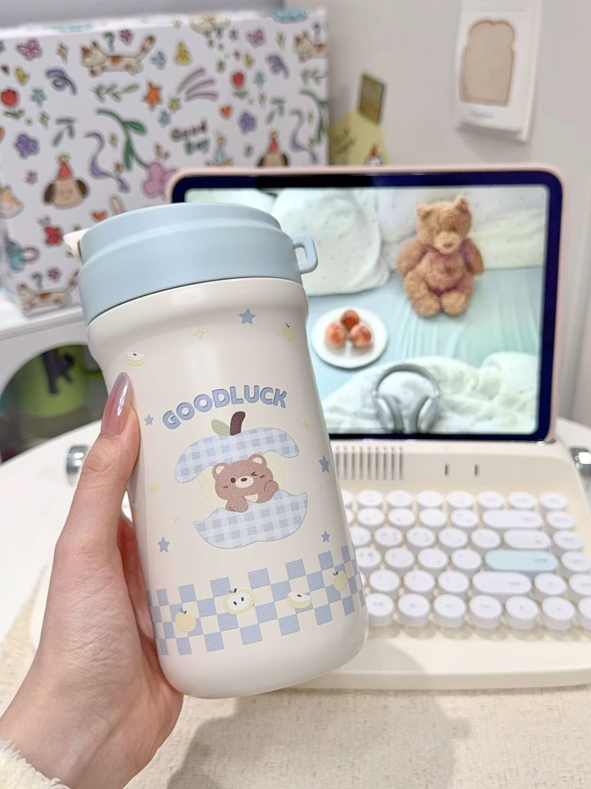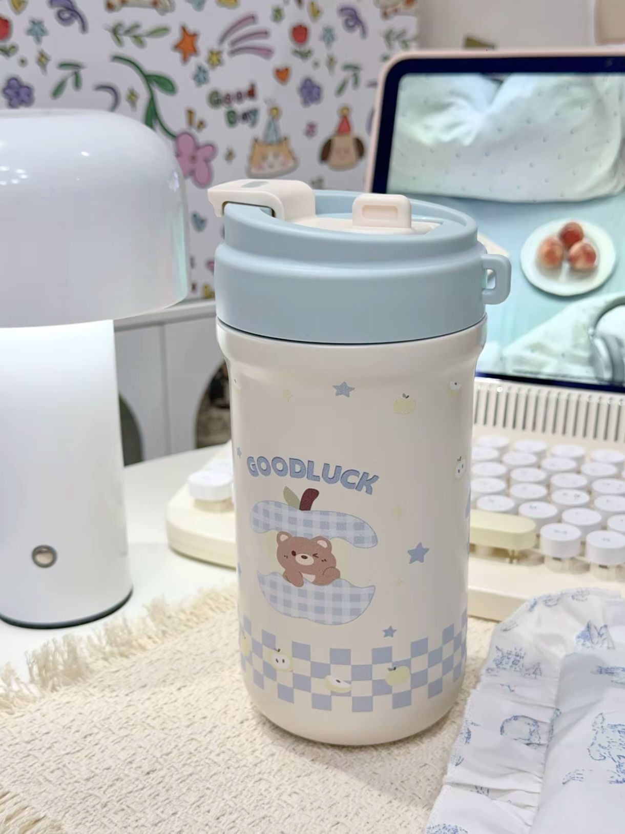 冬天少不了的就是保温杯啦❄️ 苹果和小熊组合居然那么可爱捏 双饮杯自带吸管,冬天喝水超方便