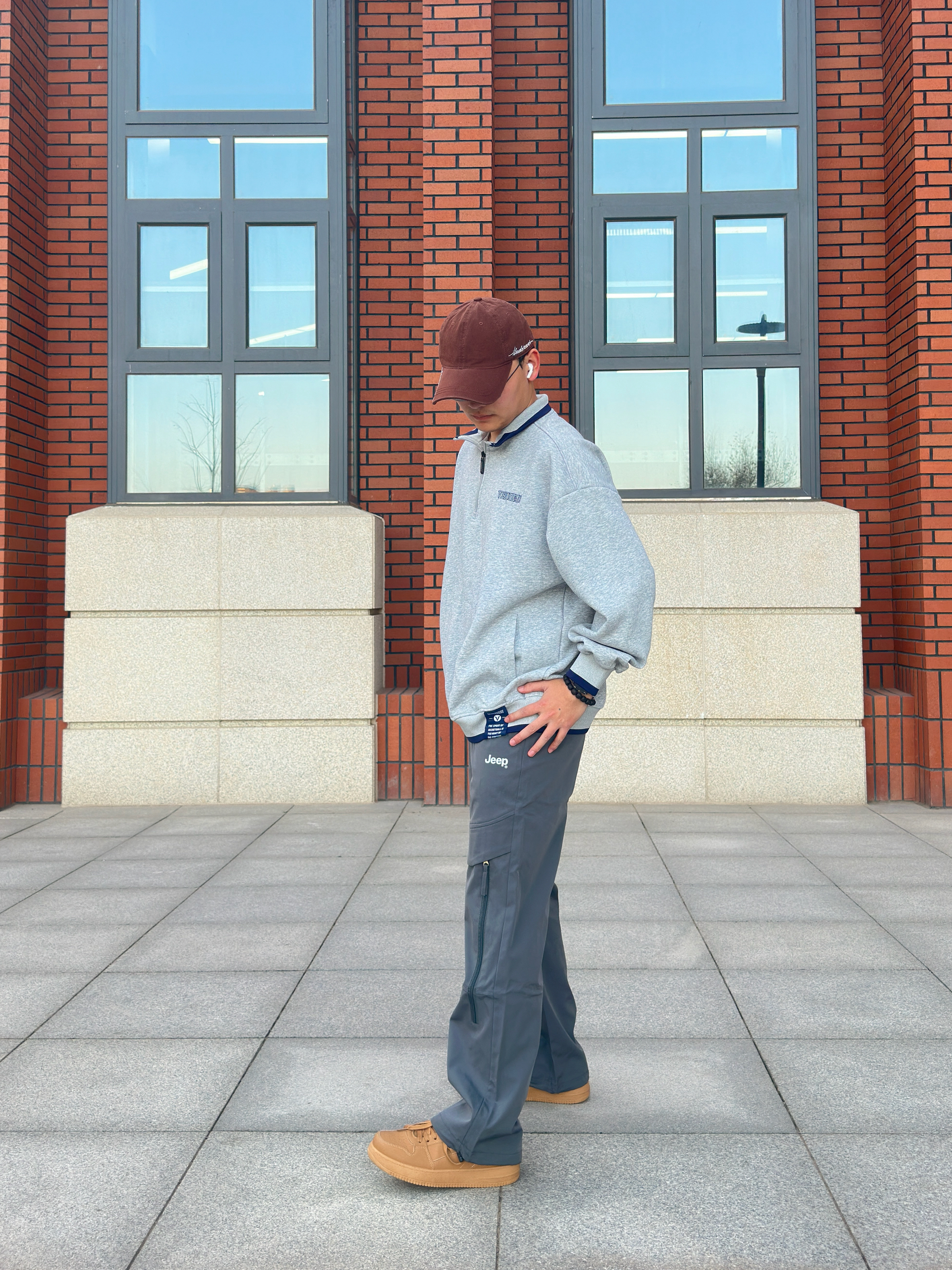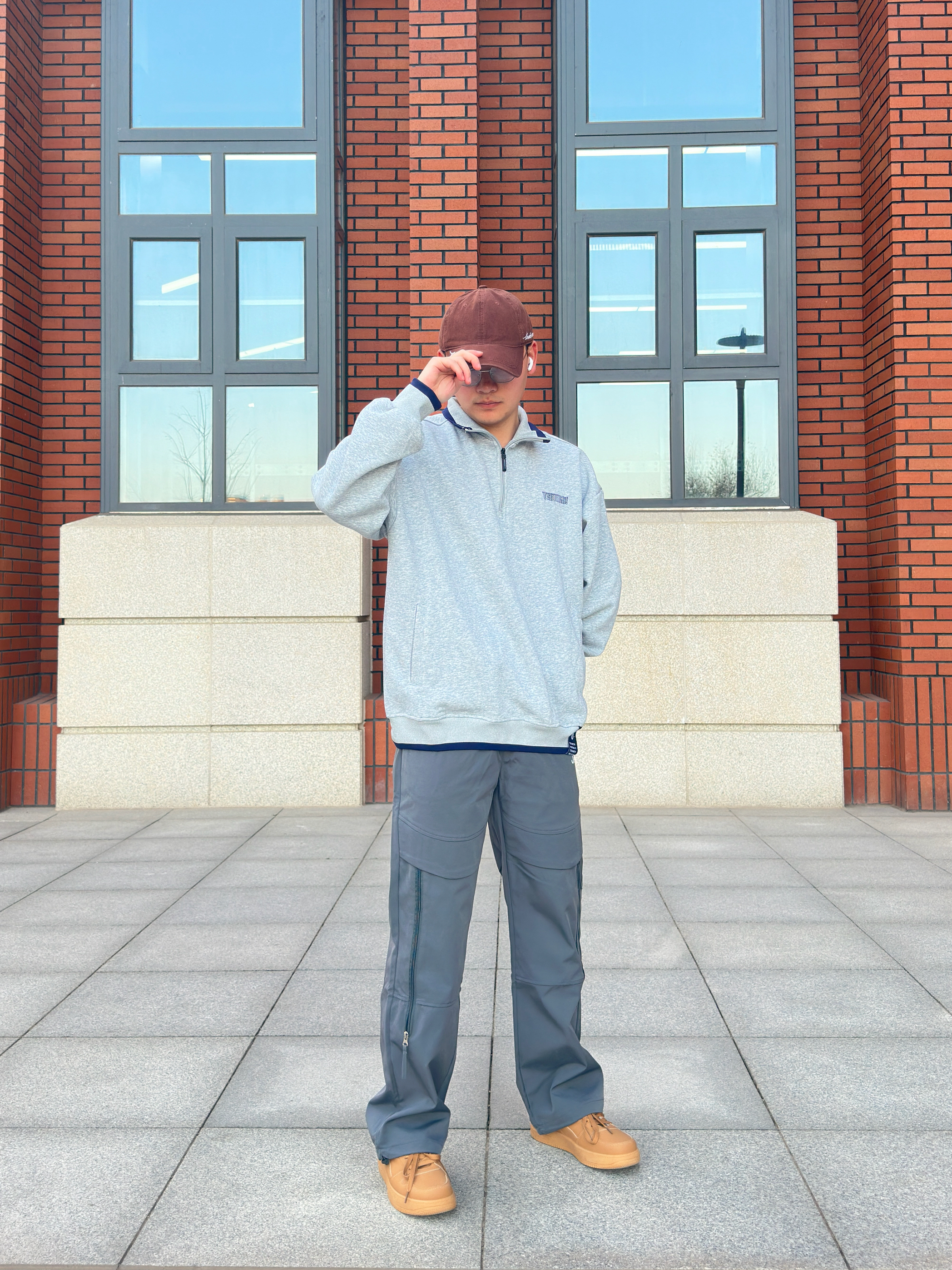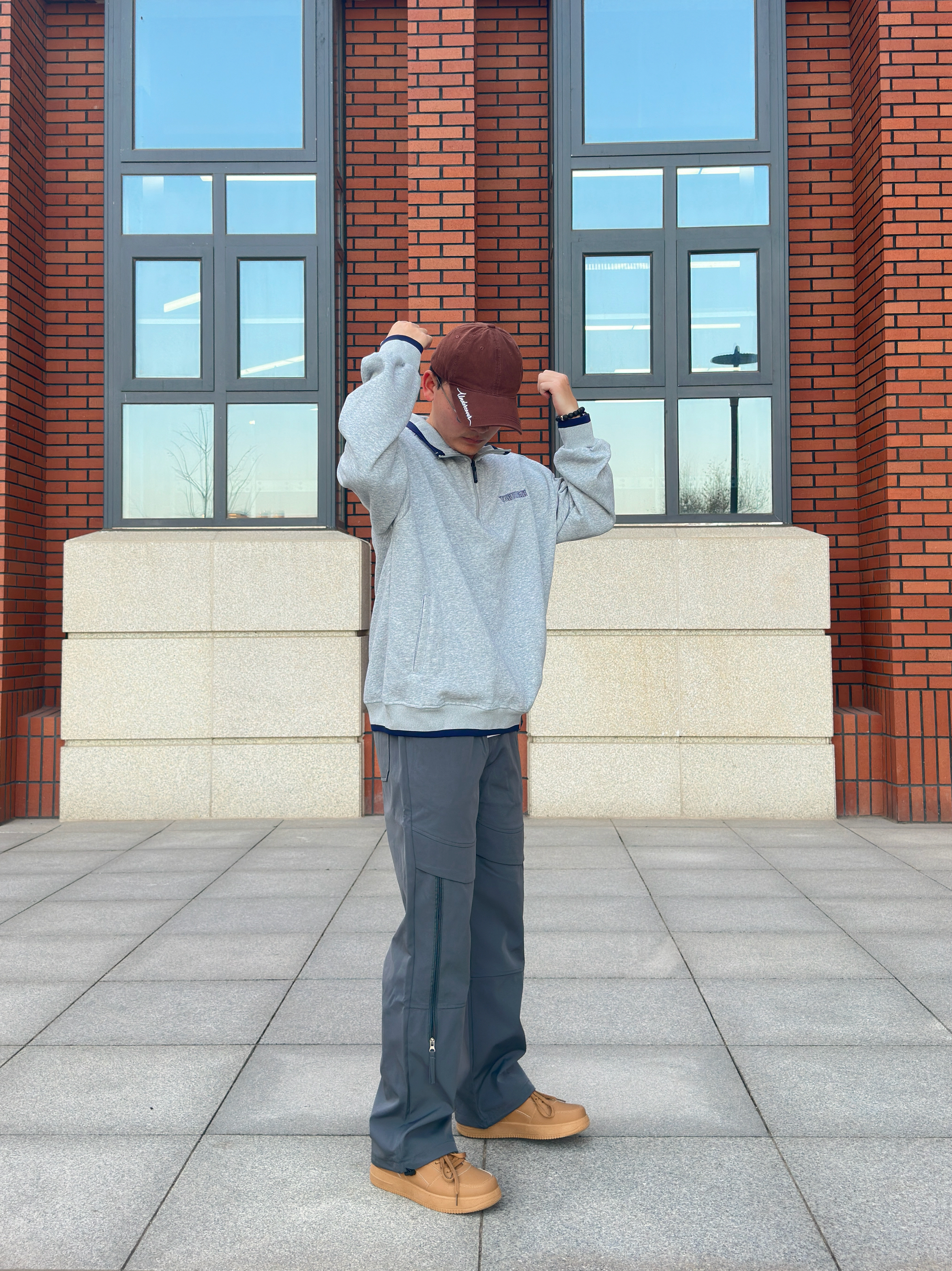 20℃的早秋适合叠点小细节了! 灰调做旧棒球领卫衣自带复古滤镜,后背字母印花带点美式松弛,领口袖口的藏青边是点睛小心机~ 下装搭条深迷彩工装裤,顺滑的质感好想焊腿上焊,卡其鞋一踩,帅得毫不费劲! 这套既能扛住早秋微凉,又能在午后暖光里穿出随性,日常通勤或者是游玩都合适