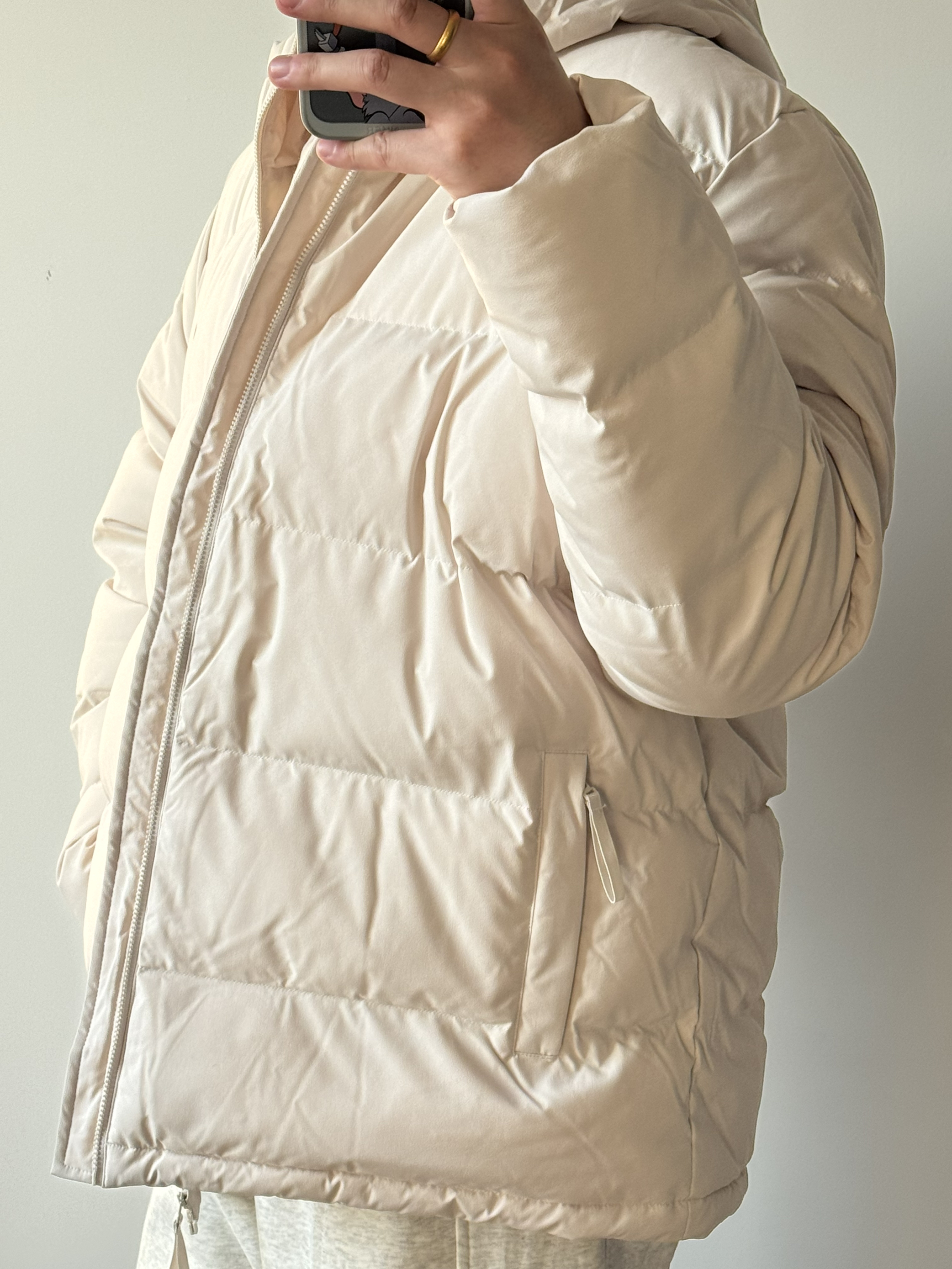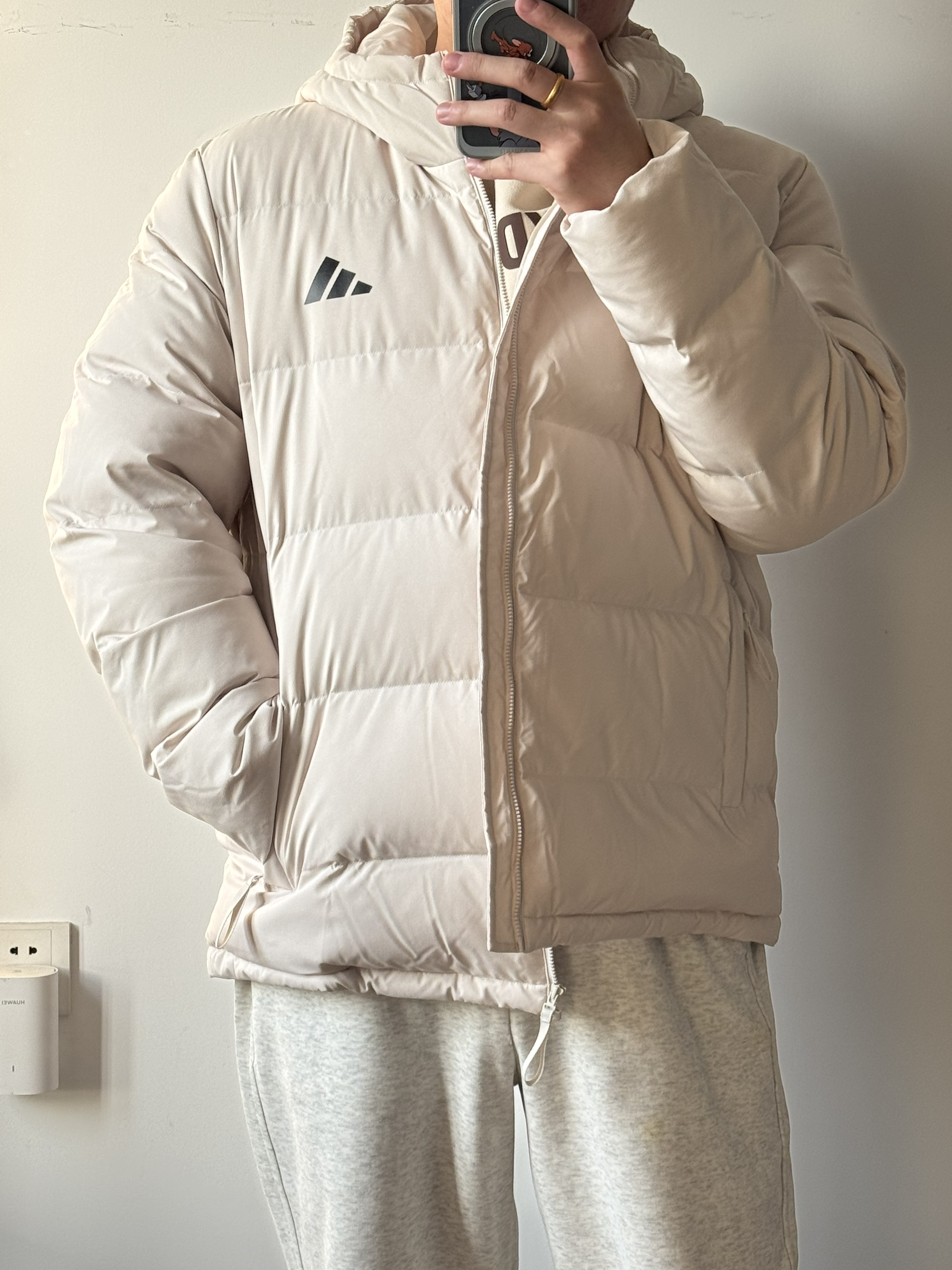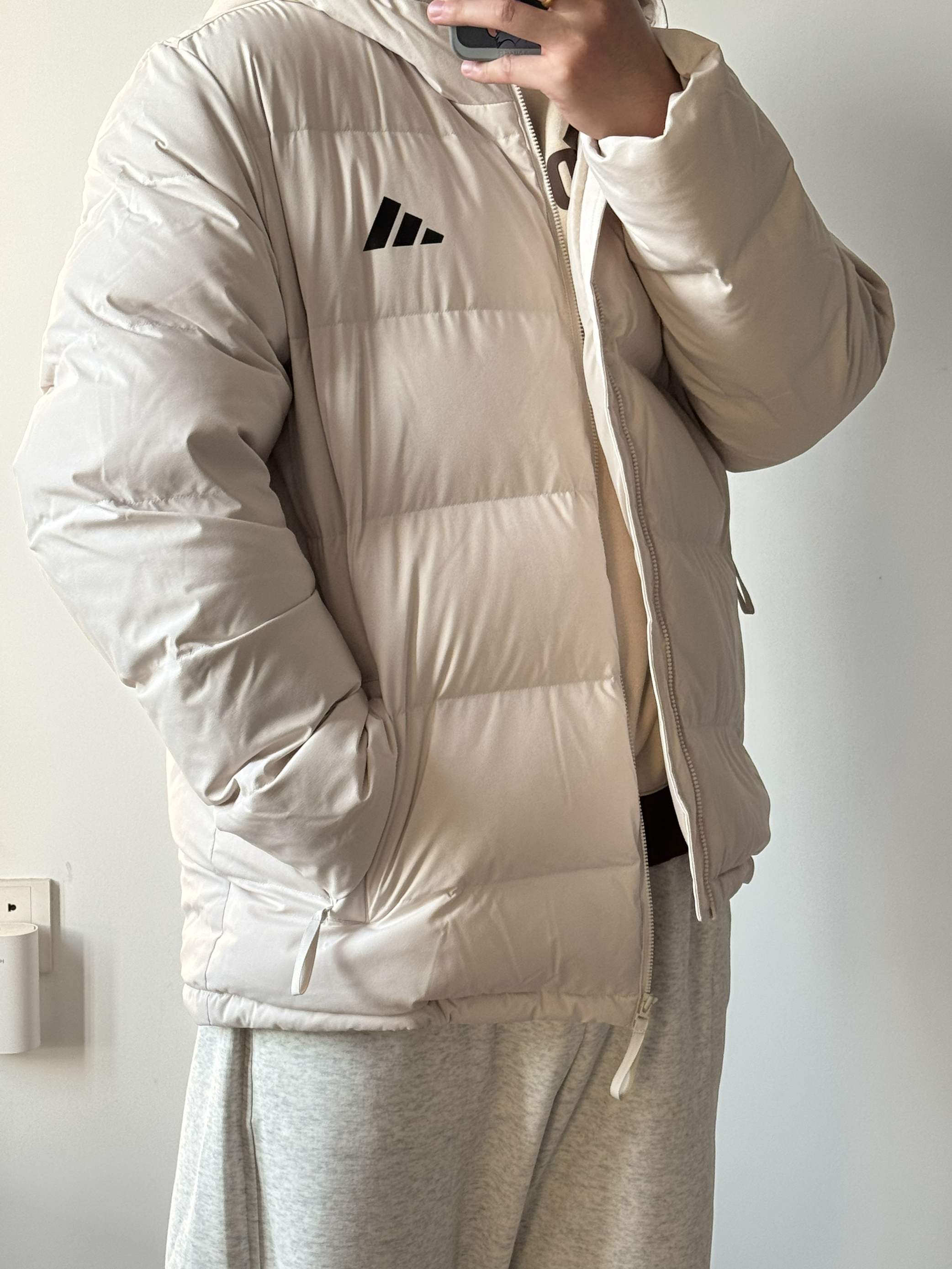 奶白色好干净,好有少年感✨ 上身很舒服,很蓬松☁️ 但是超级保暖~ 穿着一点也不怕冷!完全喜欢住✔️
