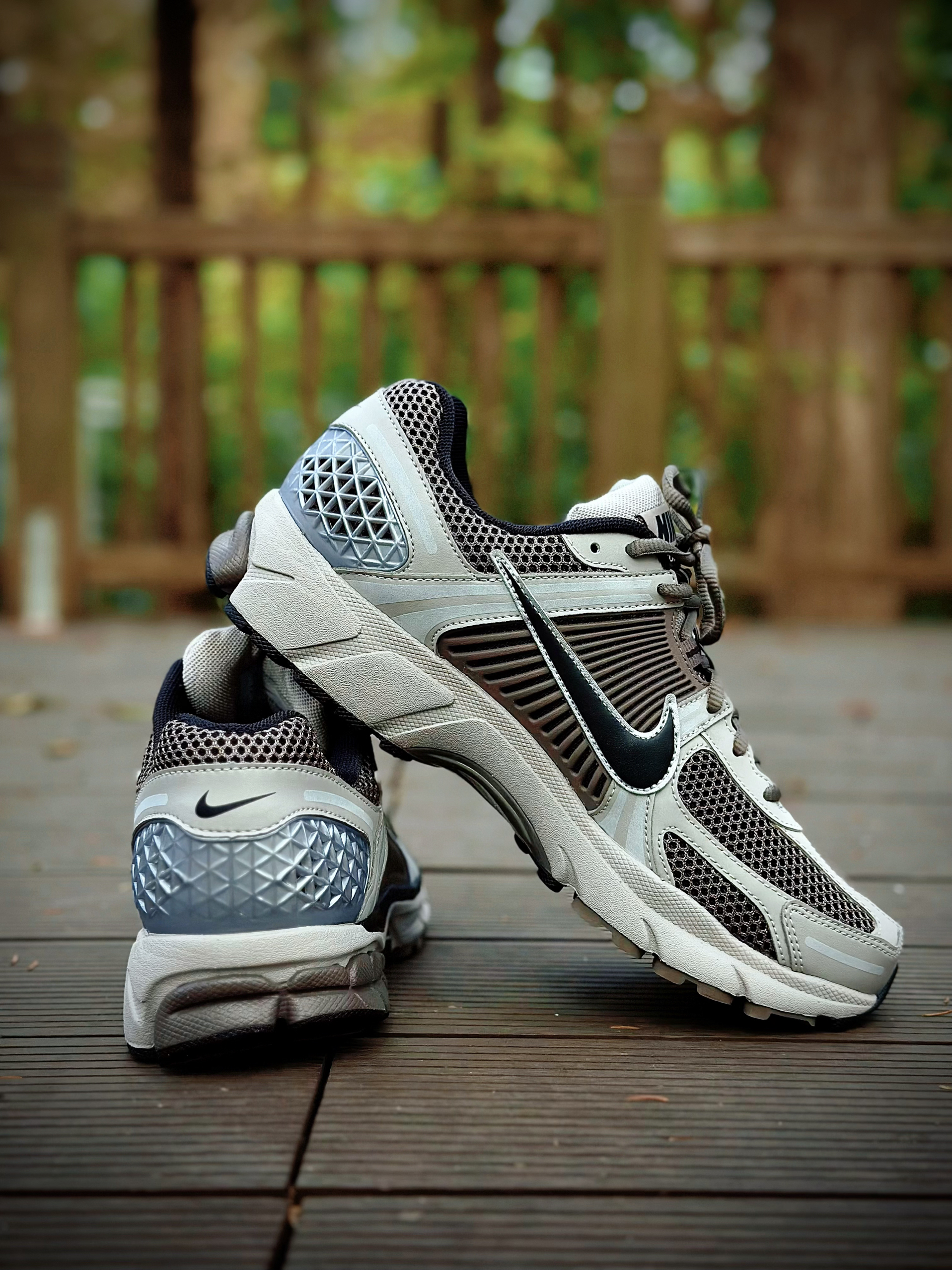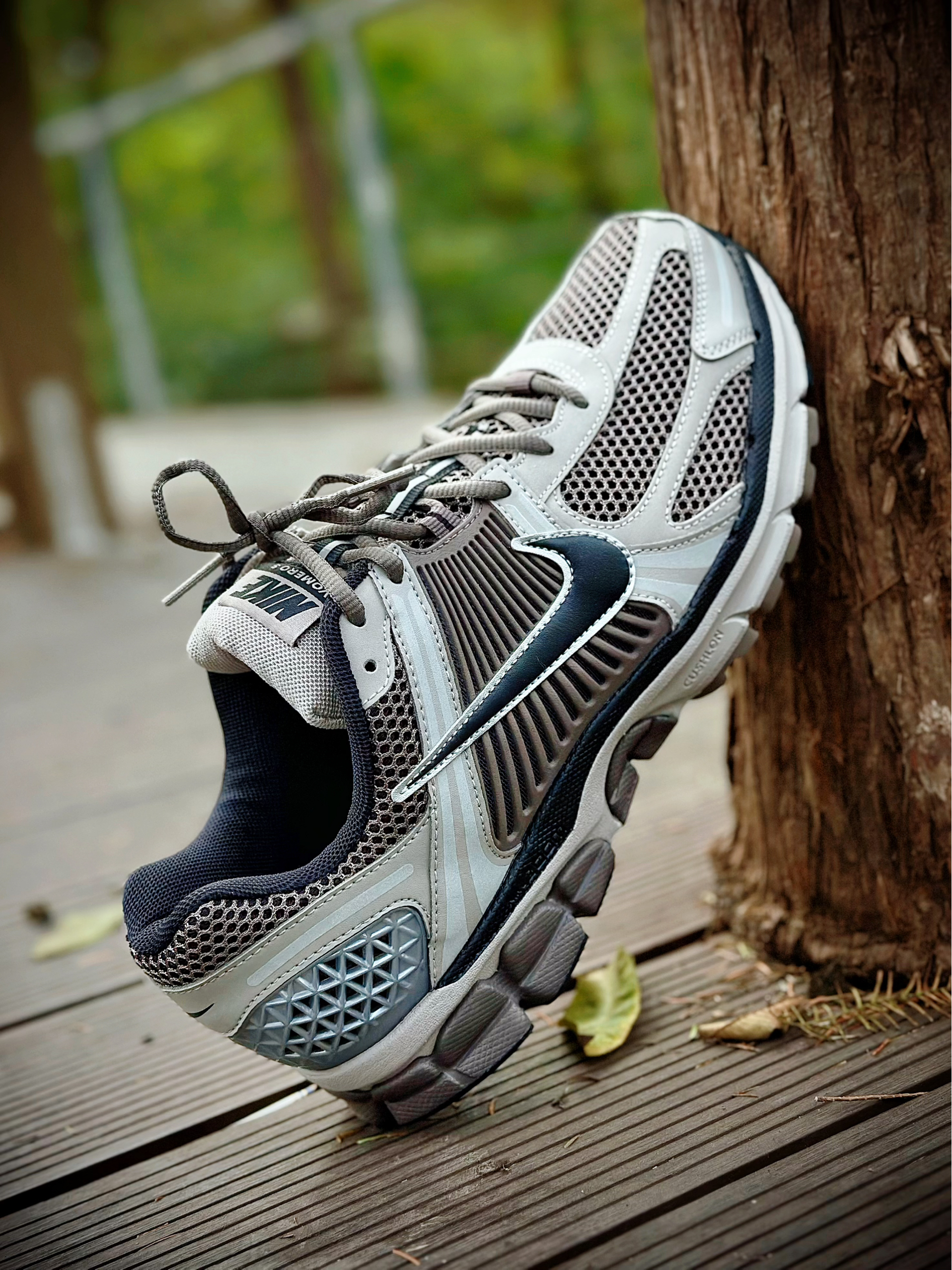 有一说一最近对于复古风格跑鞋有点着迷,今天分享的是一双耐克家的Vomero 5复古休闲跑鞋! 外观颜值👟: 1.鞋子拿到手第一感觉重量比较轻,浅灰色➕深灰色双色拼接,一整个深色调搭配外观颜值偏低调风格! 2.后跟塑料网格搭配上侧面标志性钩子logo,同色调拼接衔接自然 穿着脚感👟: 1.鞋底搭载了Air Zoom 缓震科技,踩起来脚感属于软弹类型,而且鞋子本身重量比较轻,走起来没有拖拉的...