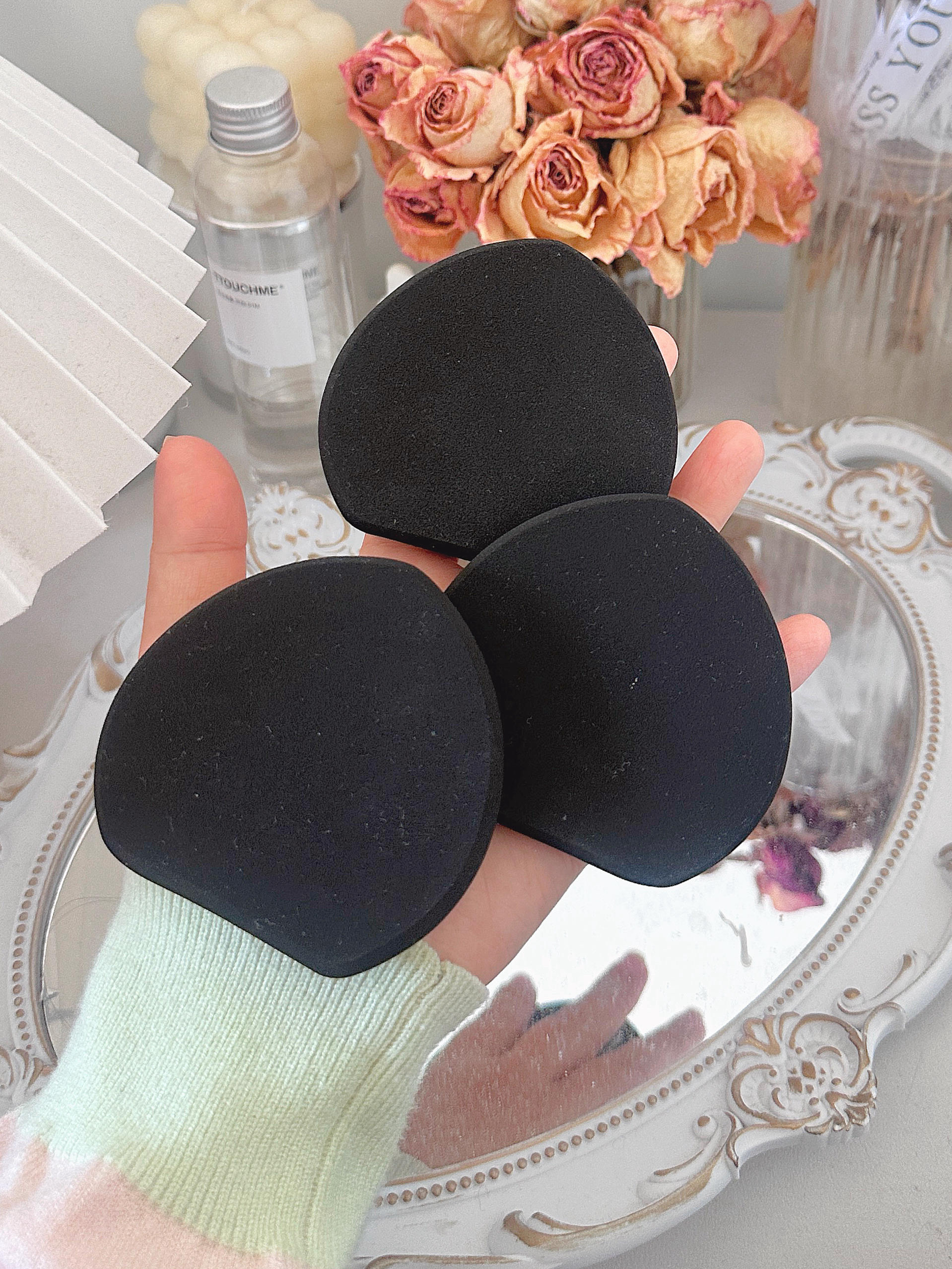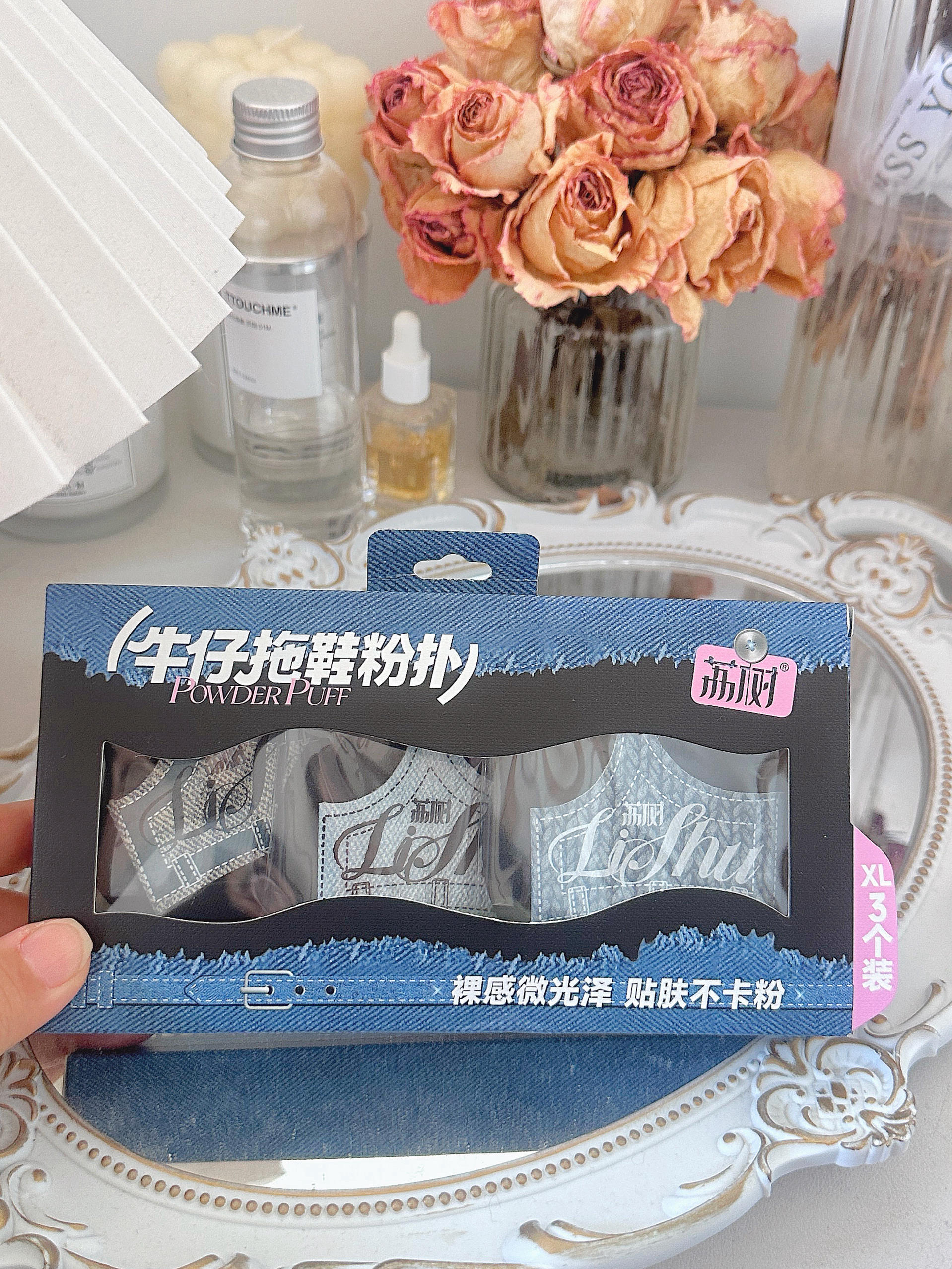 谁能拒绝把牛仔人字拖揣进化妆包啊🤠 小拖鞋一整个直接戳中我心巴! 牛仔纹理+小吊带造型 奶fufu的浅蓝/做旧蓝配色 拿在手里像mini版的可爱小配饰~ 软fufu的拍粉底液巨服帖! 打湿后变大一圈,几下就能搞定底妆 拐角处能把边边角角照顾到 气孔细密,随便拍拍都能把底妆拍得又匀又透 背面是皮质包边,捏起来QQ弹弹的 握感超舒服,补妆的时候拿着也很顺手 小小一个揣包里不占地儿 补妆拿出手直接被问链...