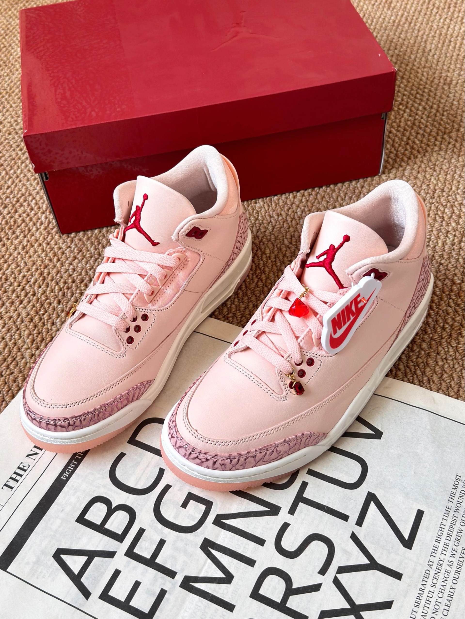 本篇笔记关联了Air Jordan 3 运动休闲鞋 潮流复古抓地支撑缓震合成革圆头 情人节限定/女款/嫩粉色等商品,为用户提供真实的使用体验和购买参考。