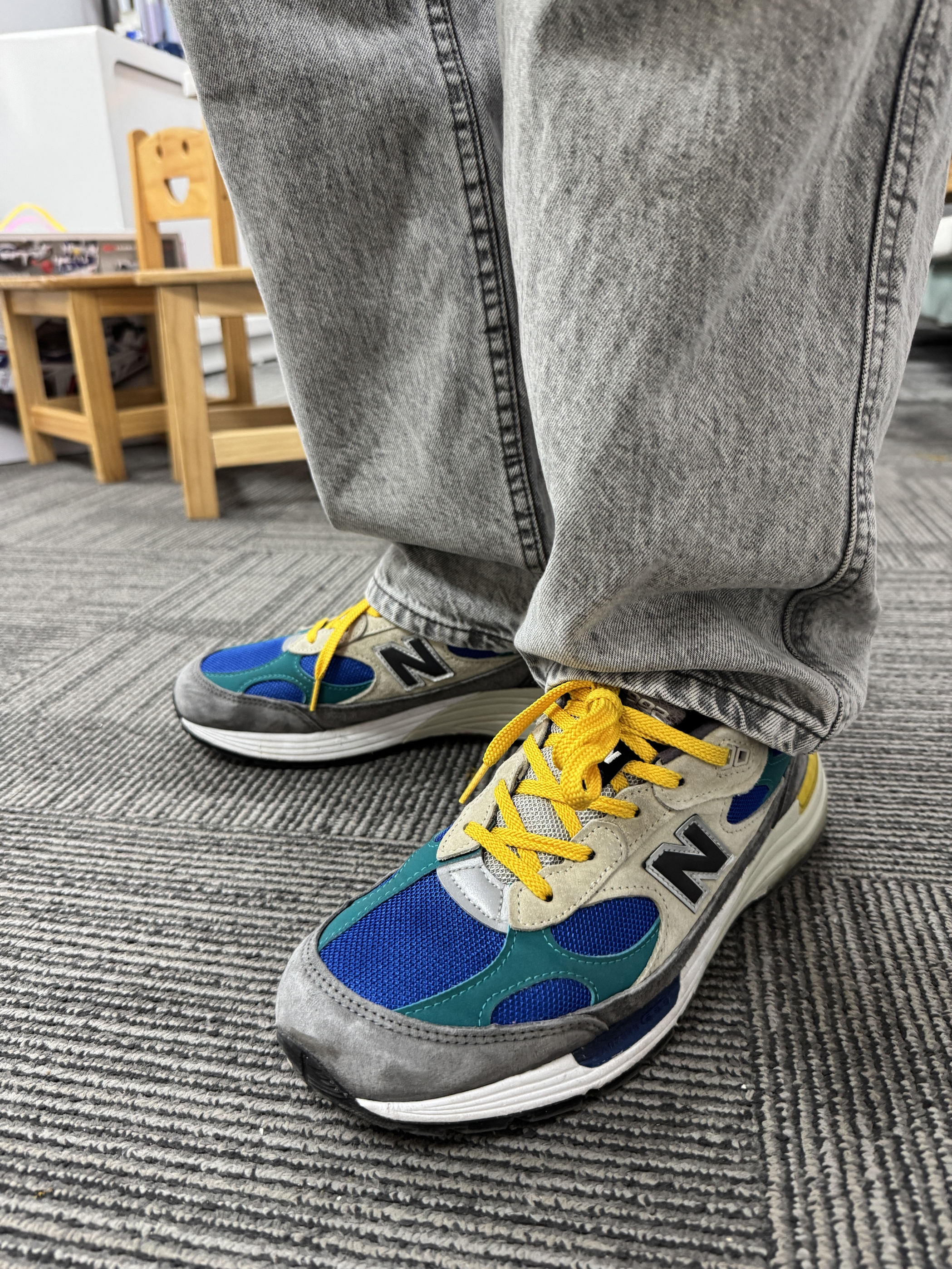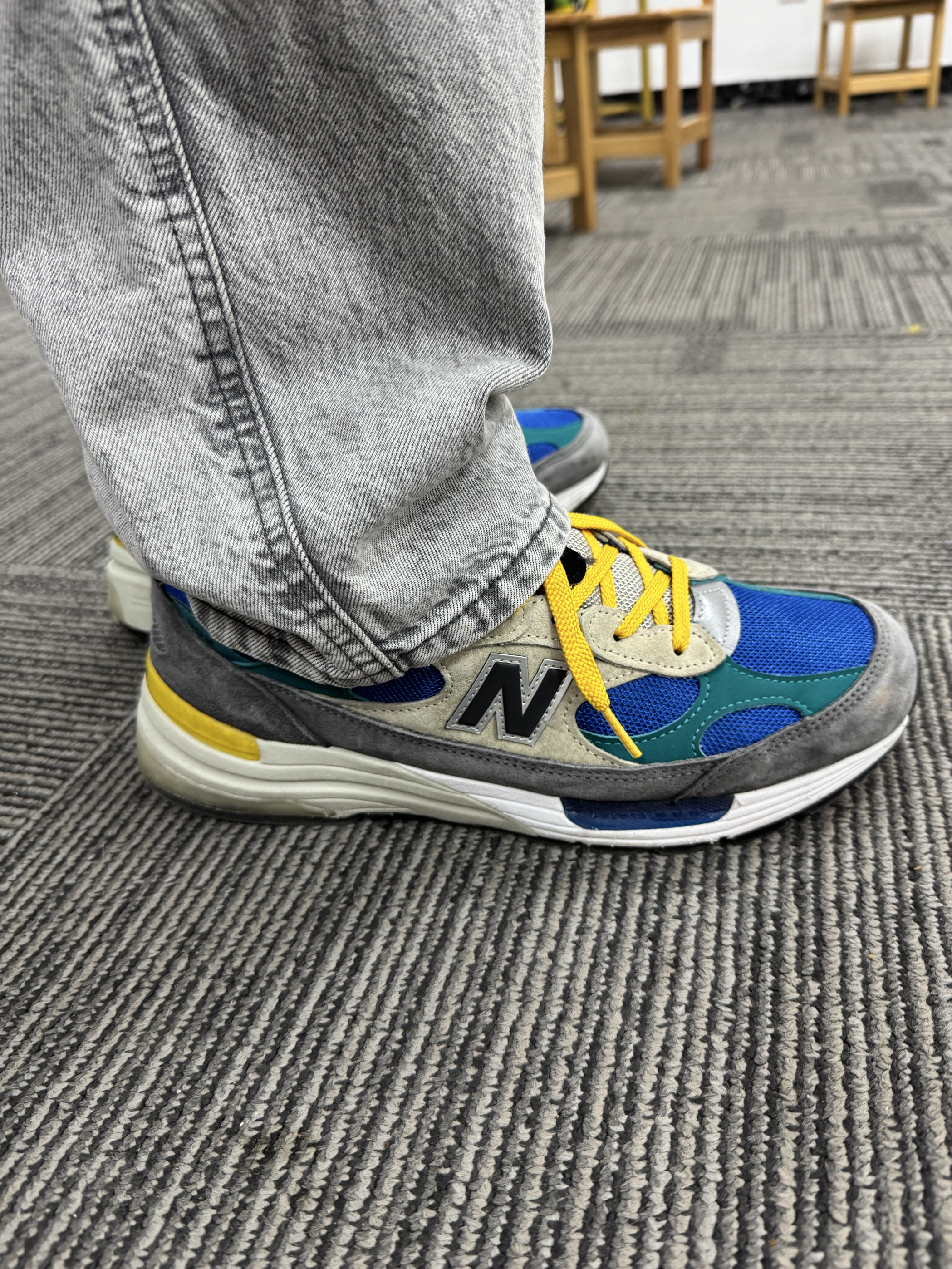 这双992 算不算是稀有配色了?有元祖灰的矜持,还有绿蓝黄的跳跃! 如果不知道今天穿什么球鞋,直接踩上992就走,是肯定不会出错的!