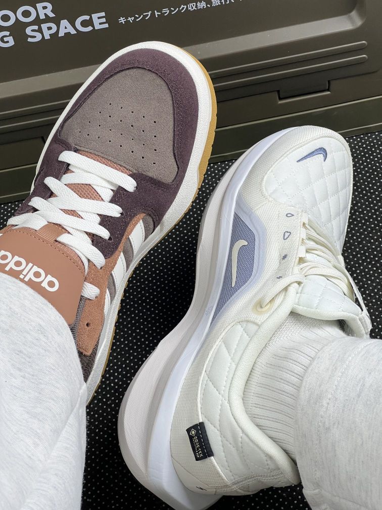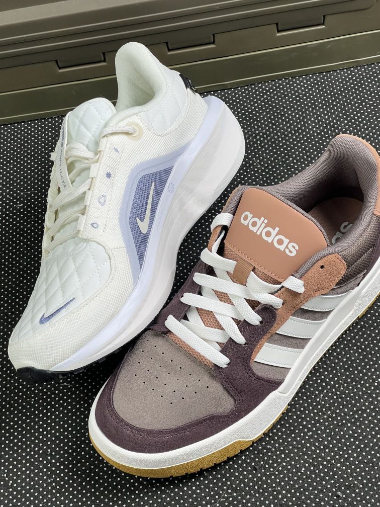 分享下这两双鞋的上脚真实感受,没什么花哨的,纯个人体验👇 左边这双阿迪的复古板鞋,麂皮拼色看着很有质感,上脚包裹感挺贴合脚型,日常走路脚感偏稳,不软也不硬。但缺点也很明显,麂皮材质太娇贵了,沾点灰就特别显眼,擦起来还得小心翼翼,而且鞋头偏窄,脚宽的朋友穿久了前掌会有点挤。 右边的Nike跑鞋,Gore-Tex面料确实耐造,下雨天穿也不怕湿脚,鞋底的缓震感很自然,长时间走路不累。不过它的鞋身...