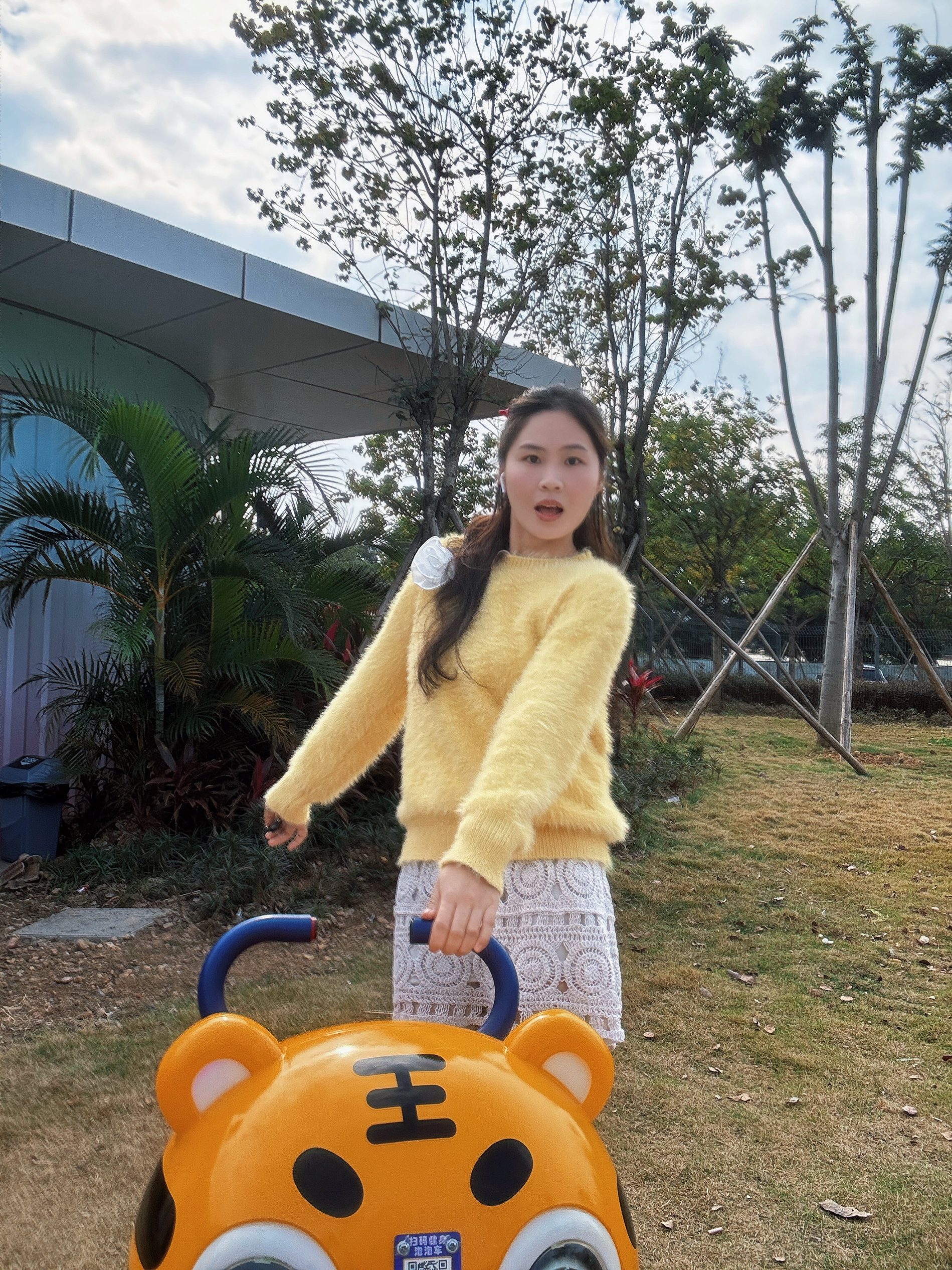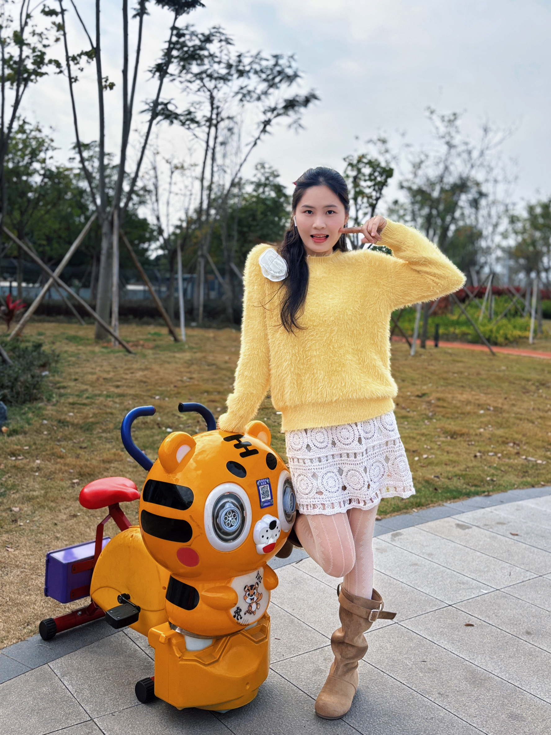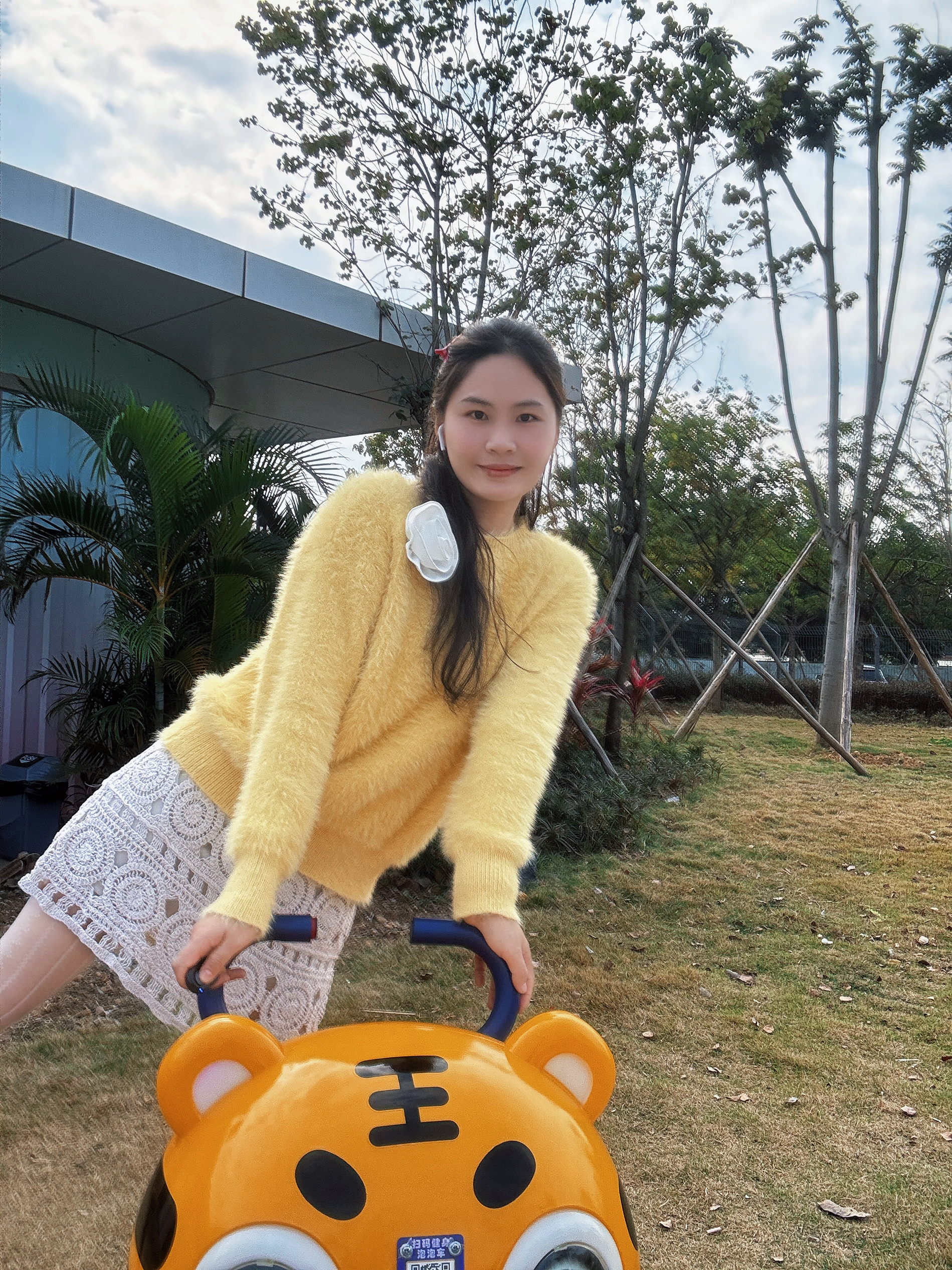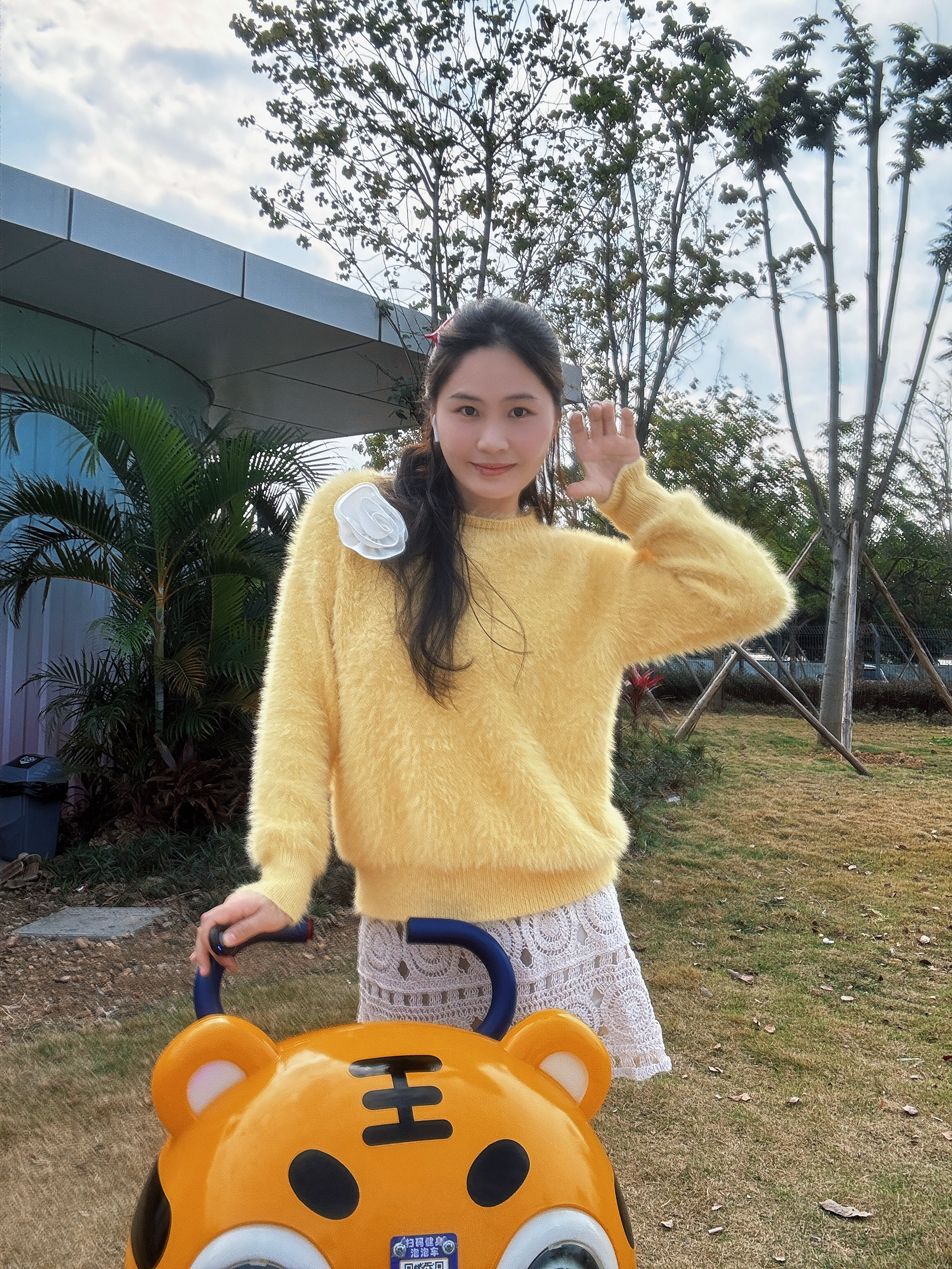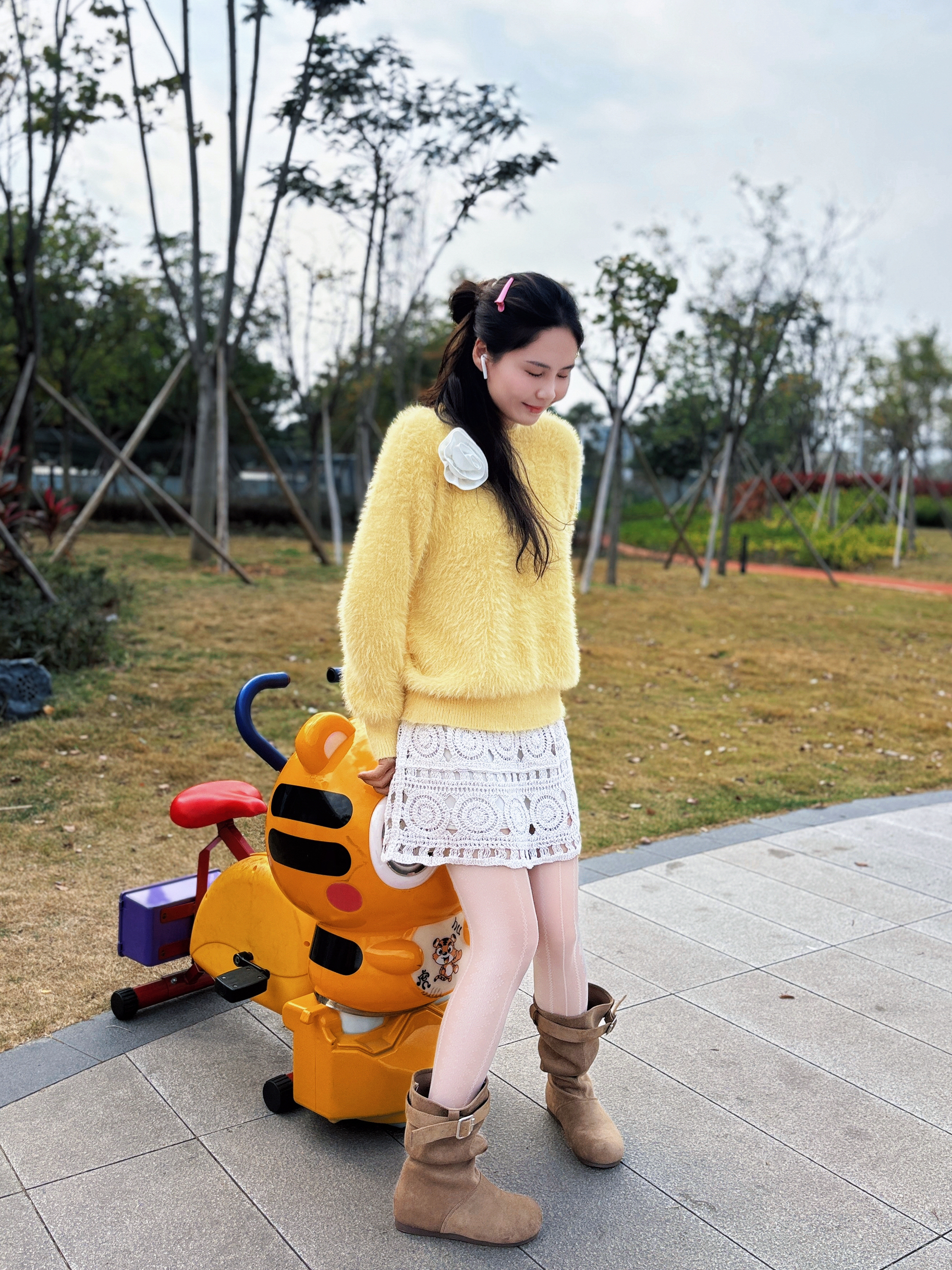 这件黄色毛绒毛衣真的挖到宝了😛😛 第一眼就被这个奶黄调戳中,毛绒的质感软乎乎的,贴身穿也不扎肤🥳🥳 版型是微宽松的小短款,刚好卡在腰线位置,能悄悄拉高比例还不显壮,对梨形身材和微胖姐妹也很友好👭👌👌 搭配了白色蕾丝半裙,柔美的镂空花纹中和了毛衣的蓬松感,再踩一双麂皮短靴,甜妹氛围感直接拉满~✅🤏