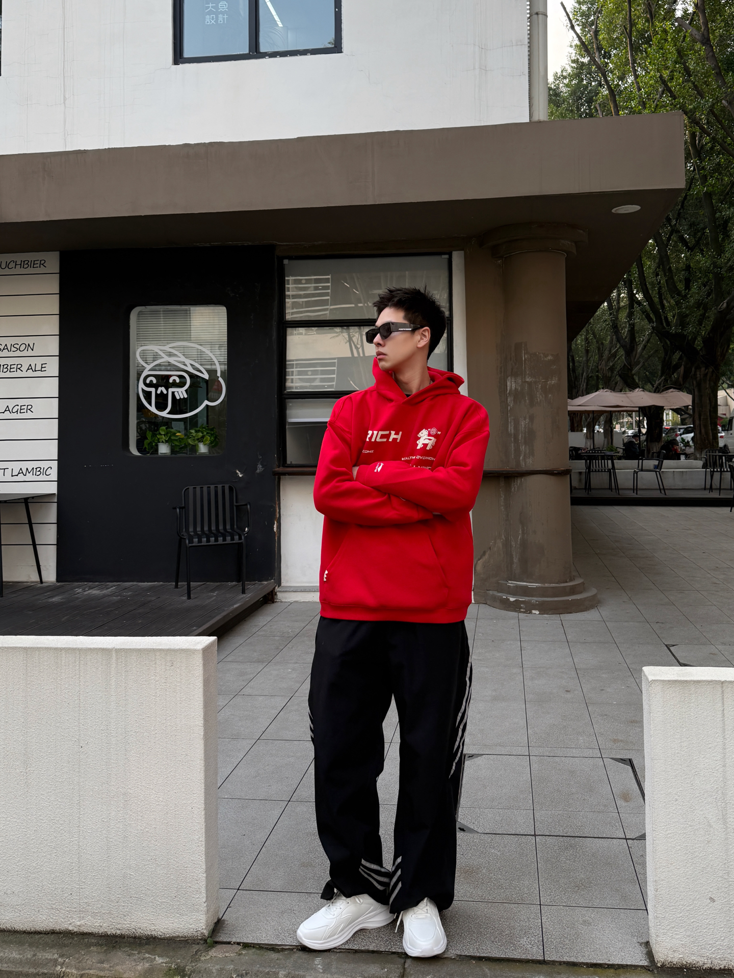 李宁红卫衣+回力白鞋,这“亮色松弛感”直接戳中审美了 谁懂李宁这件红卫衣的吸睛度啊—— 正红色往身上一裹,自带街头焦点buff,“RICH”印花藏着潮牌细节;搭黑阔腿裤松垮得刚好,踩双回力白鞋,干净利落把秋冬的暖与潮锁死,往建筑前一站,随性又炸眼。 不用费心搭,套上就是出街的王炸组合! #Warrior回力 #Warrior回力潮流鞋 #李宁宝藏卫衣推荐 #潮男过年OOTD🔥🔥🔥 #新年新装...