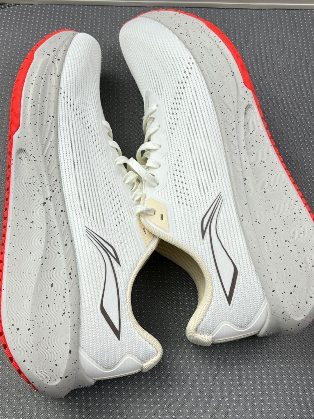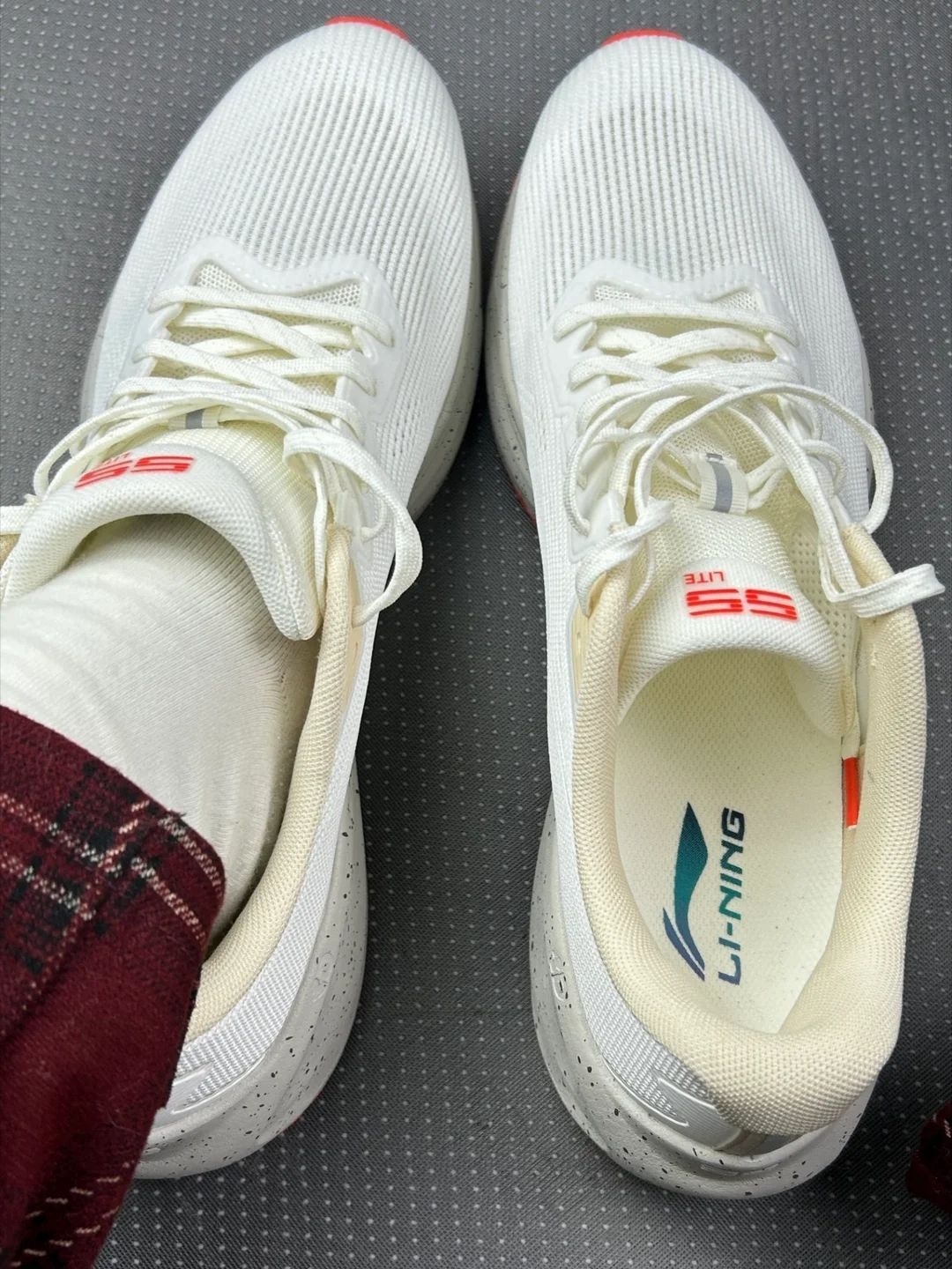 新到的李宁跑鞋随便唠唠~ 脚感是真软和 上班挤地铁站一天 脚底板没咋发酸 这点挺惊喜😌 鞋型偏窄 脚趾头有点挤 穿松了才好点 脚宽的兄弟建议试大半码 白色是好看 但太娇贵了 踩得印子擦半天还有 懒人慎选白色啊🤦♂️ 另外鞋舌有点滑 走快了会往一边跑 整体是舒服的 日常通勤遛弯够用 但追求完美体验的话 细节上确实差点意思~