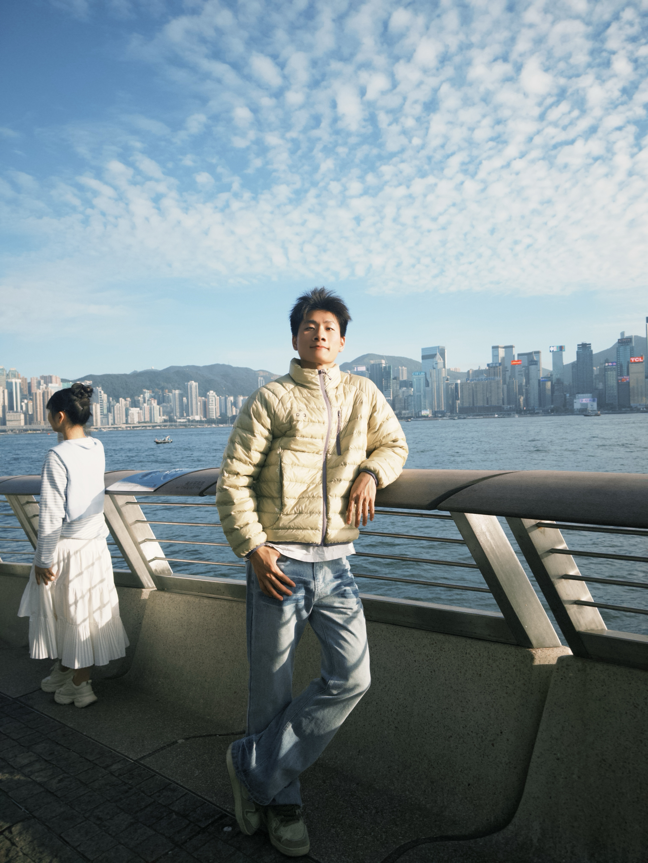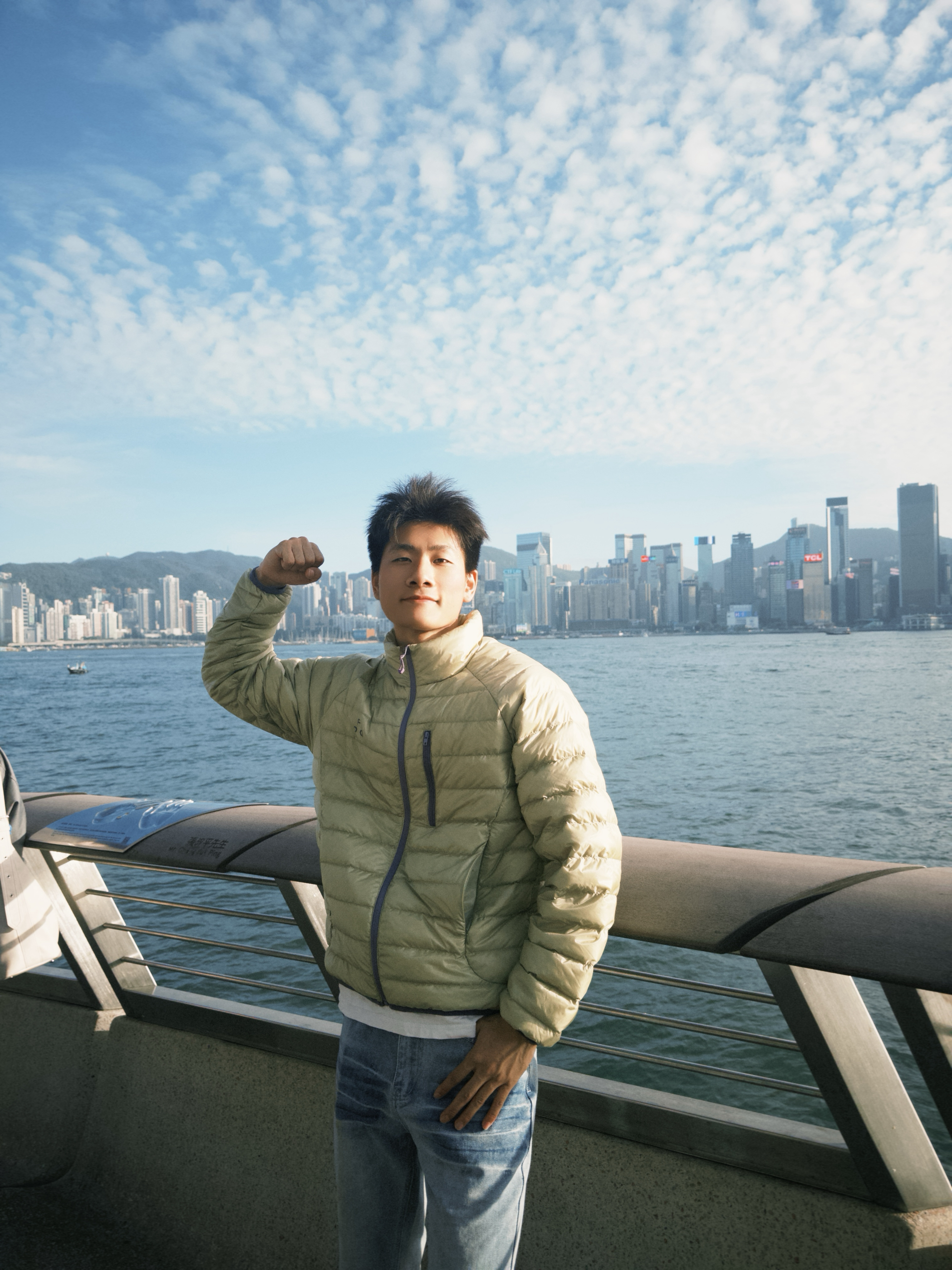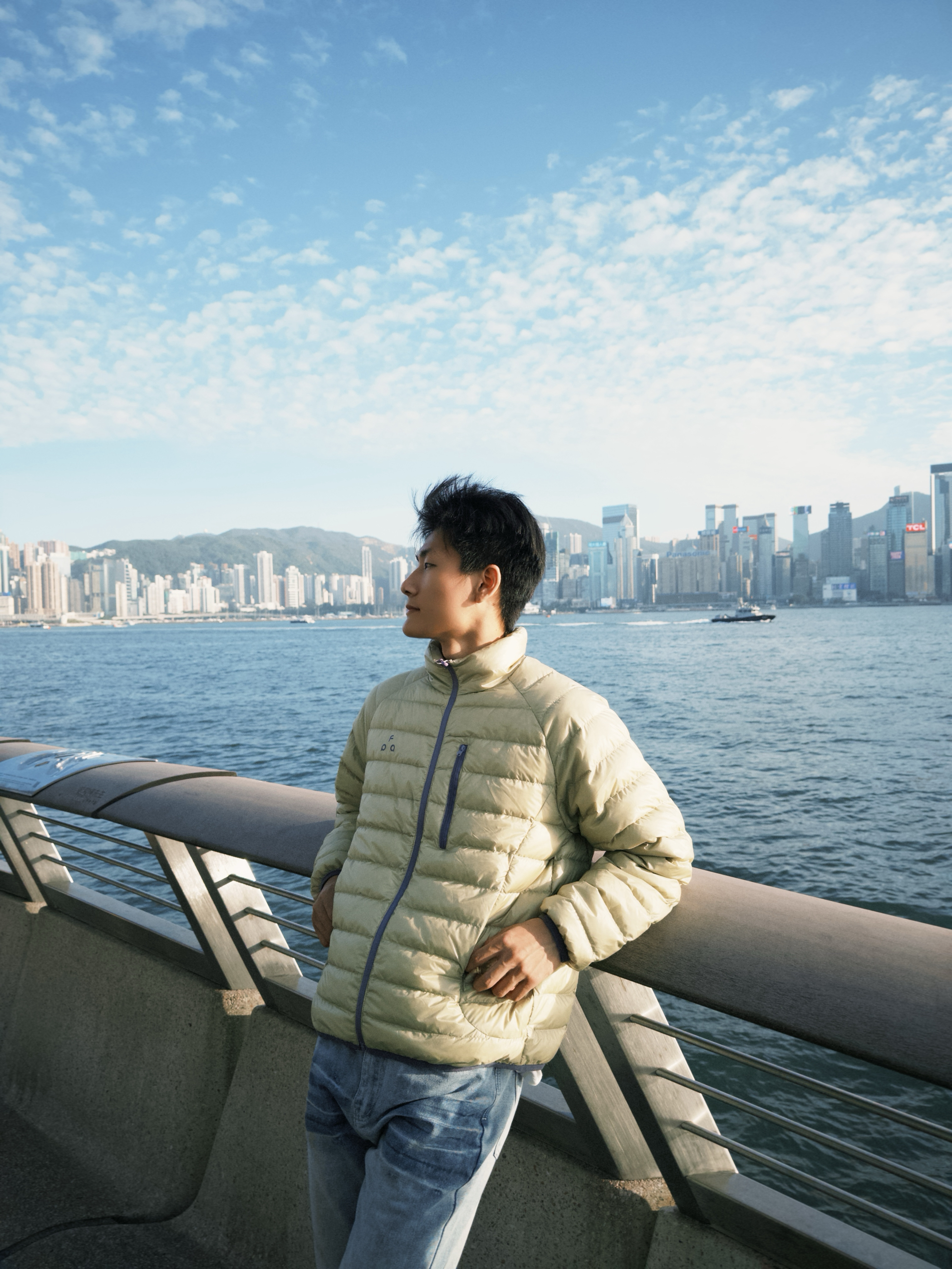 “香港维多利亚港的轻暖氛围感,这件FPA羽绒服直接拿捏👇 • 设计细节:浅卡其排骨压纹+胸前小logo,往海滨栏杆旁一站,和蓝天海景超搭,立领还能挡住海风 • 穿着体验:90%白鸭绒轻量化填充,裹着暖但不臃肿,逛海滨、吹海风都不闷汗,抬手倚靠都灵活 • 搭配思路:配浅蓝阔腿牛仔裤,平衡羽绒服的利落感,简单搭就有都市机能调 你们觉得这件羽绒服搭配深色裤子会不会更有街头氛围?来评论区聊聊~”